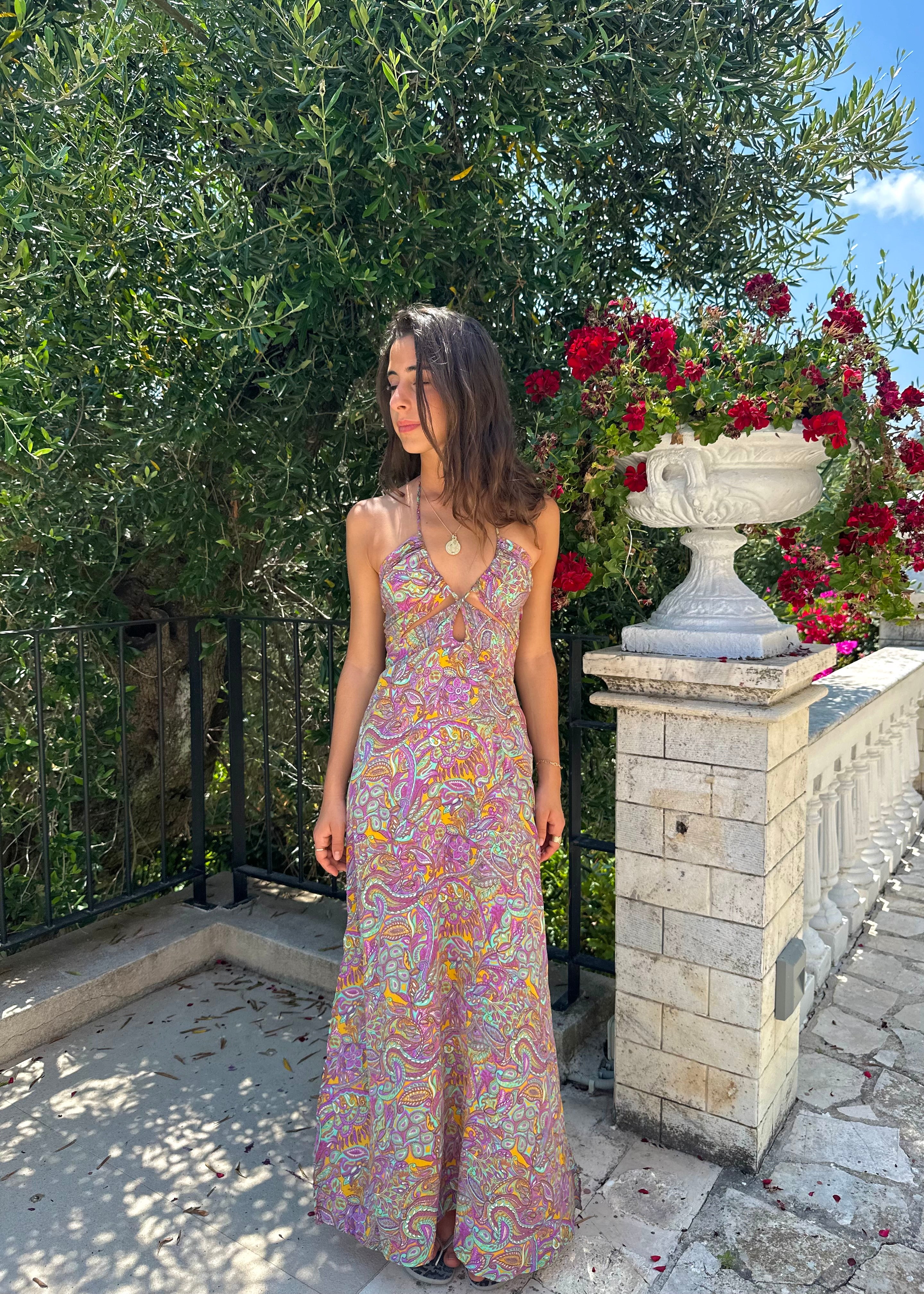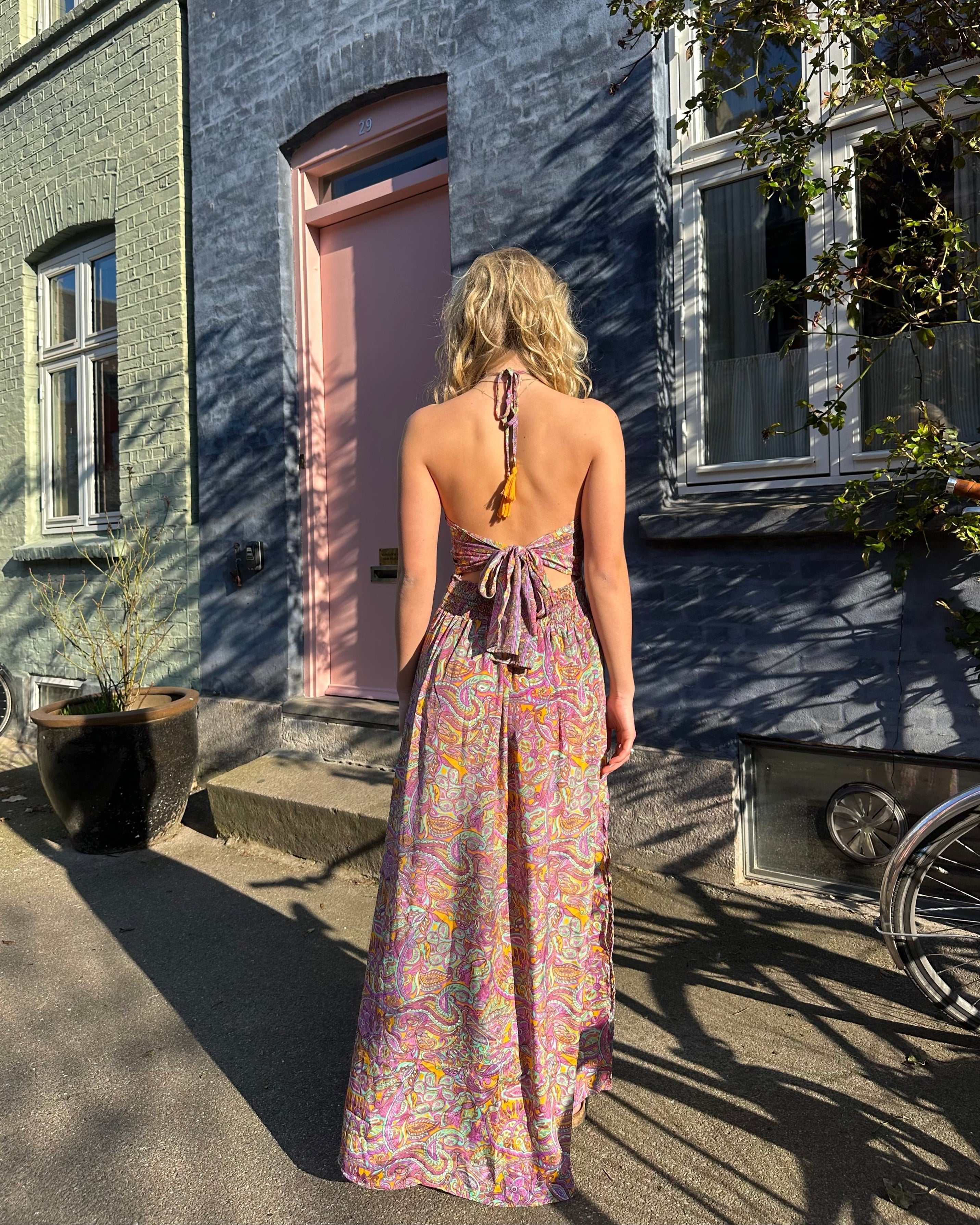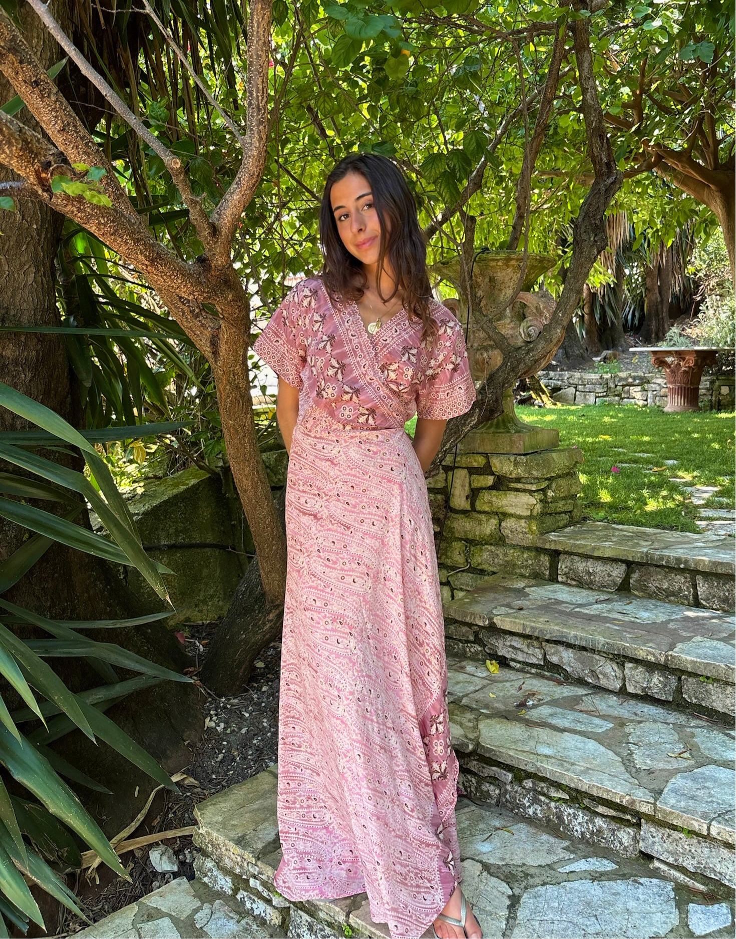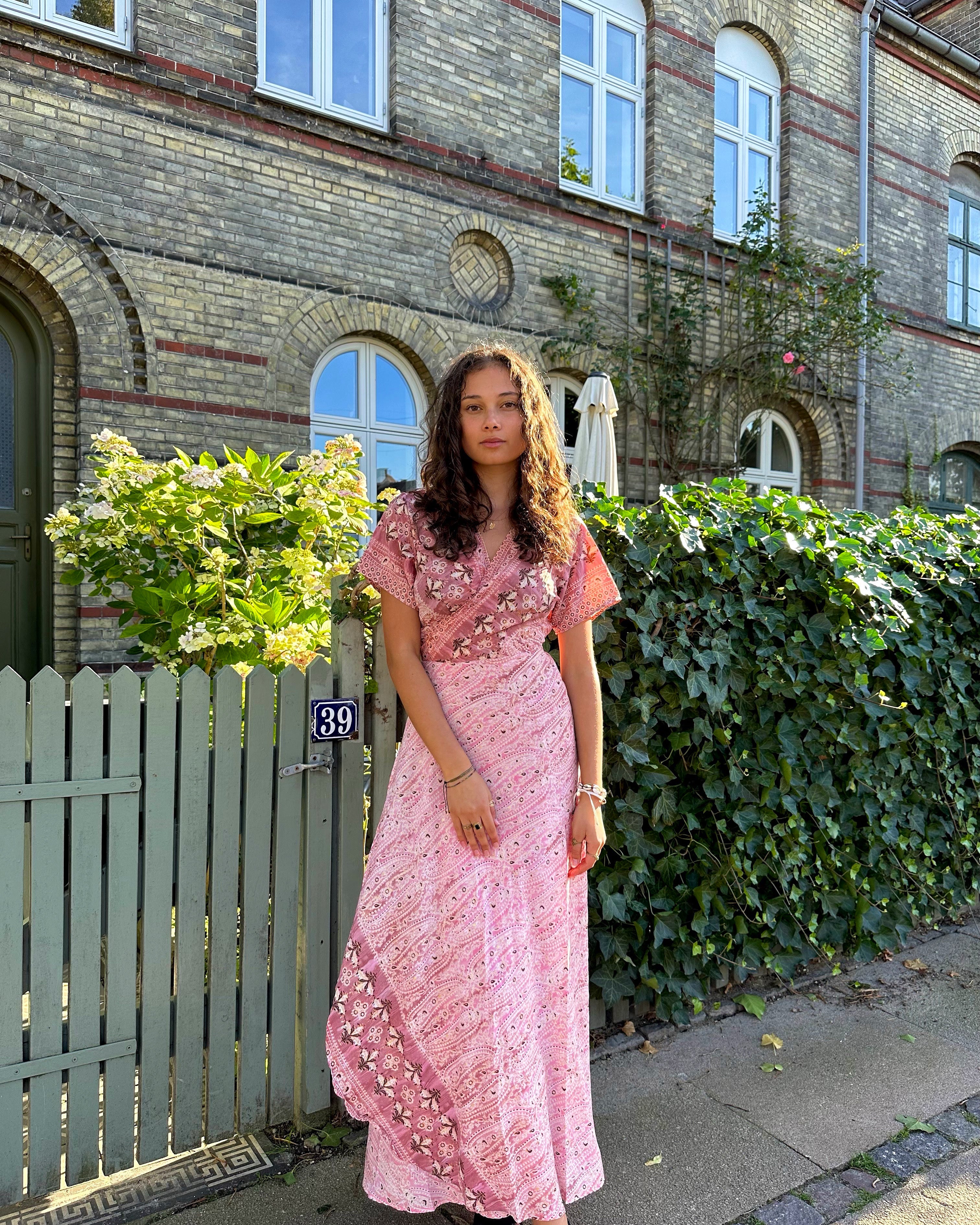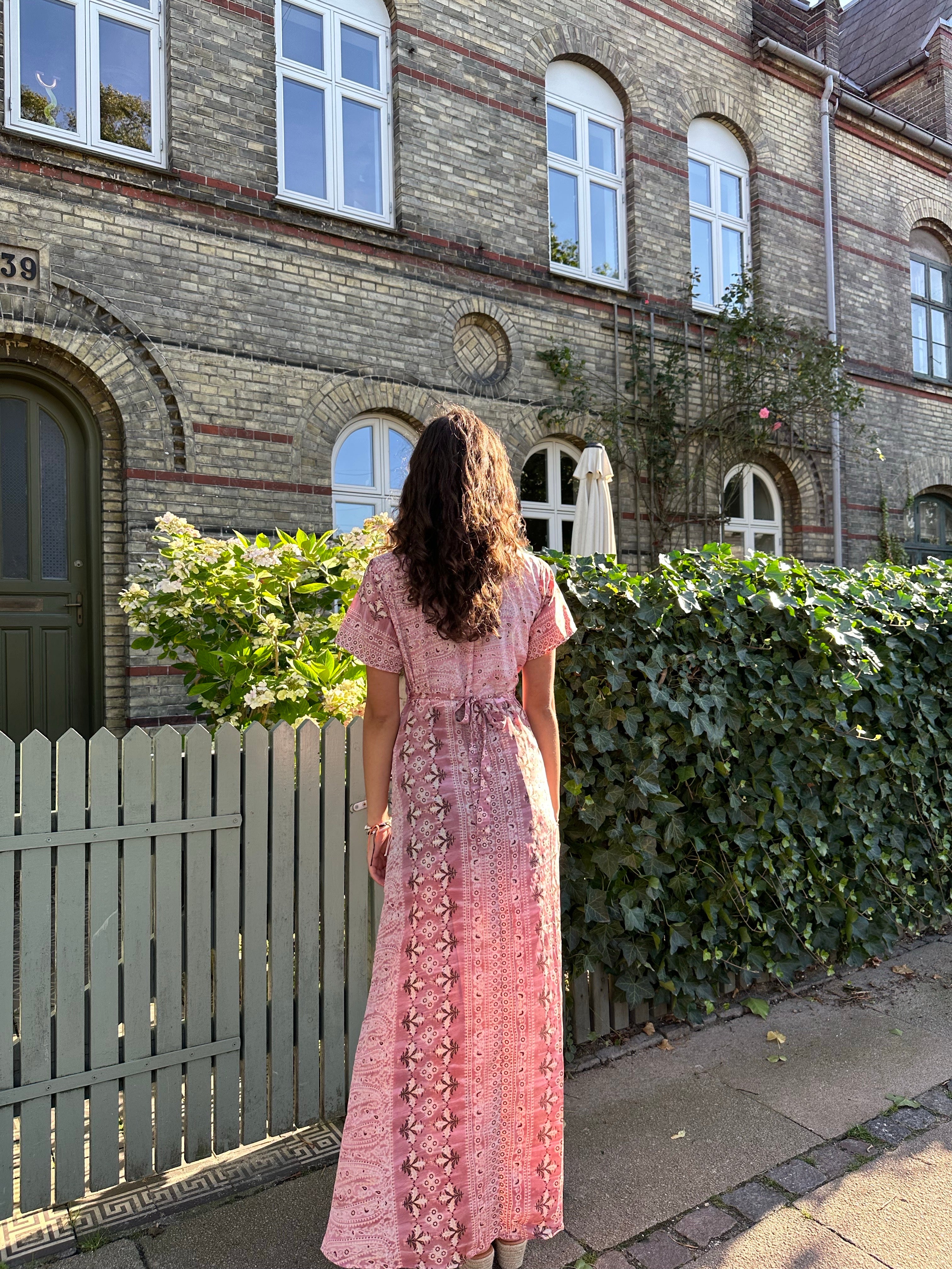 Long Wrap Dress Lila (Gold Foil) - Light Pink