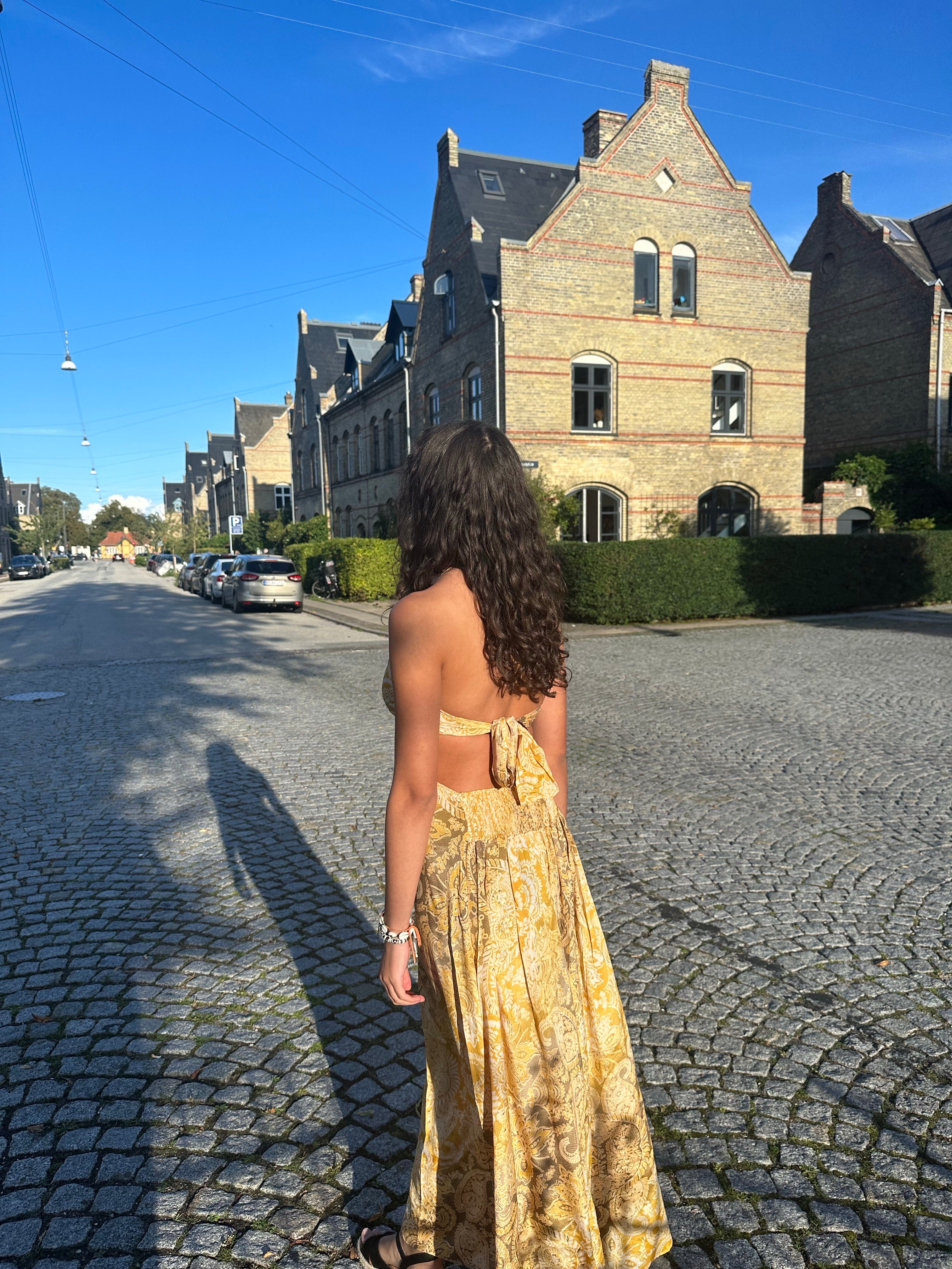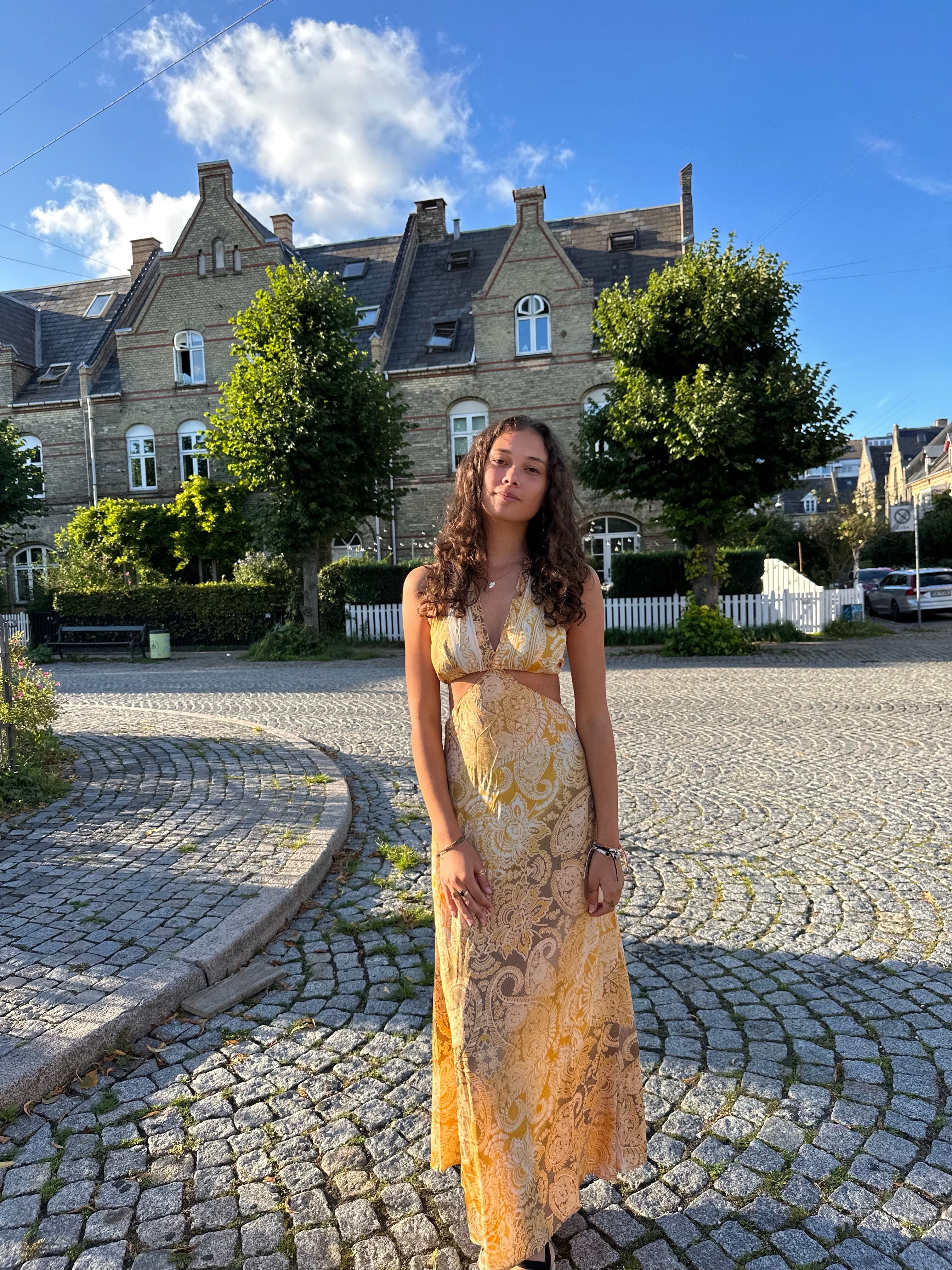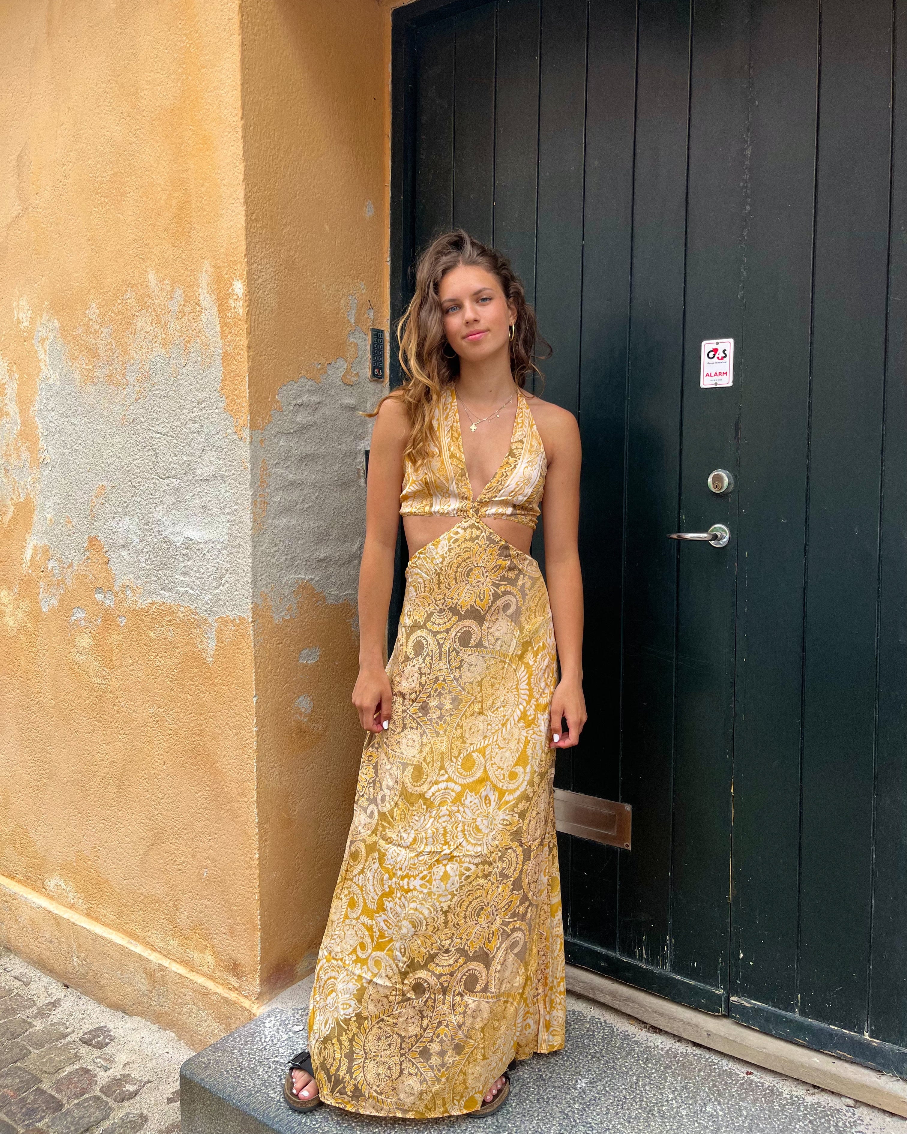 Mid-Cut Dress Yara (with gold foil) - Goldy + Yellow
