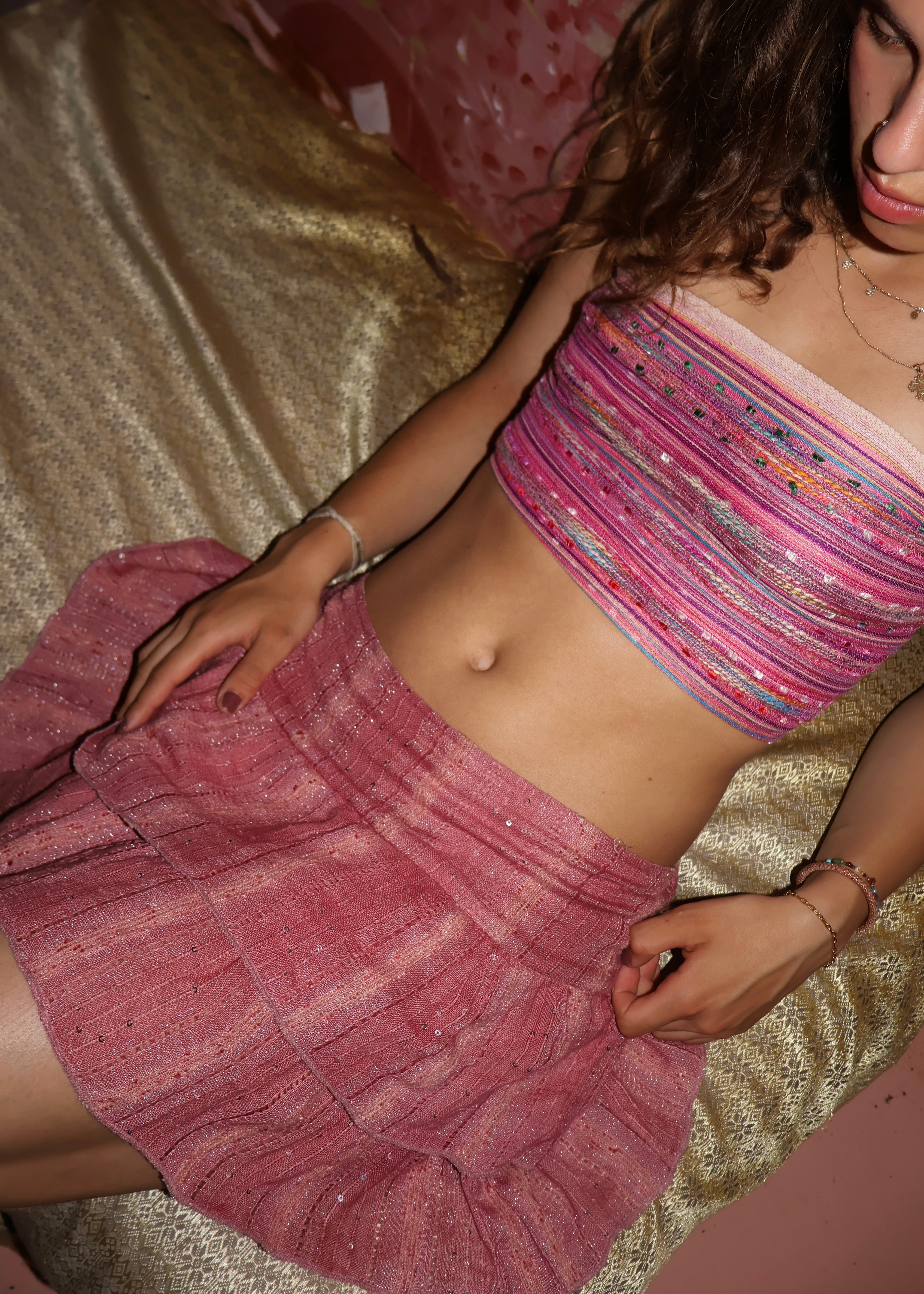 Vintage Sari Beaded Patchwork Bohemian Skirt - Blue (XS-S)