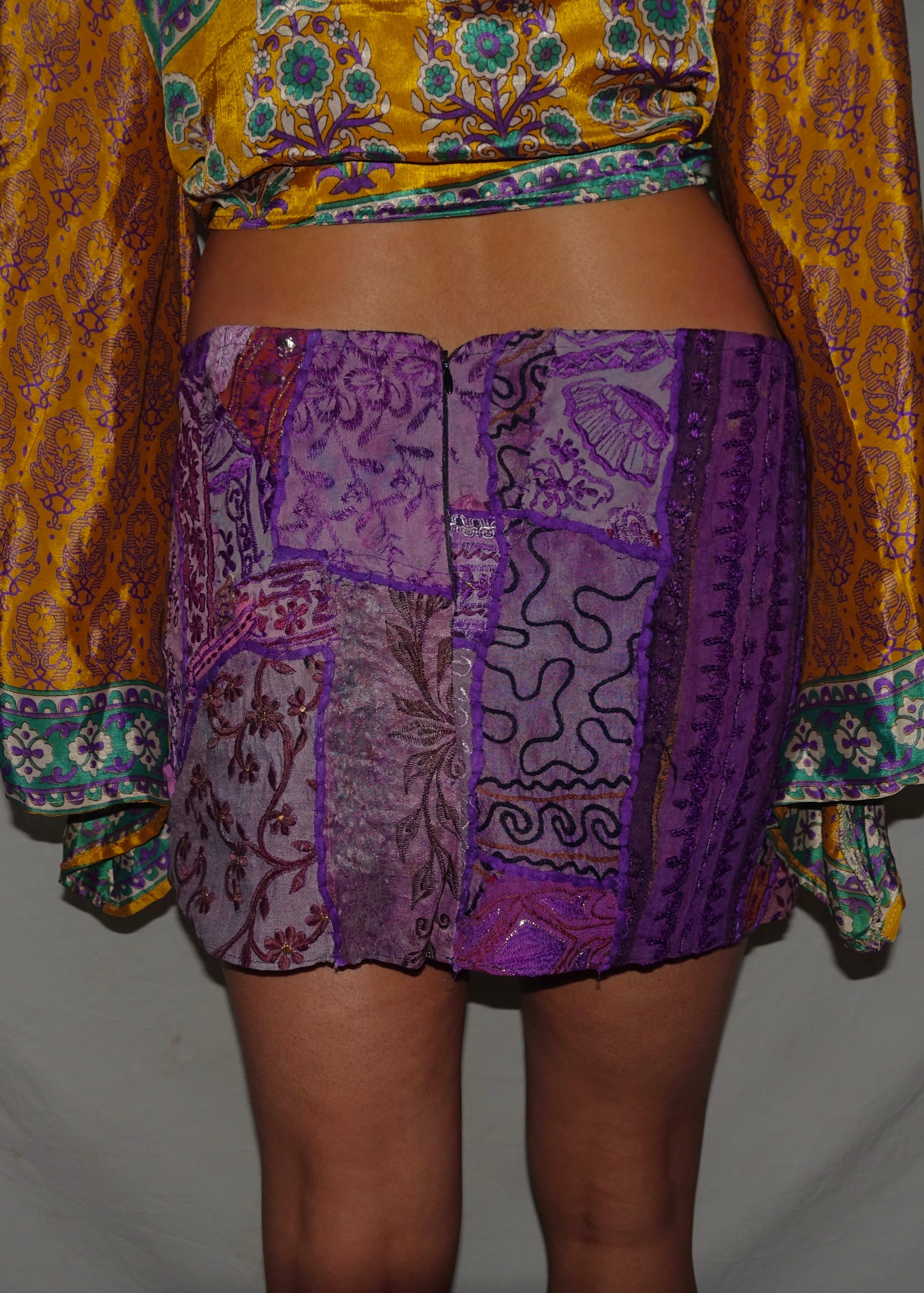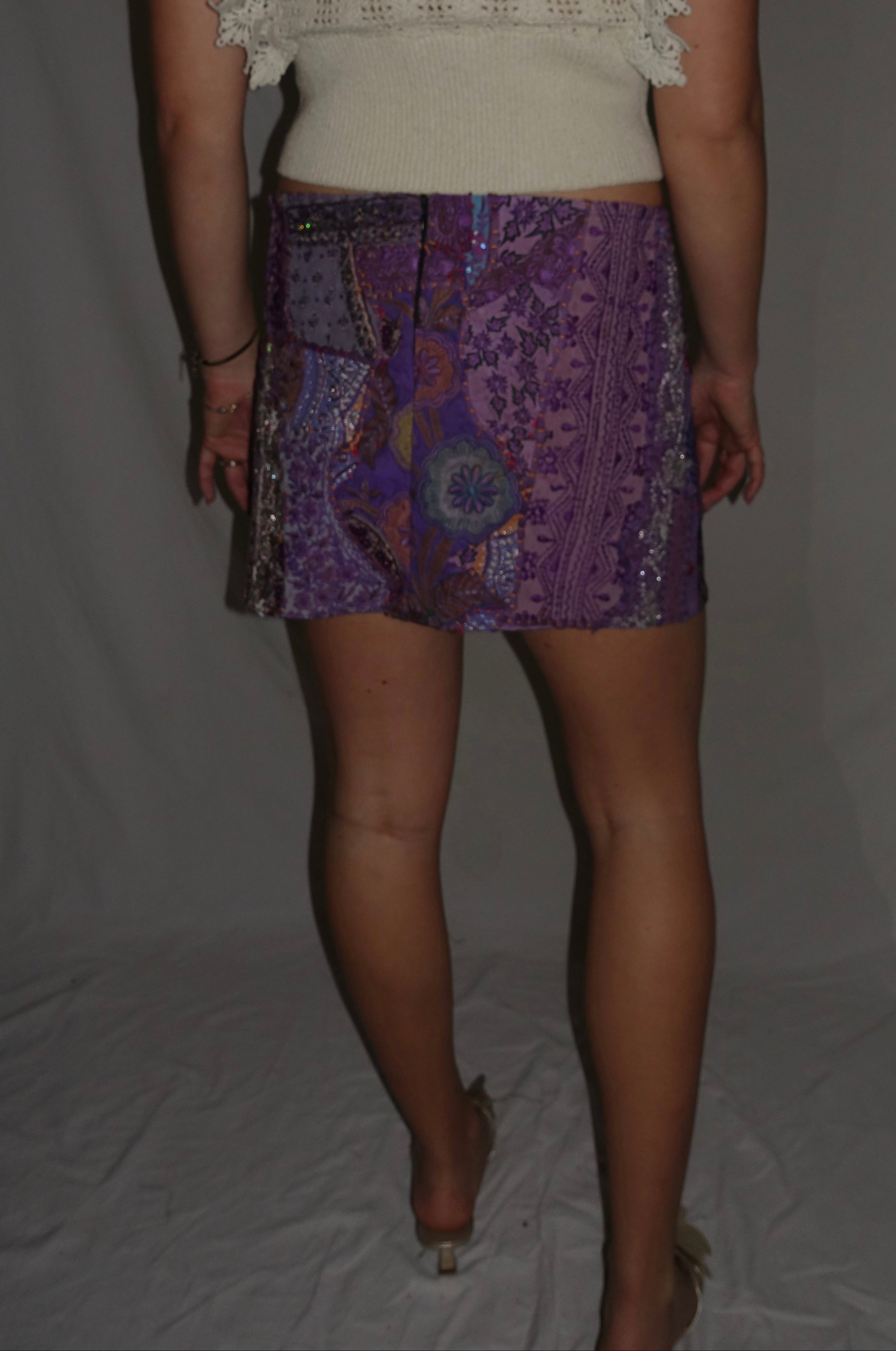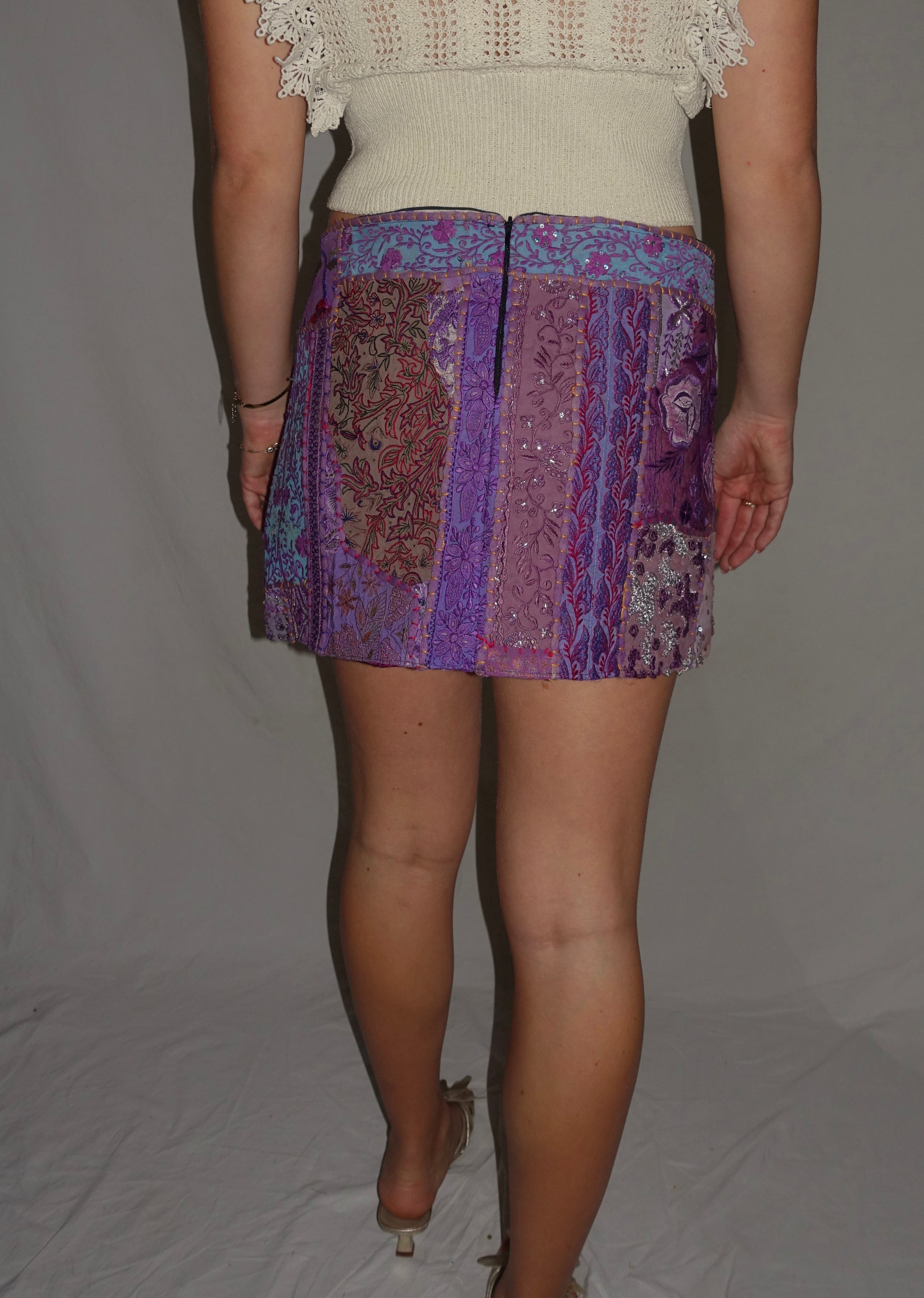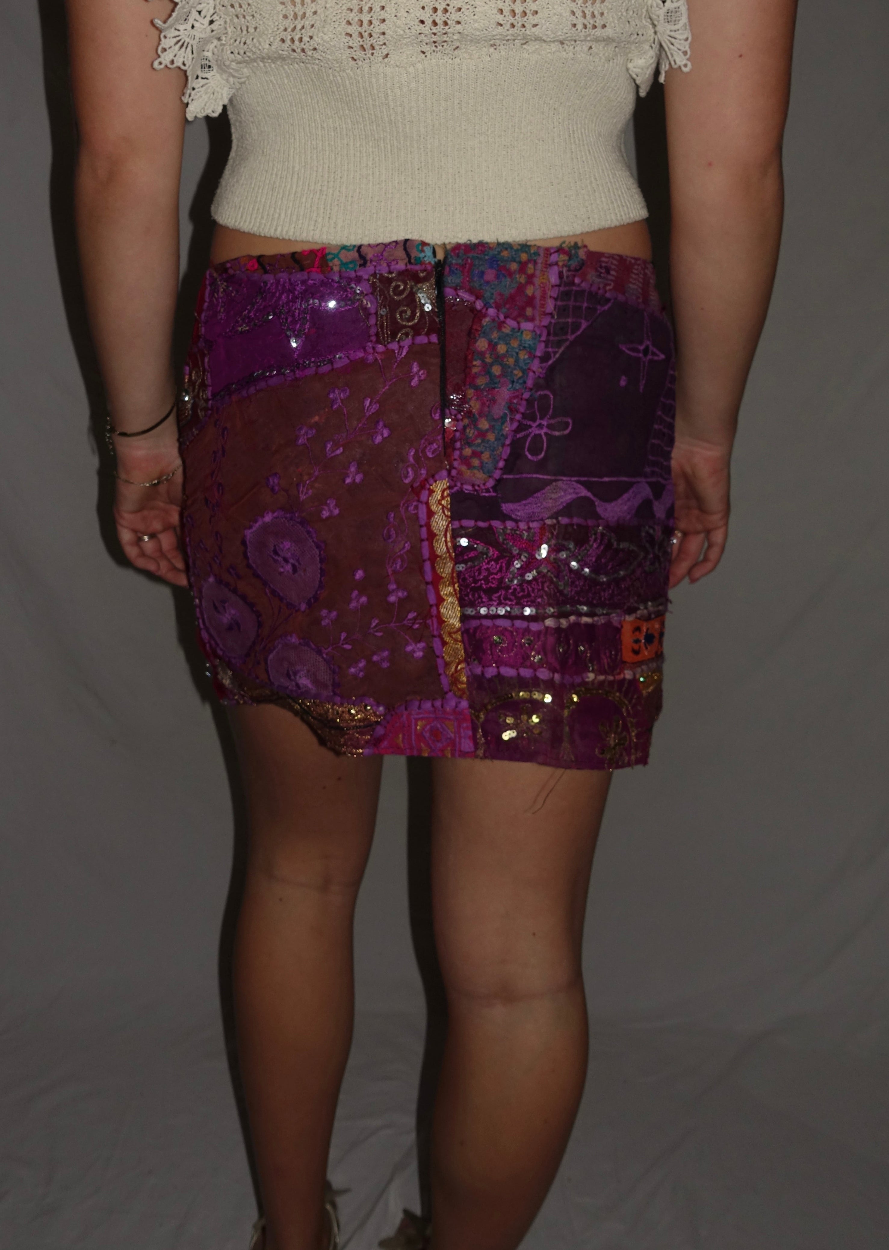 Vintage Sari Beaded Patchwork Bohemian Skirt - Purple (XS-S)