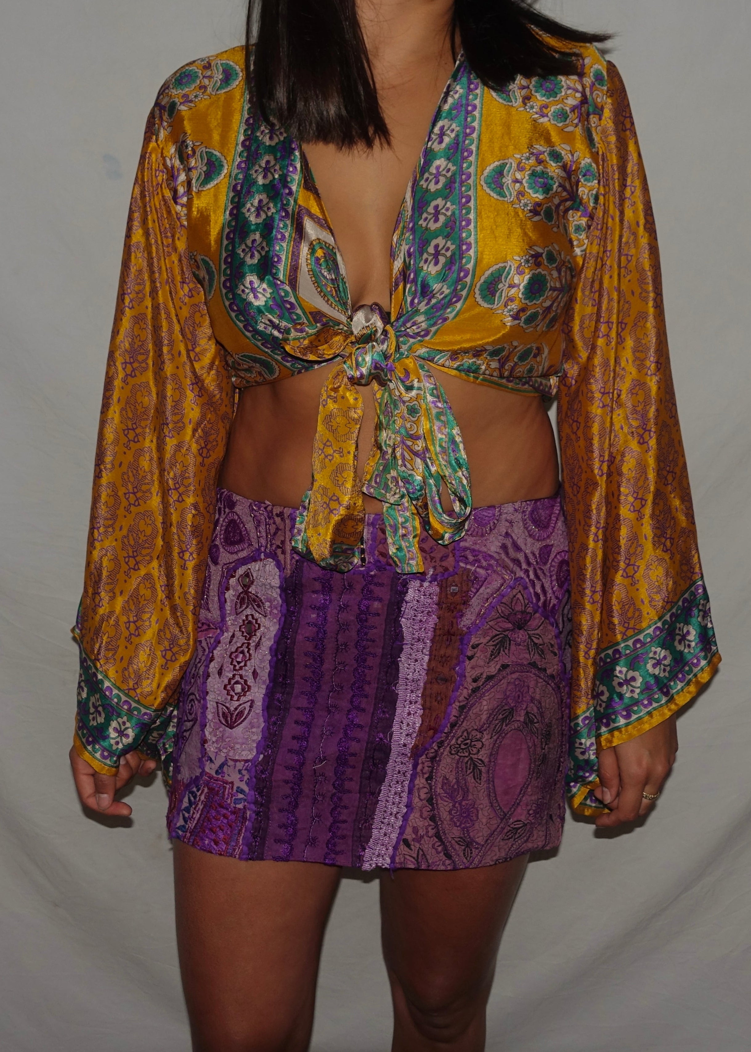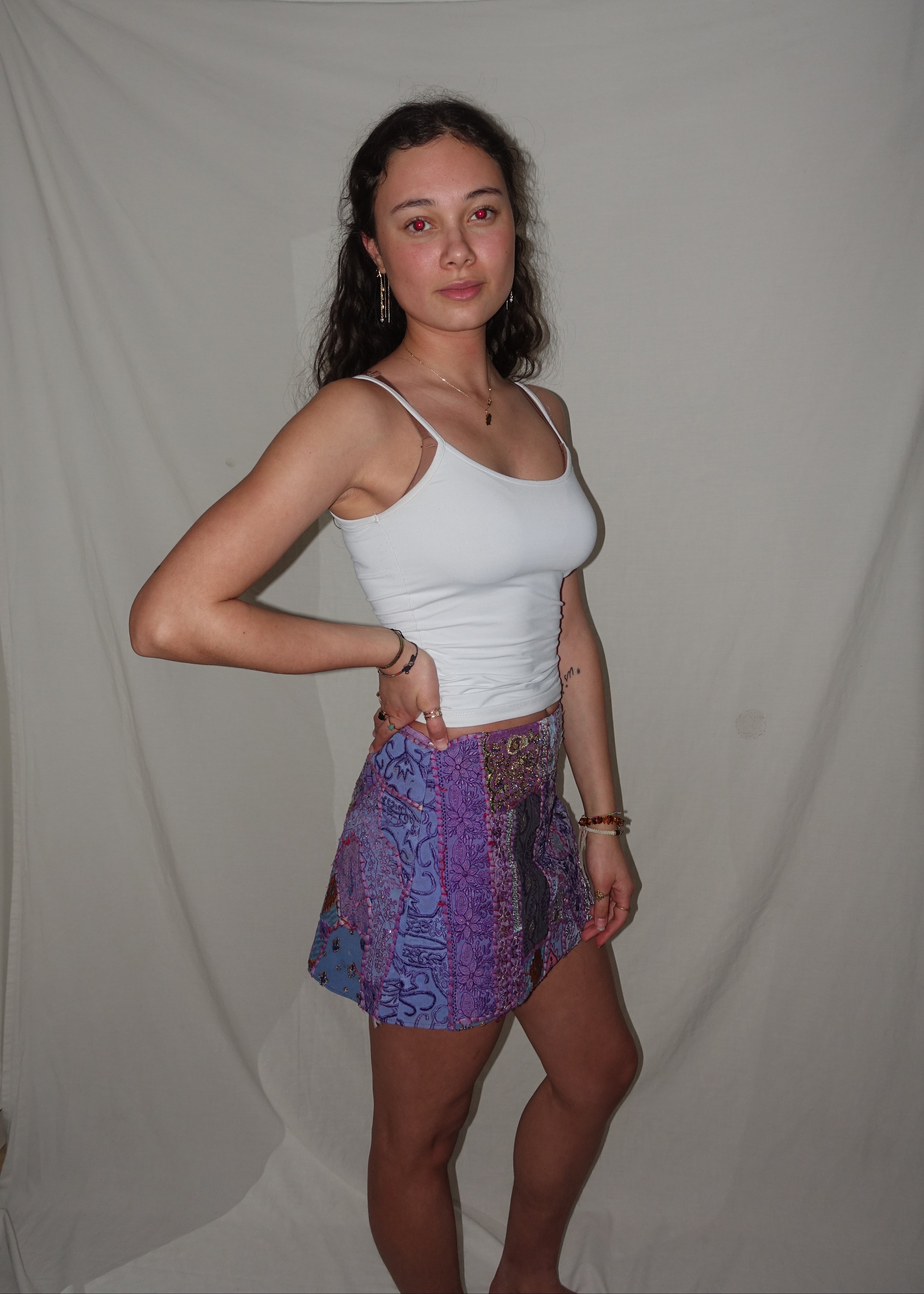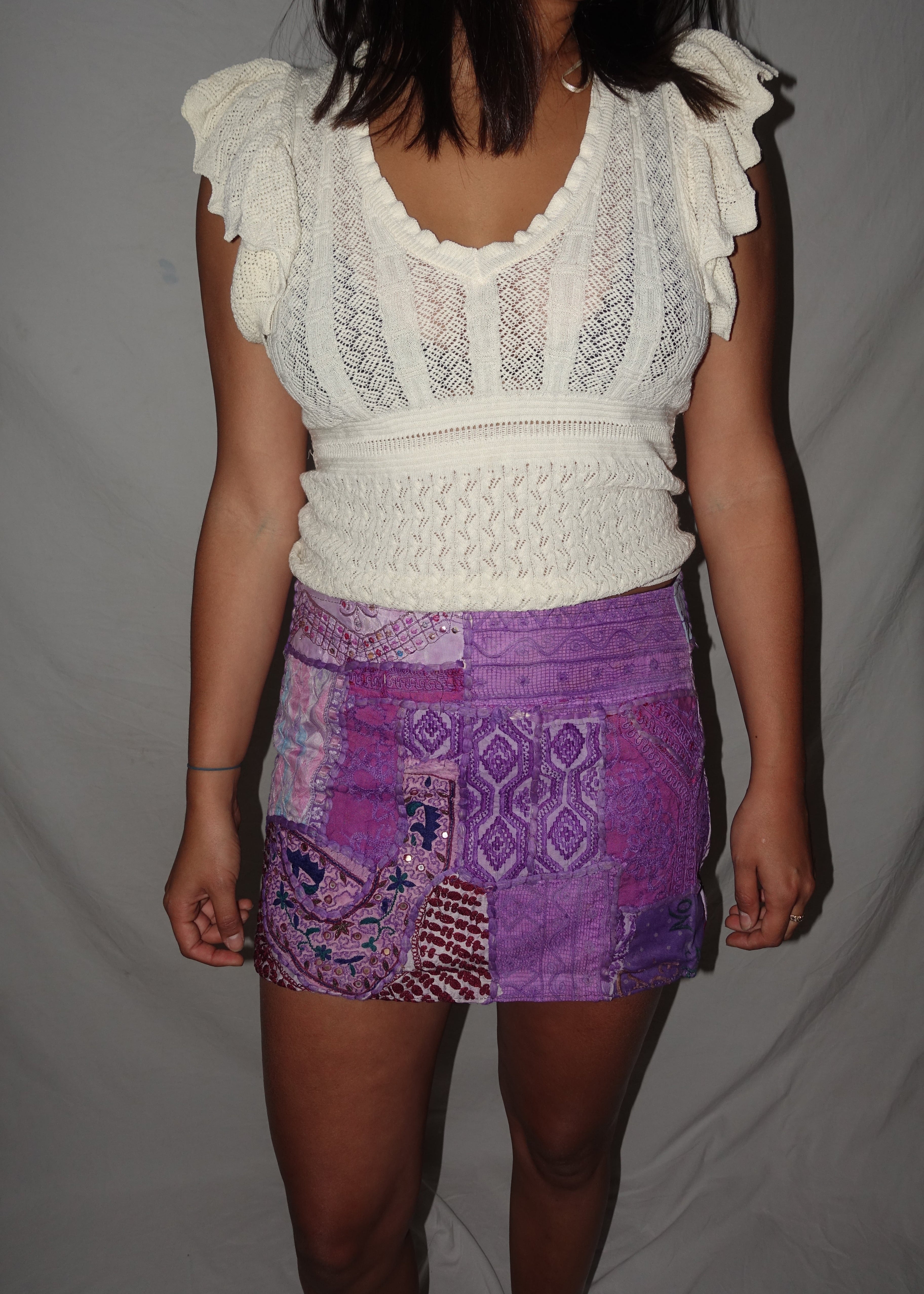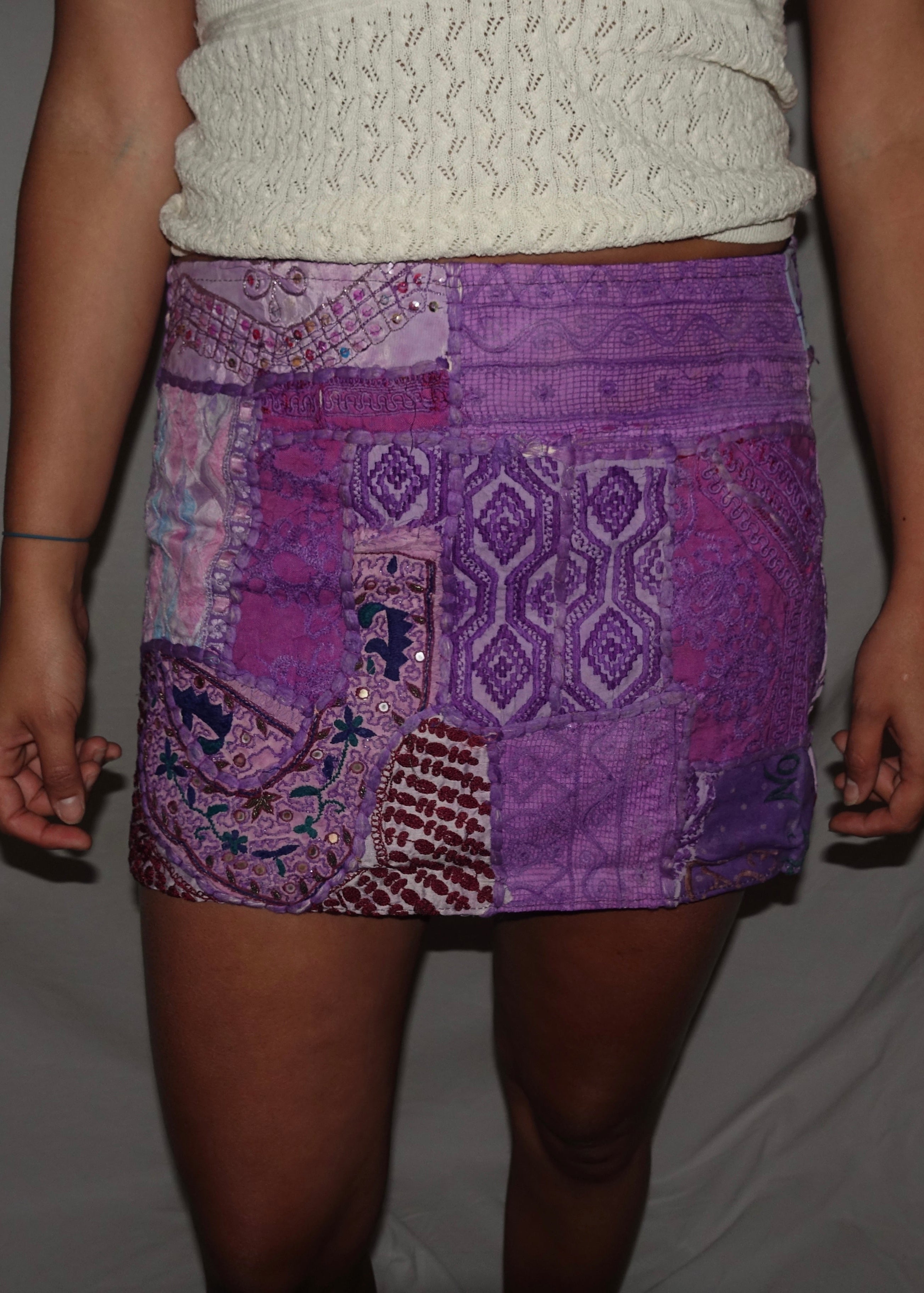 Vintage Sari Beaded Patchwork Bohemian Skirt - Purple (XS-S)