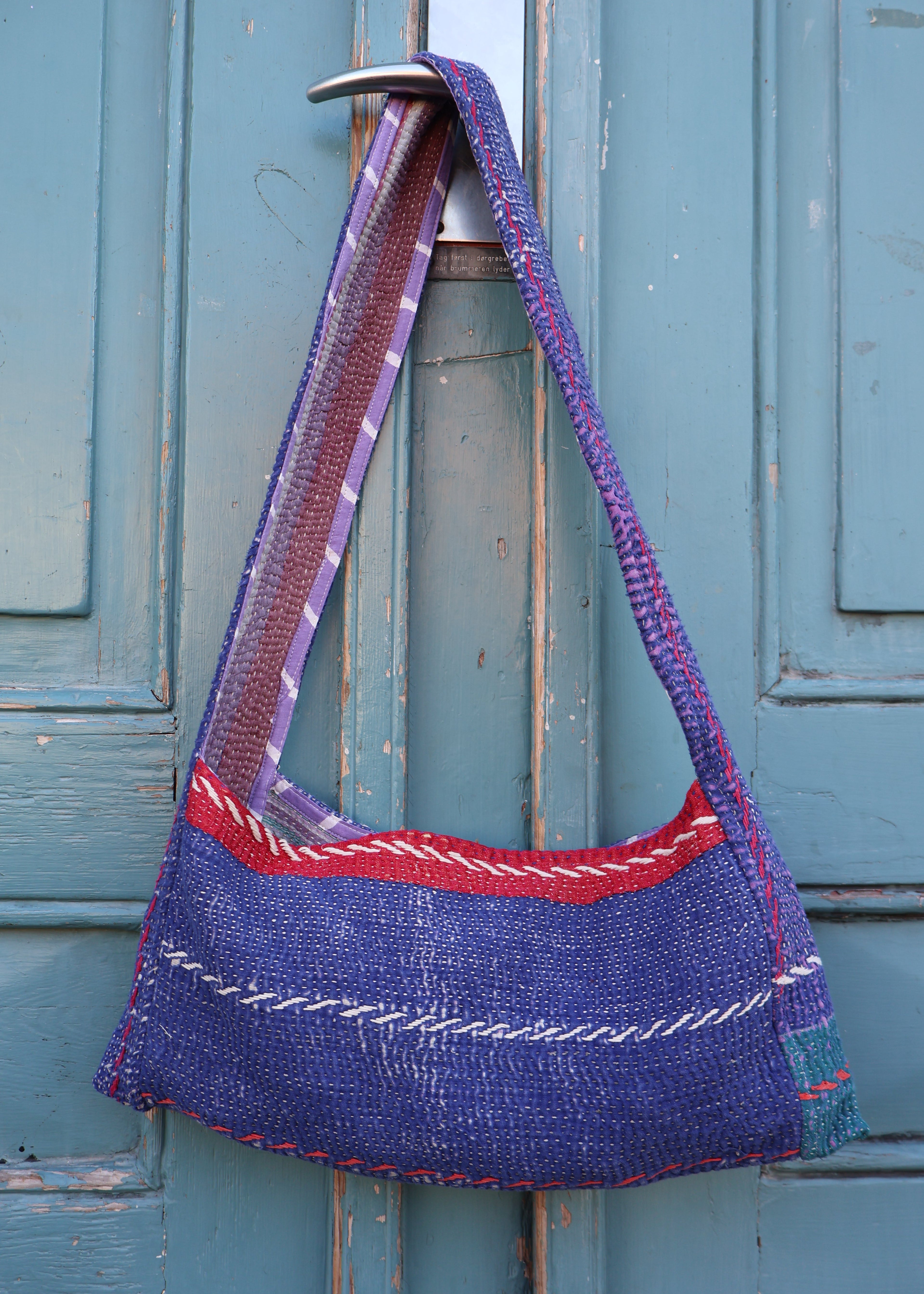 Designed for busy days and made with meaning, this crossbody bag is upcycled from vintage Indian Kantha blankets—so every single one is truly one of a kind. The soft, hand-stitched textile gives it that effortless bohemian look, while the roomy shape makes it seriously practical.