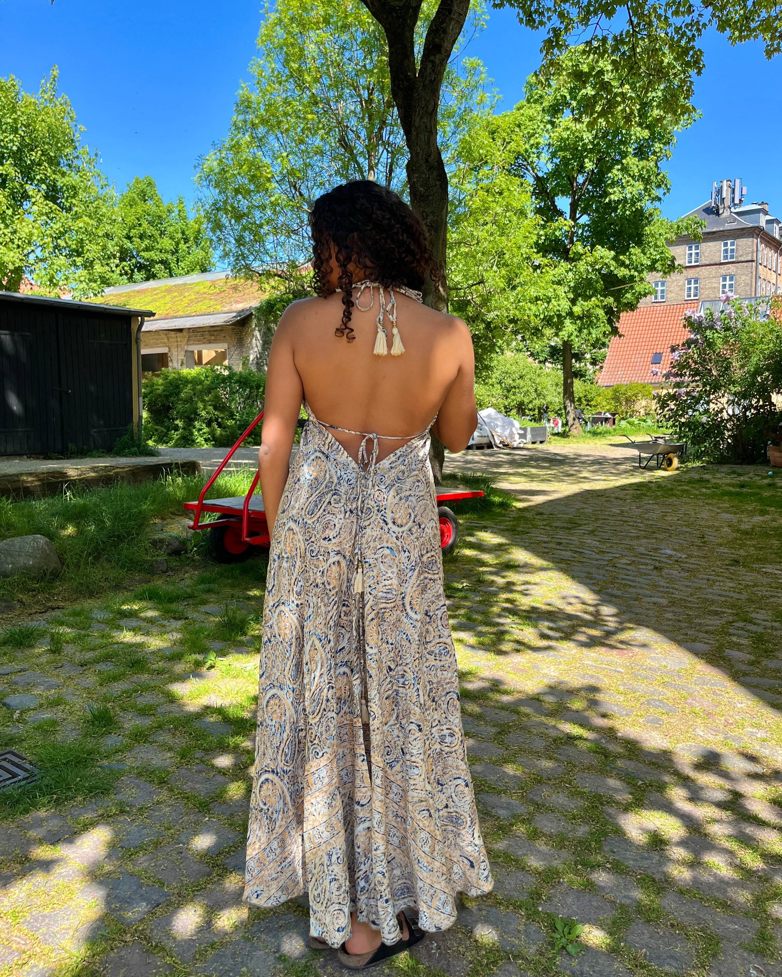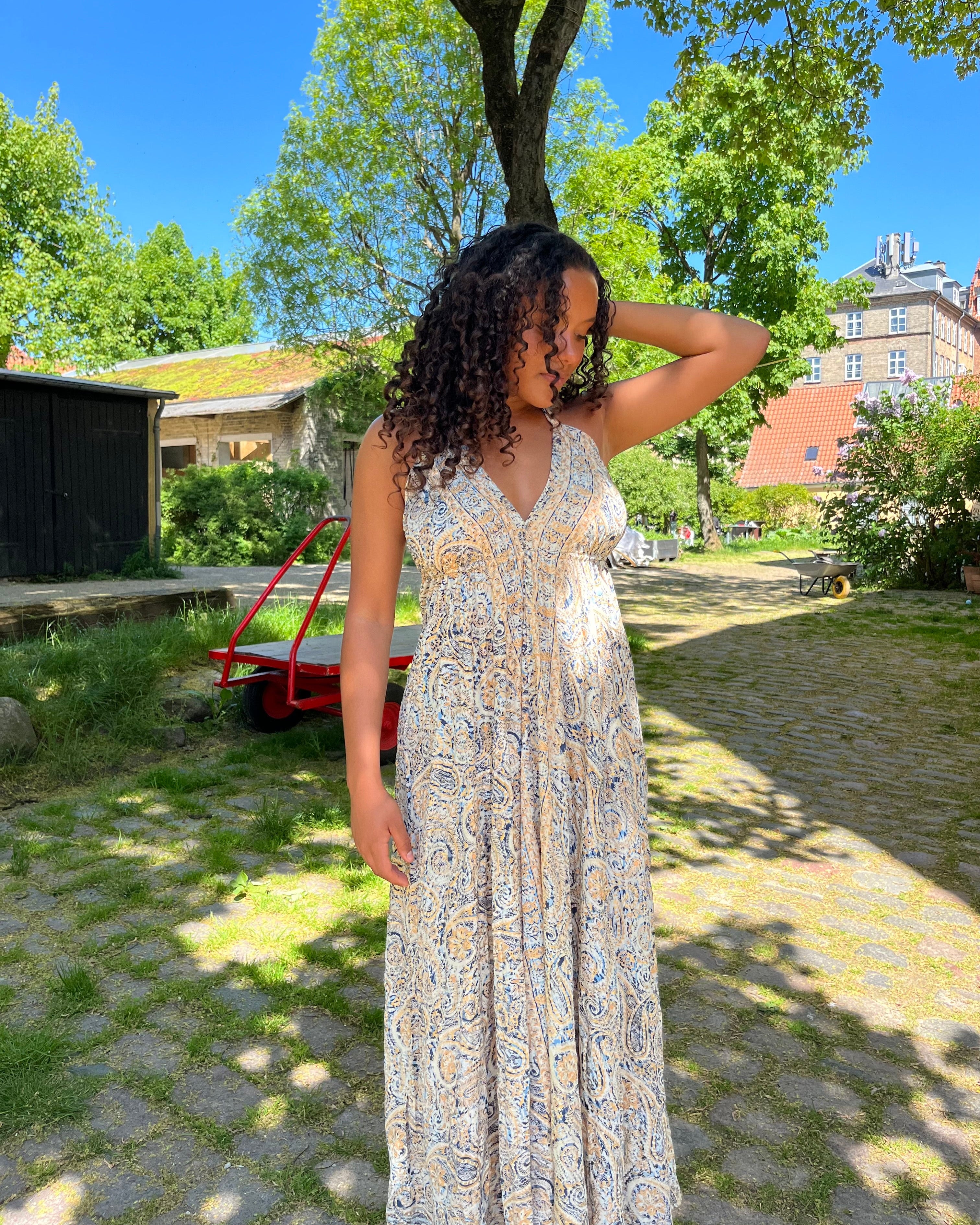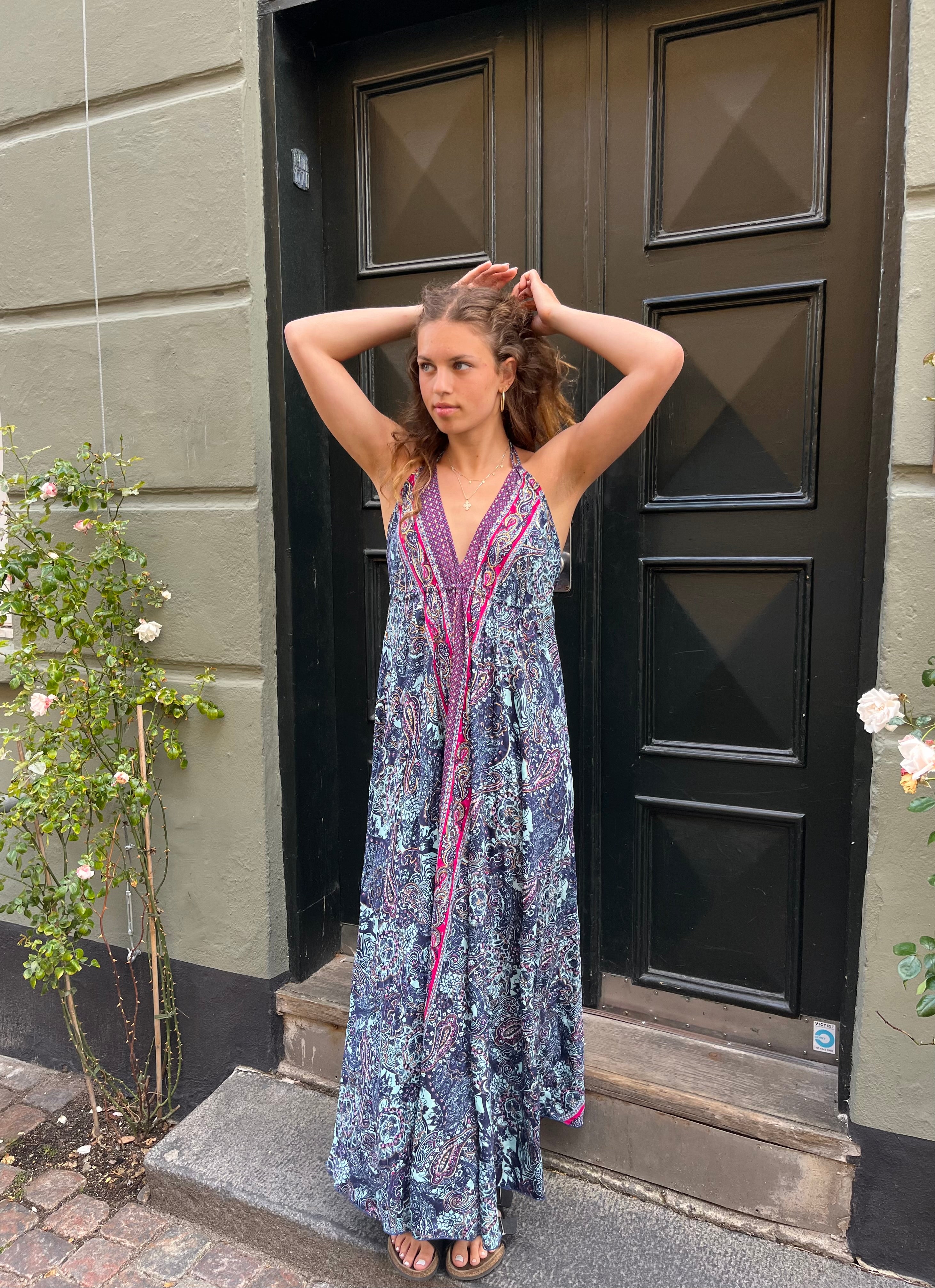 Long Gold Ama Ibiza Dress - Blue + Pink