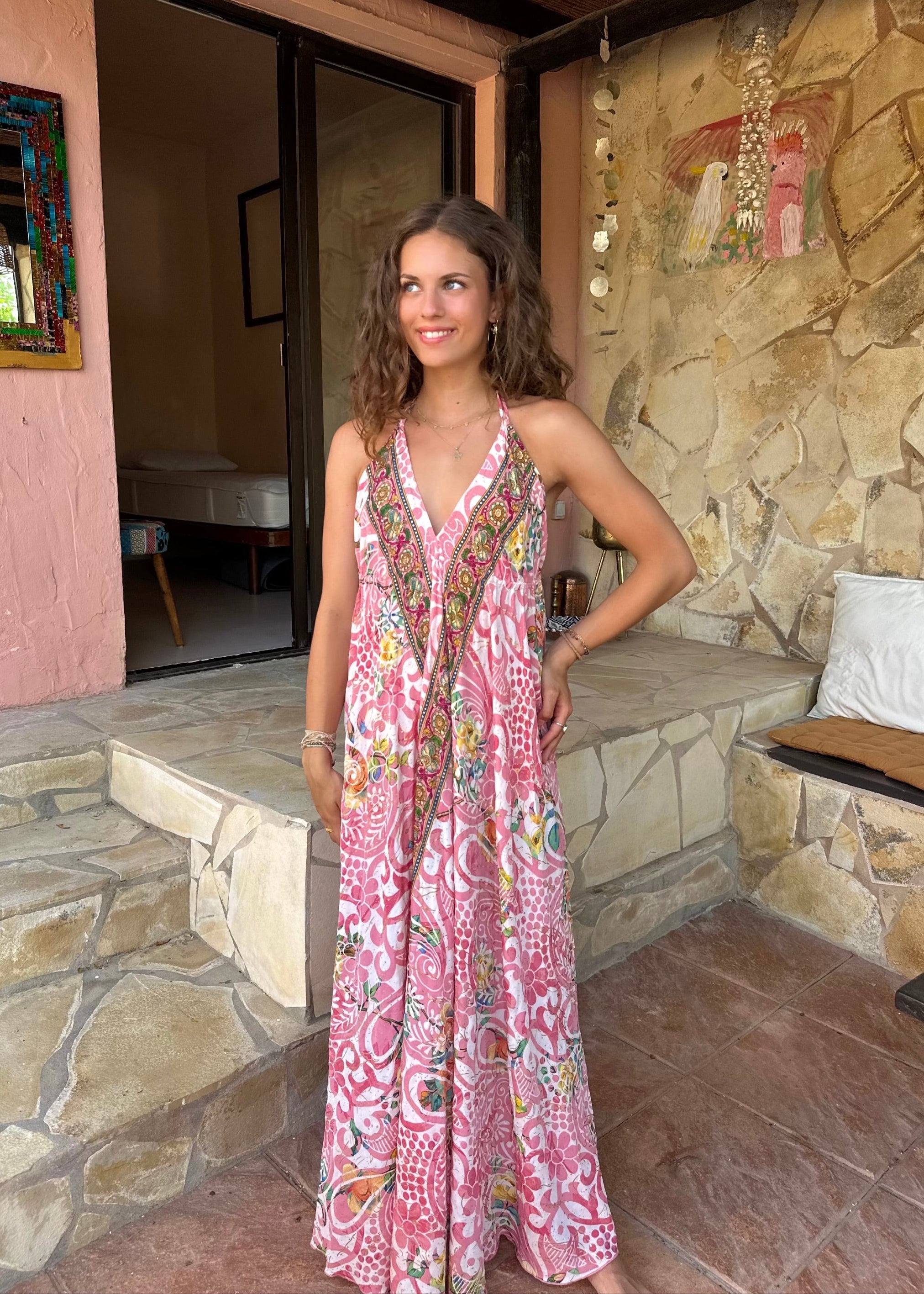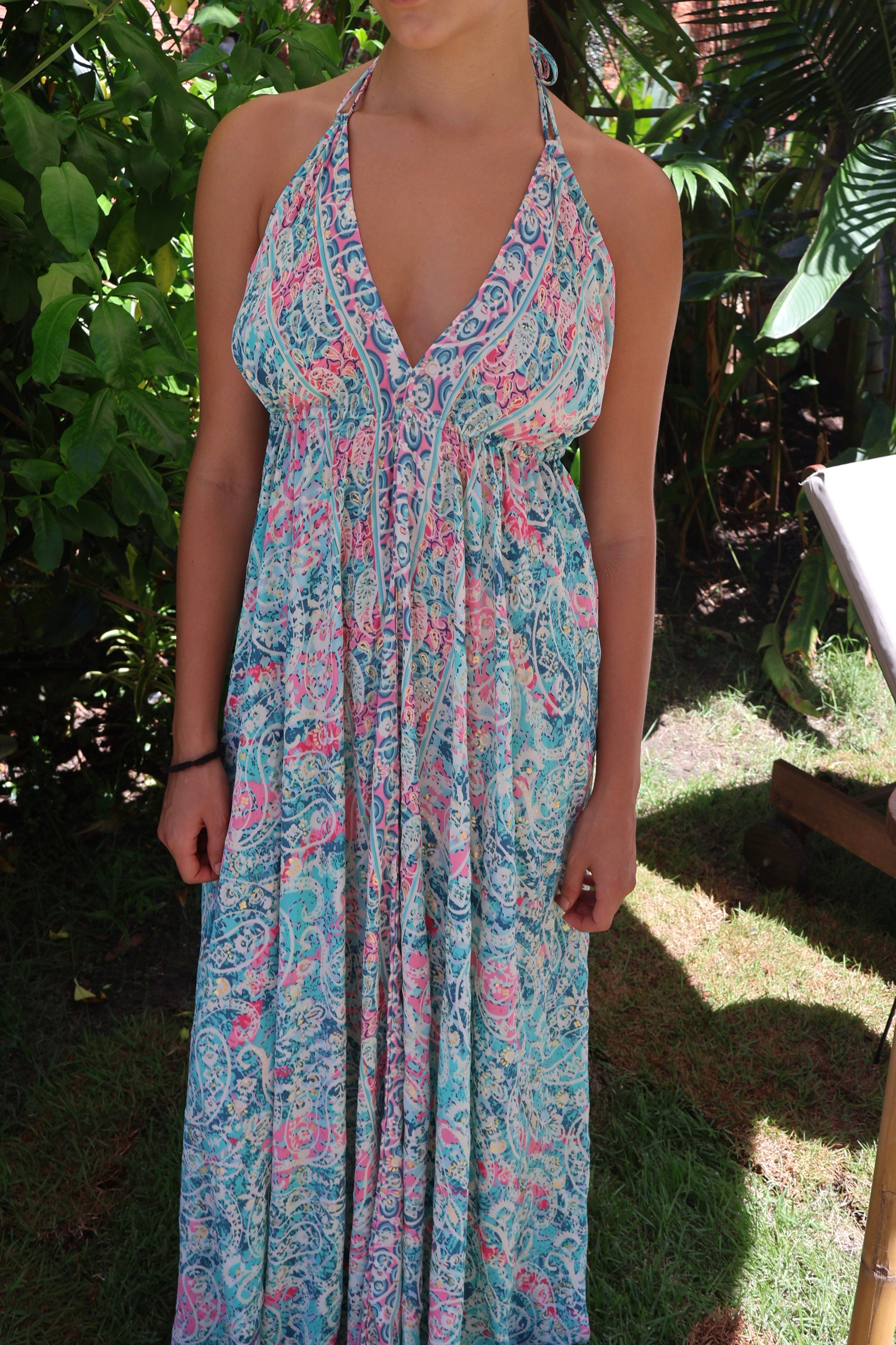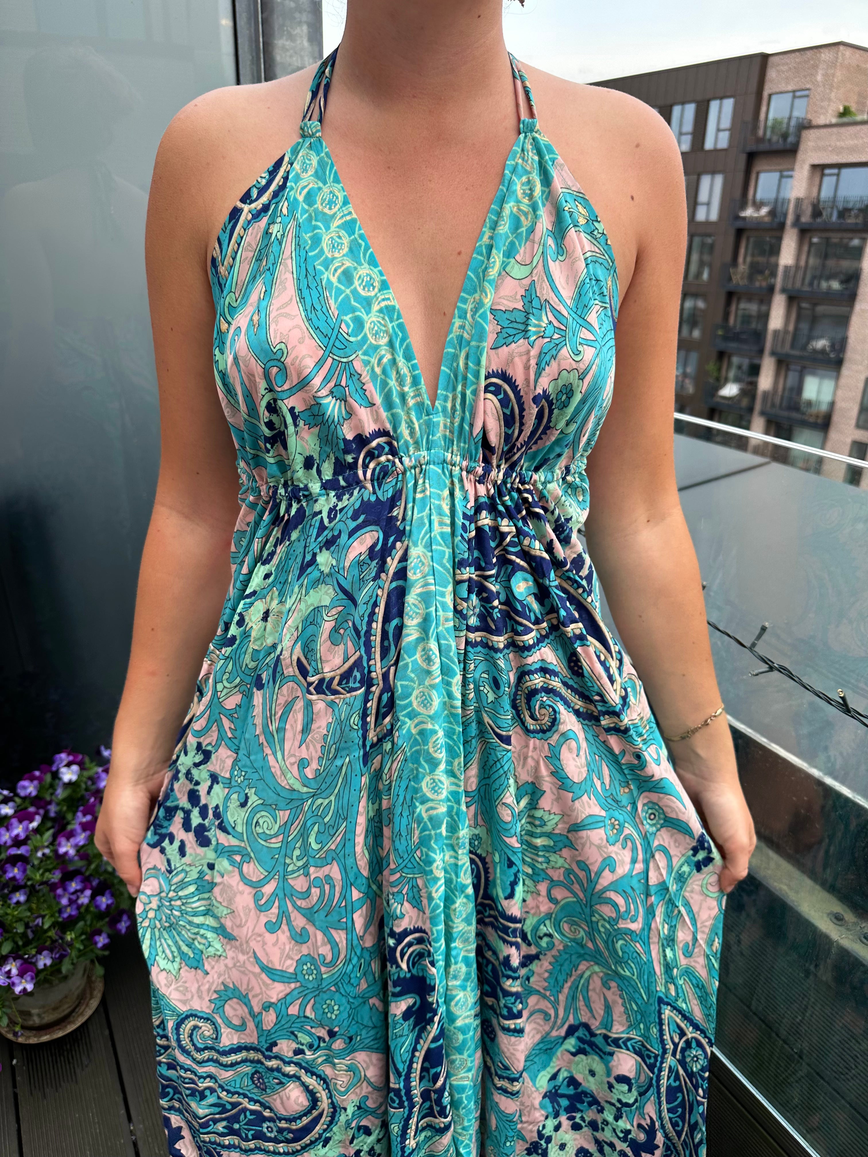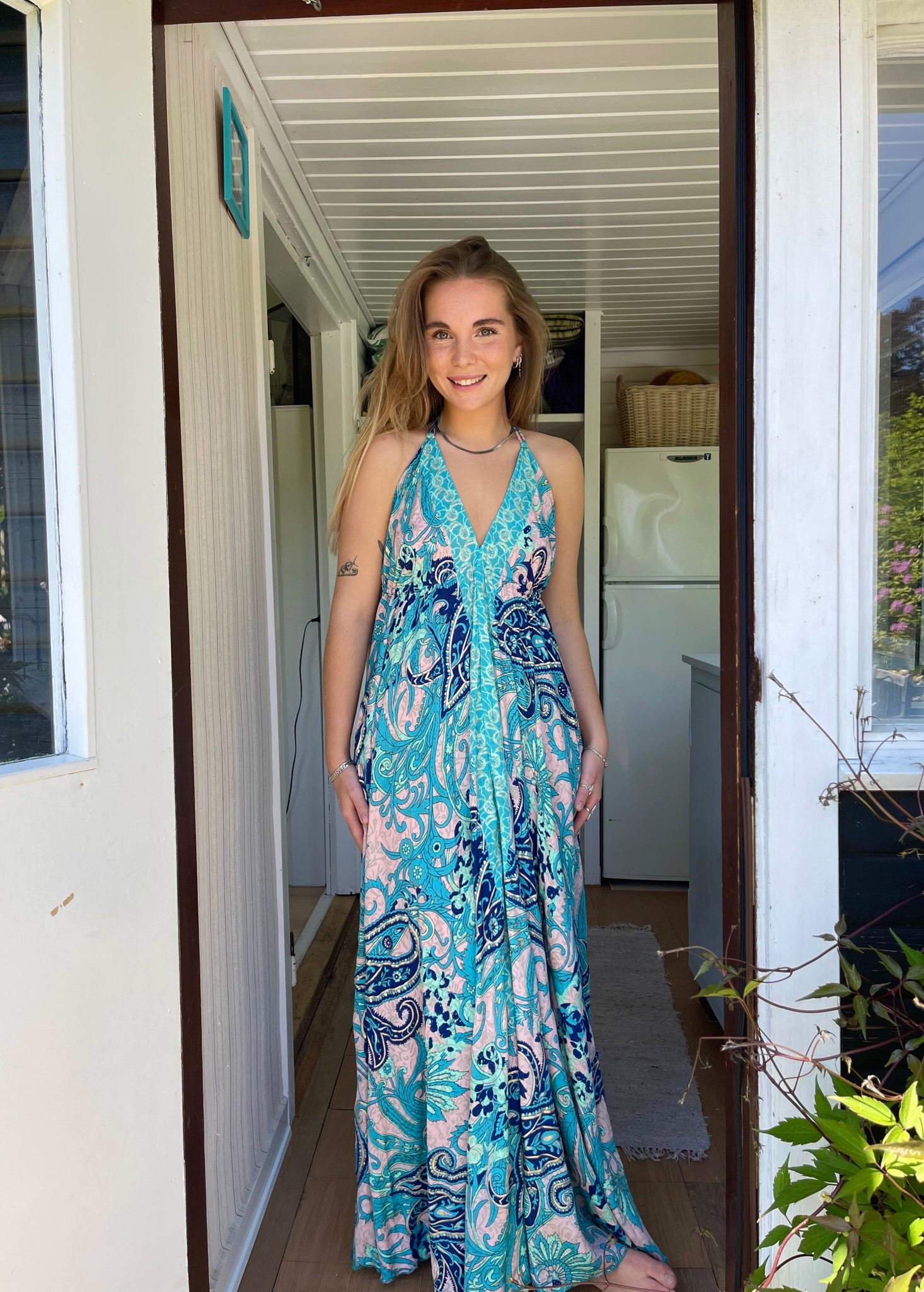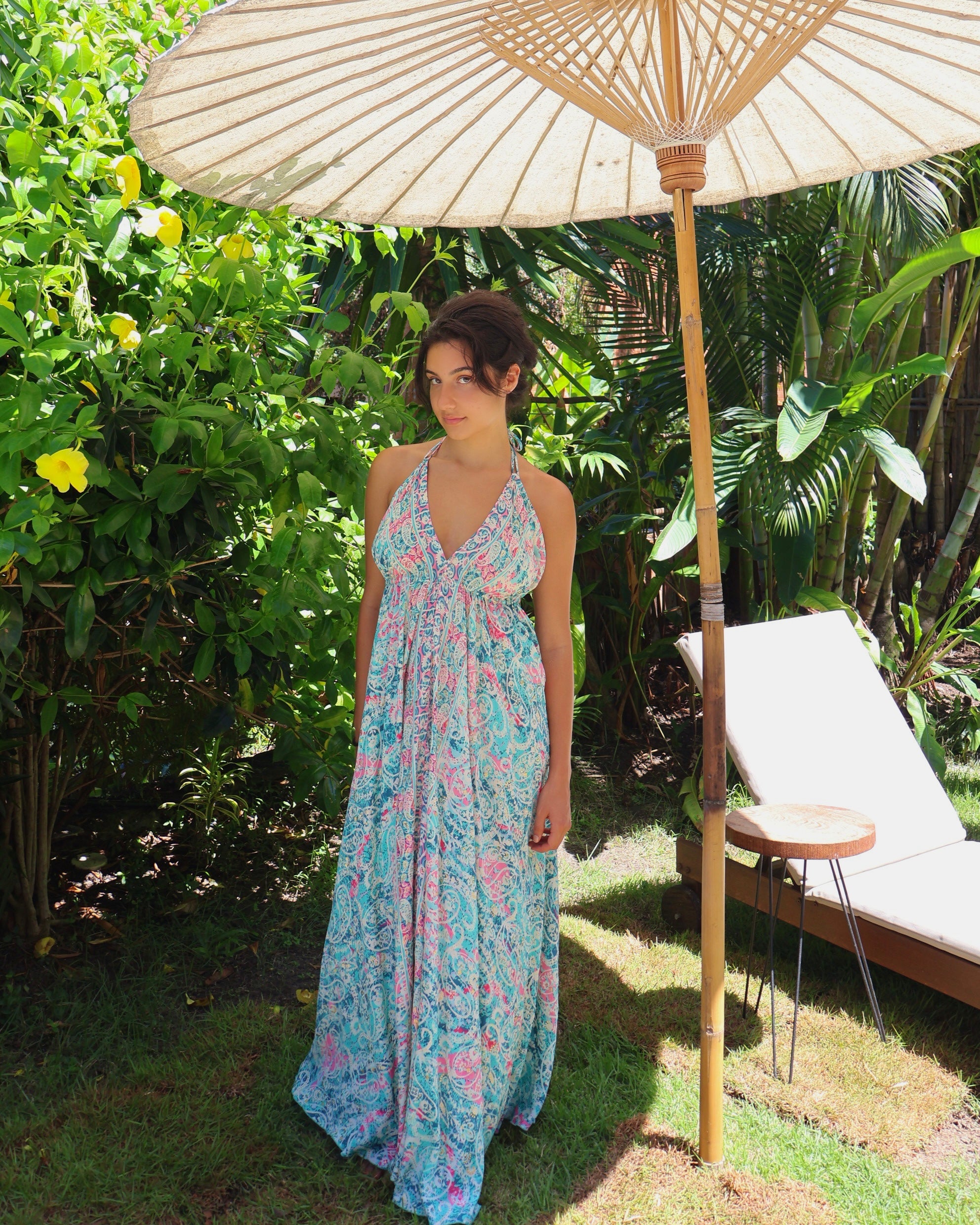 Long Gold Ibiza Dress - Turquoise + Rosa