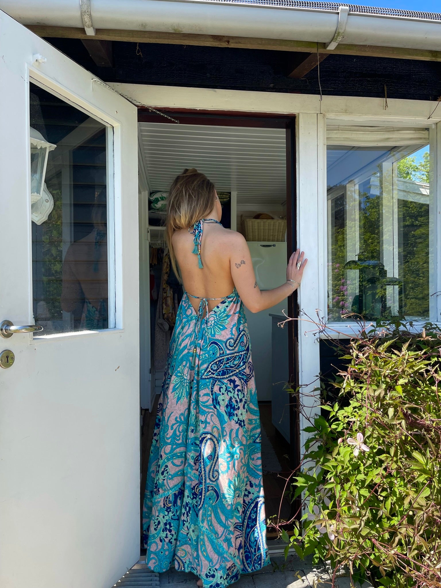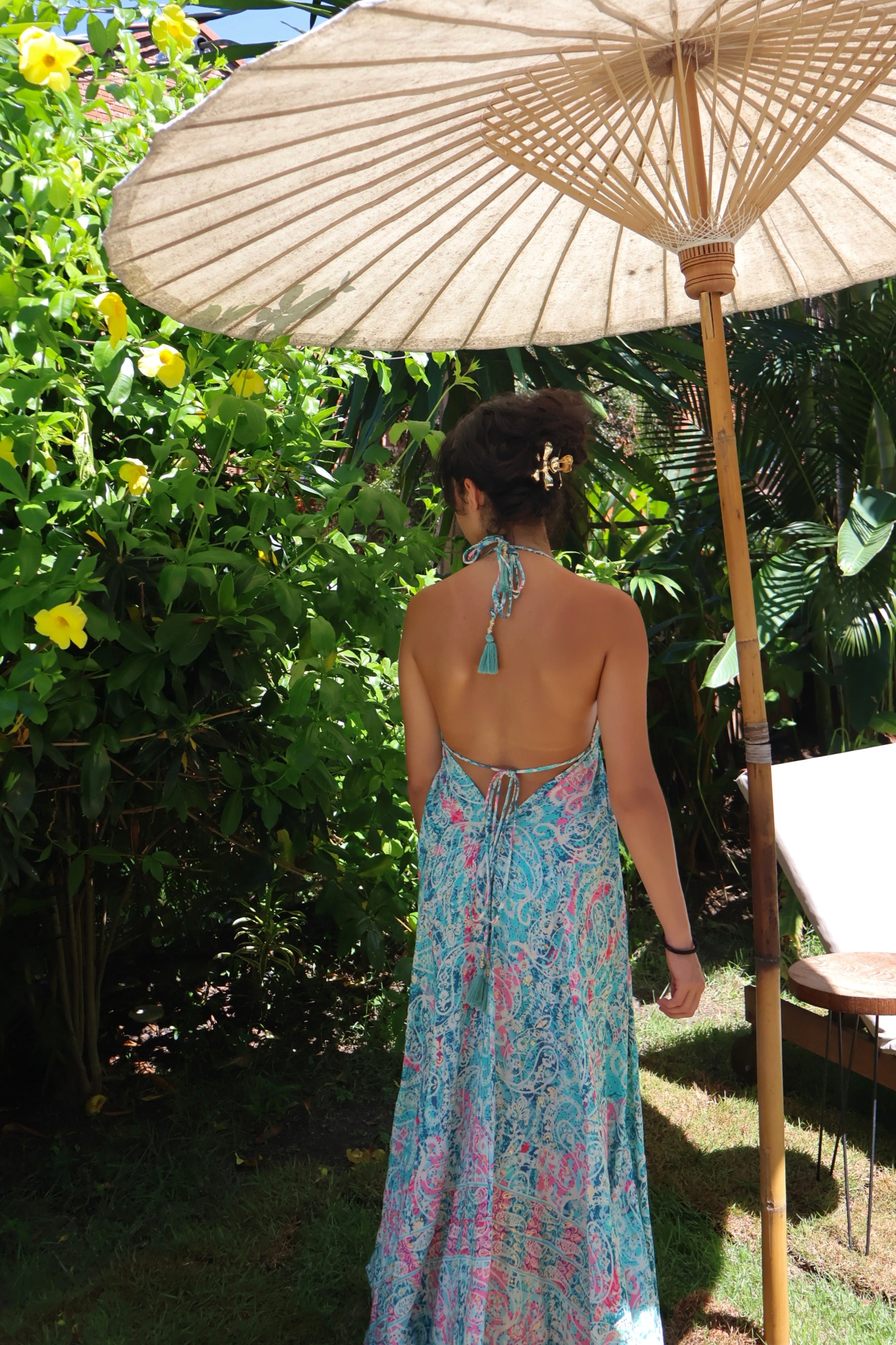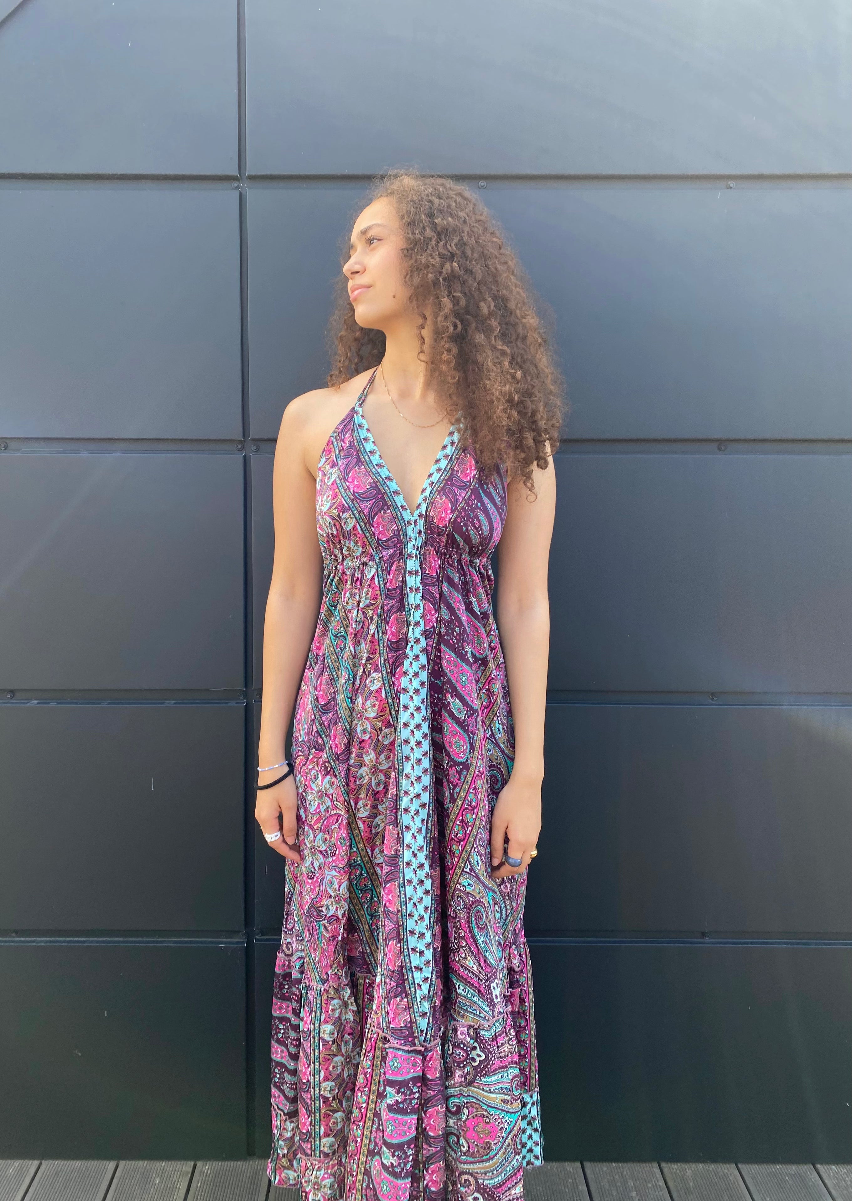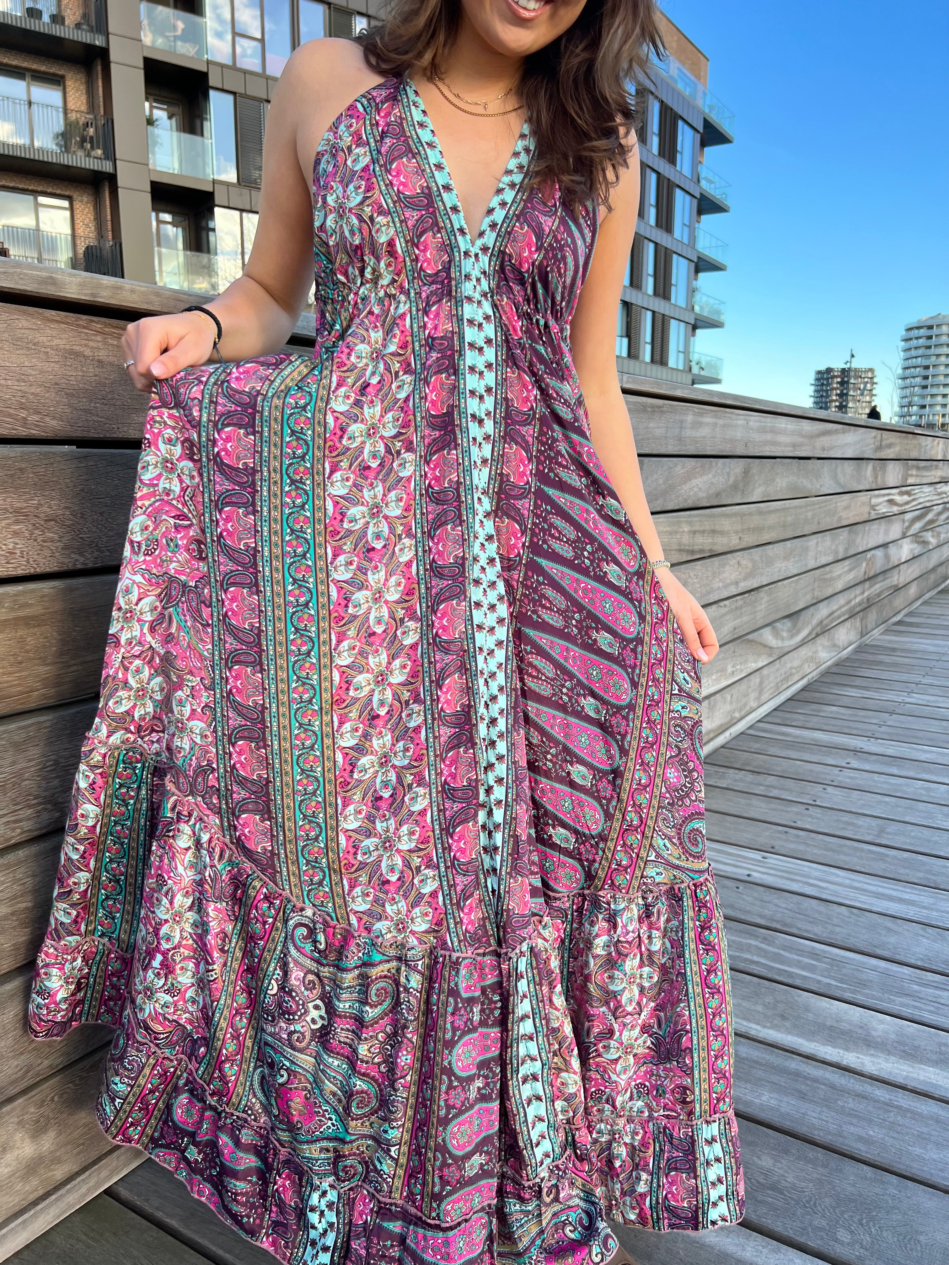 Long Gold Ibiza Dress - Turquoise + Rosa
