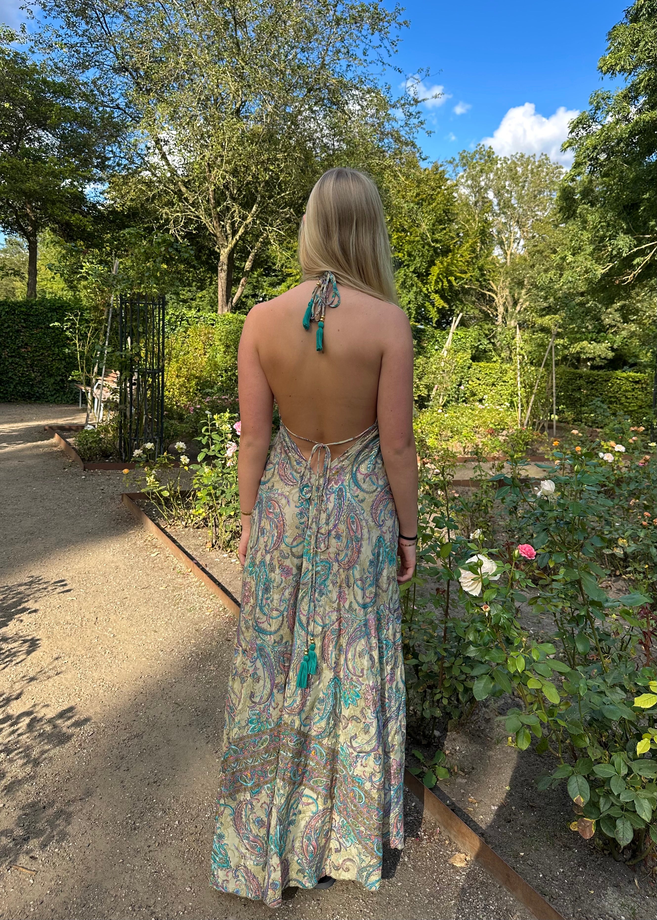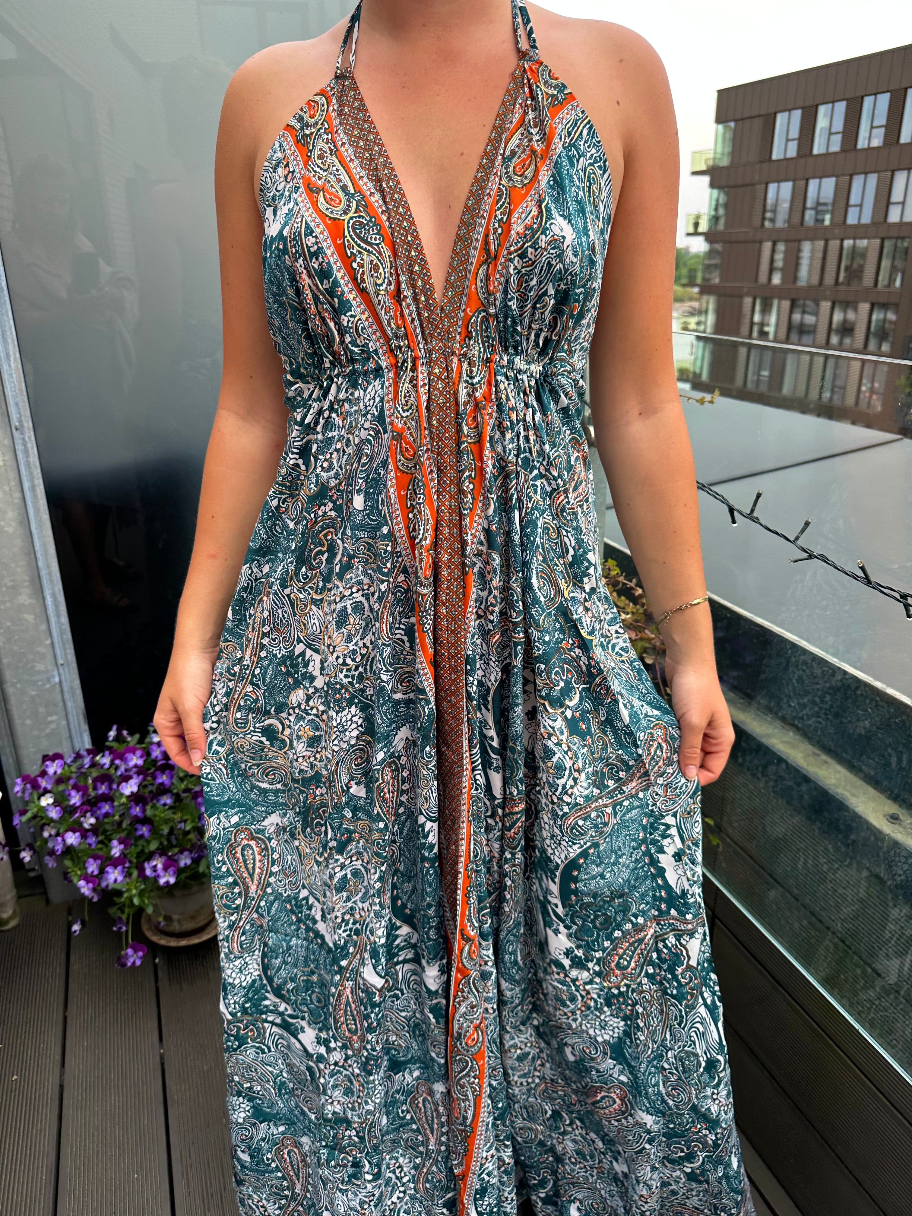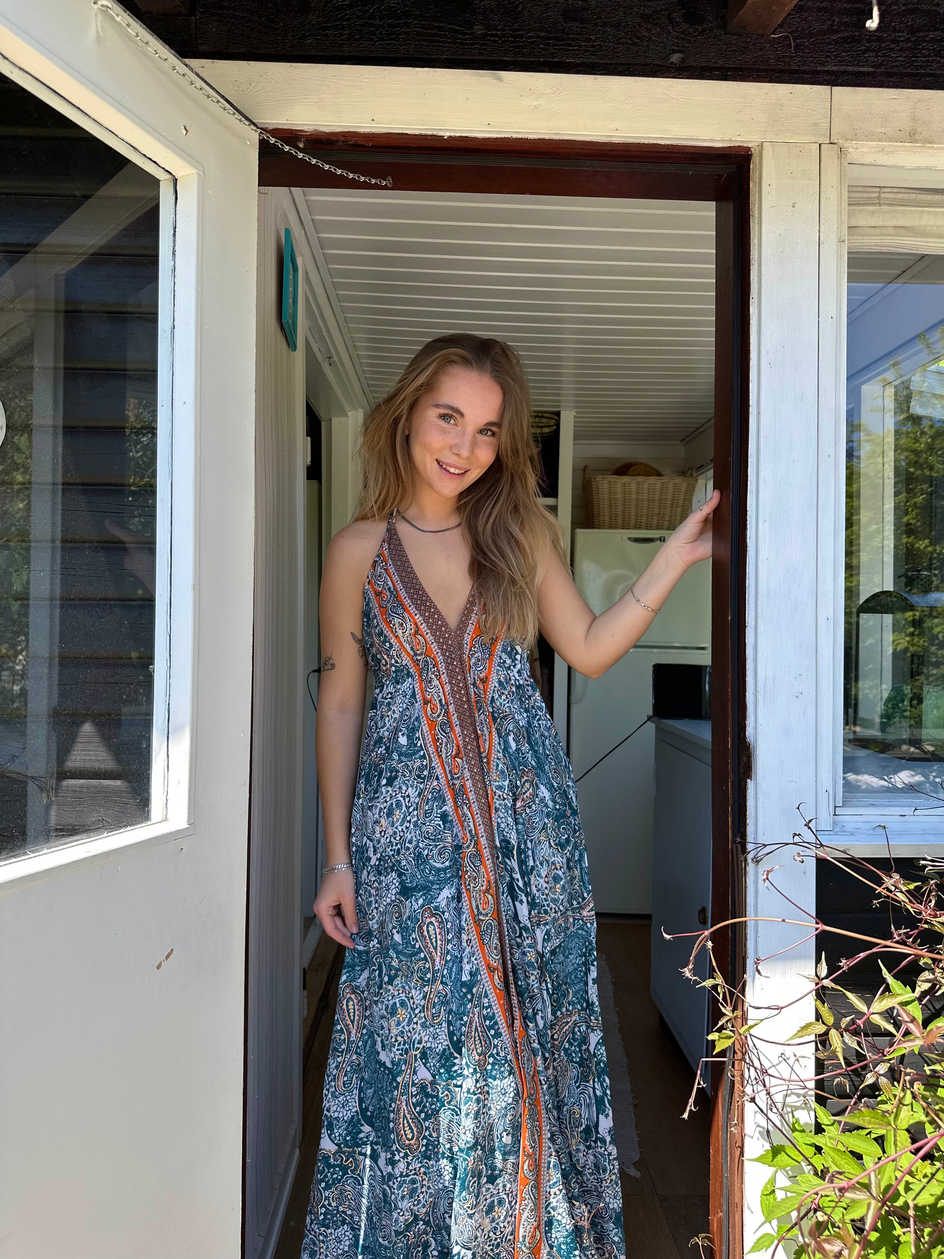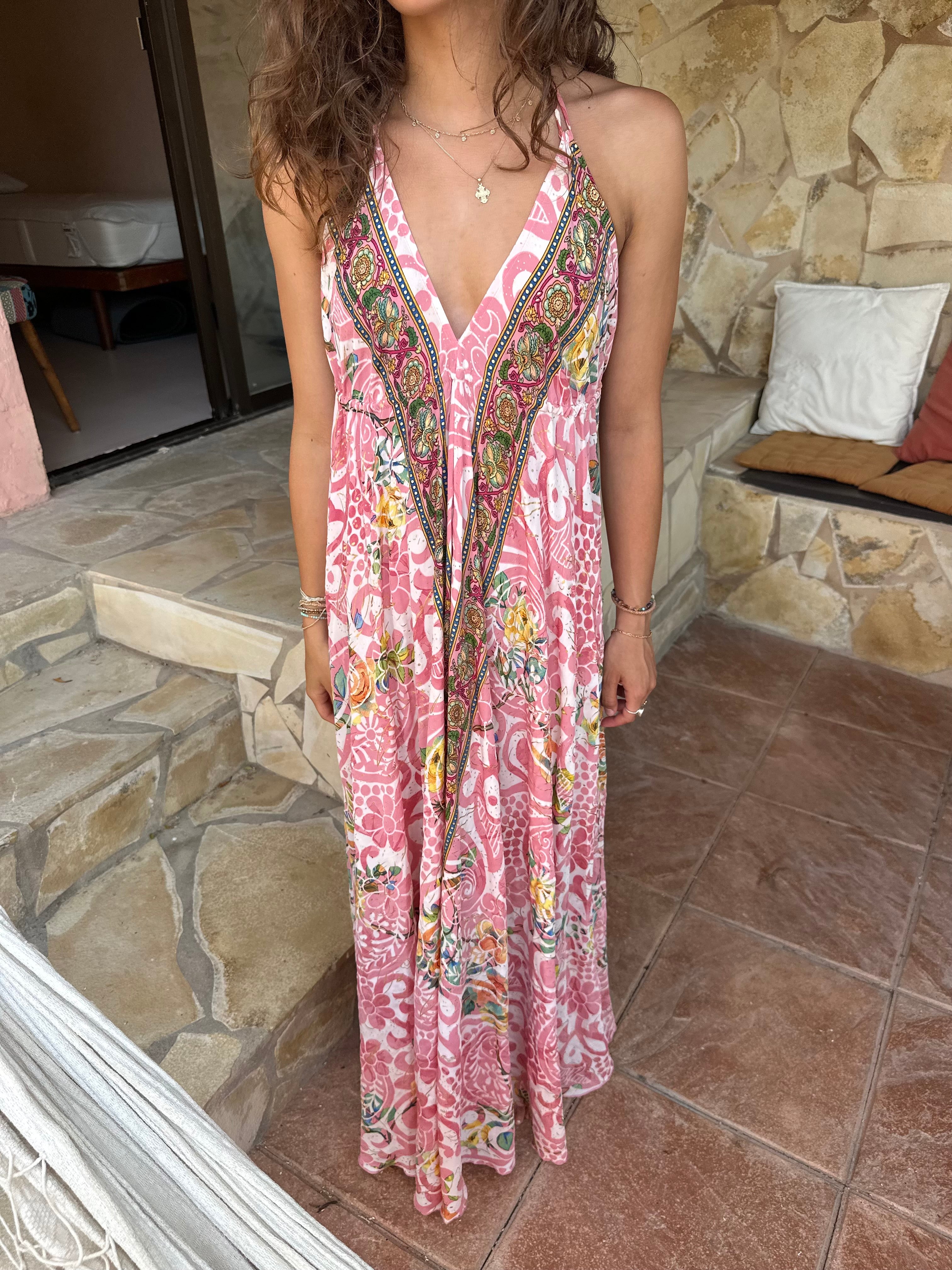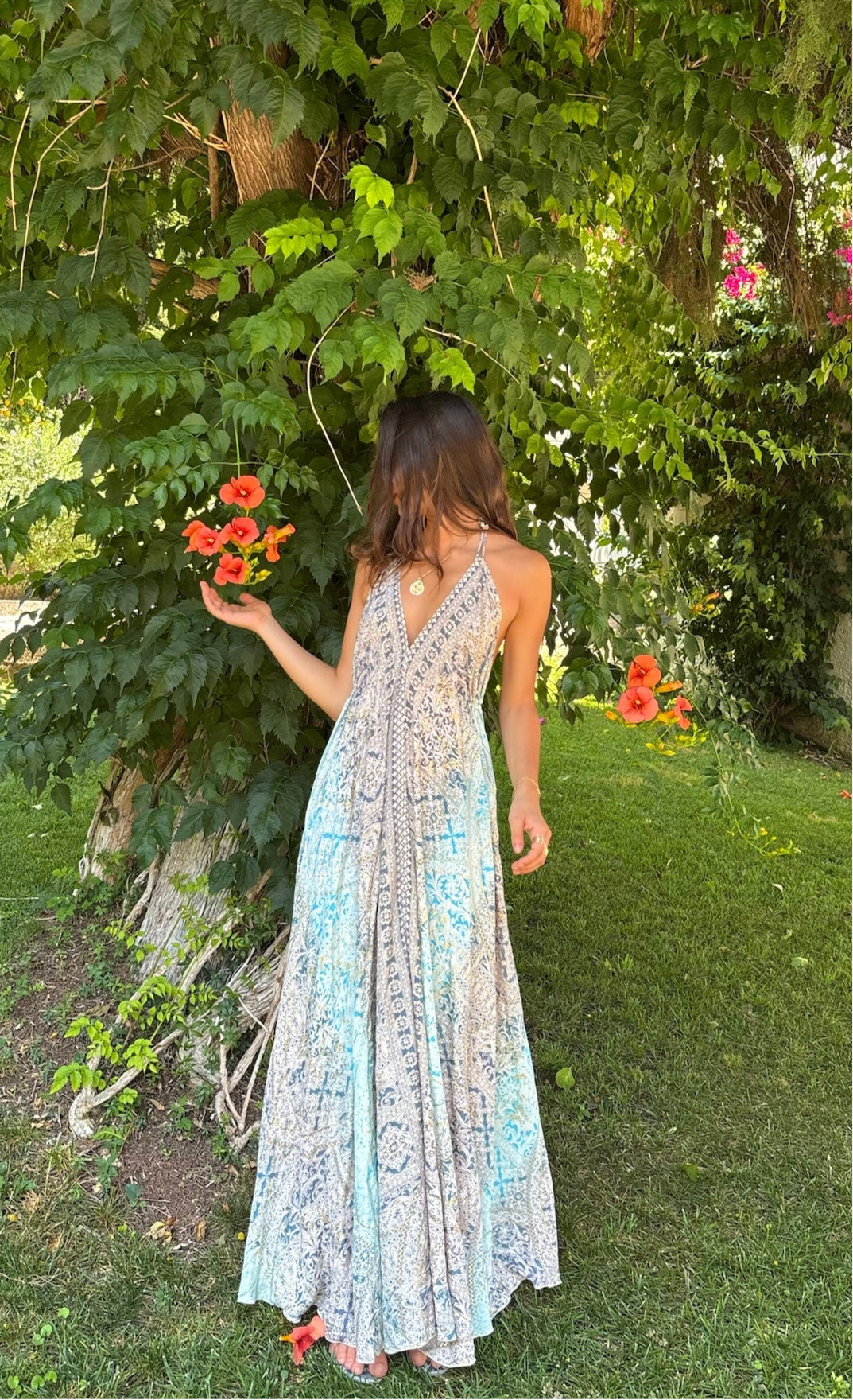 Long Gold Ibiza Dress - Turquoise + Rosa