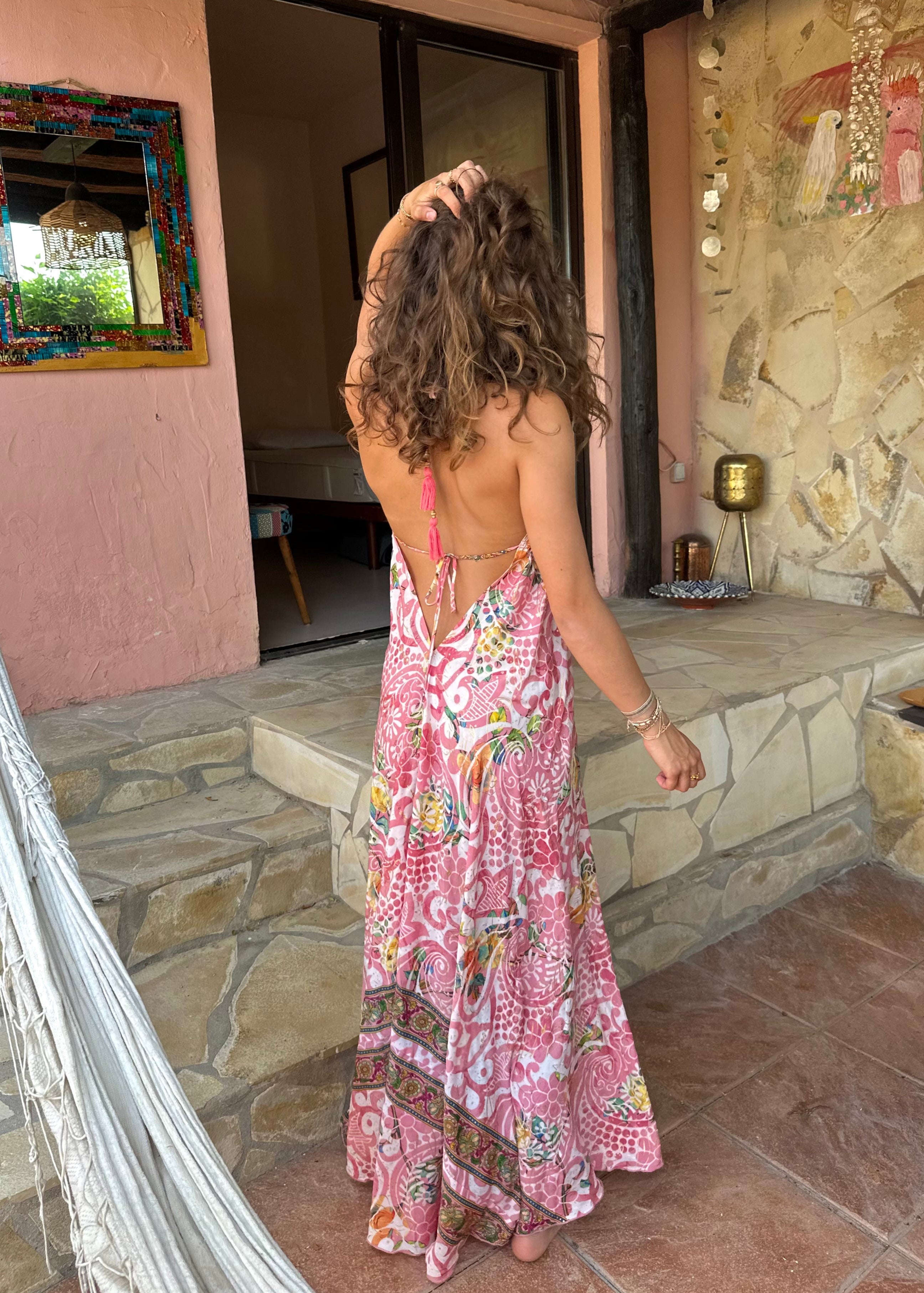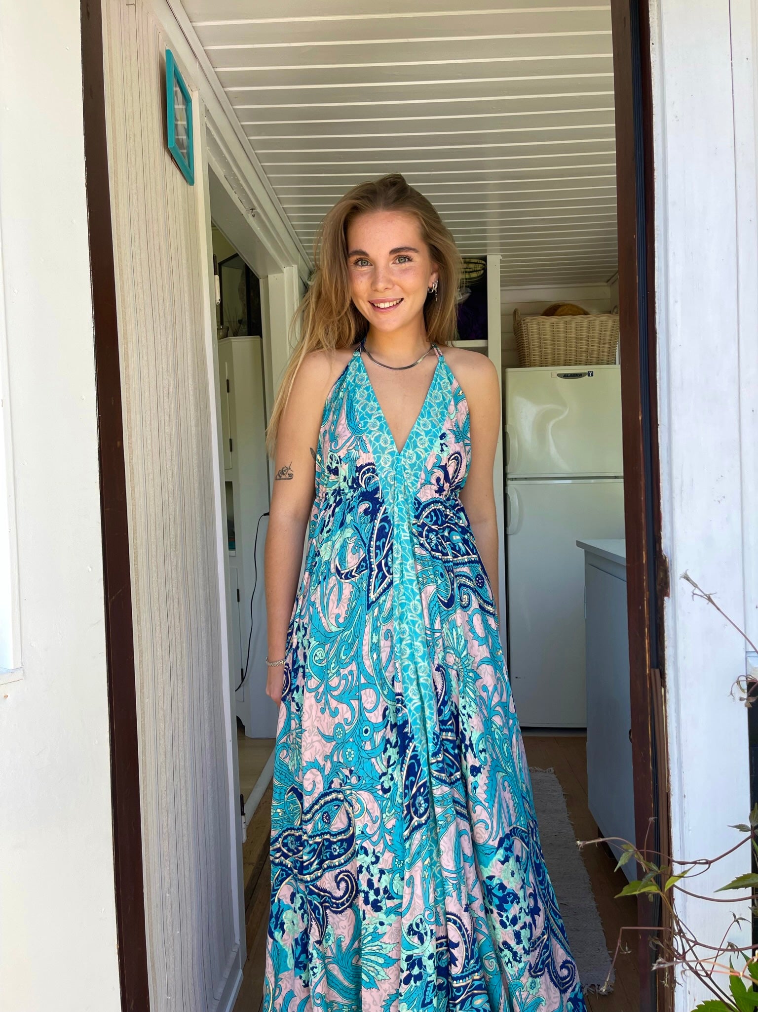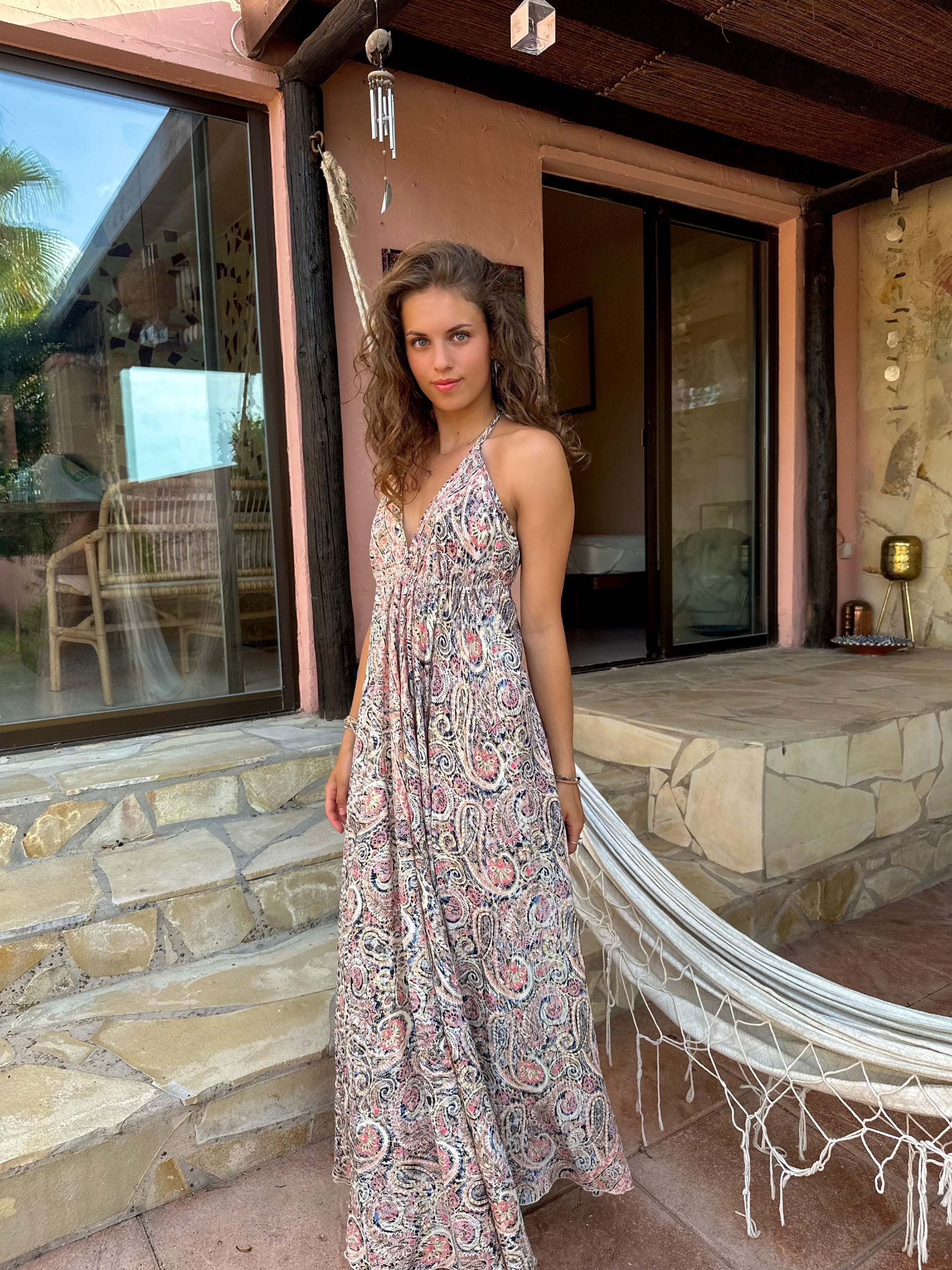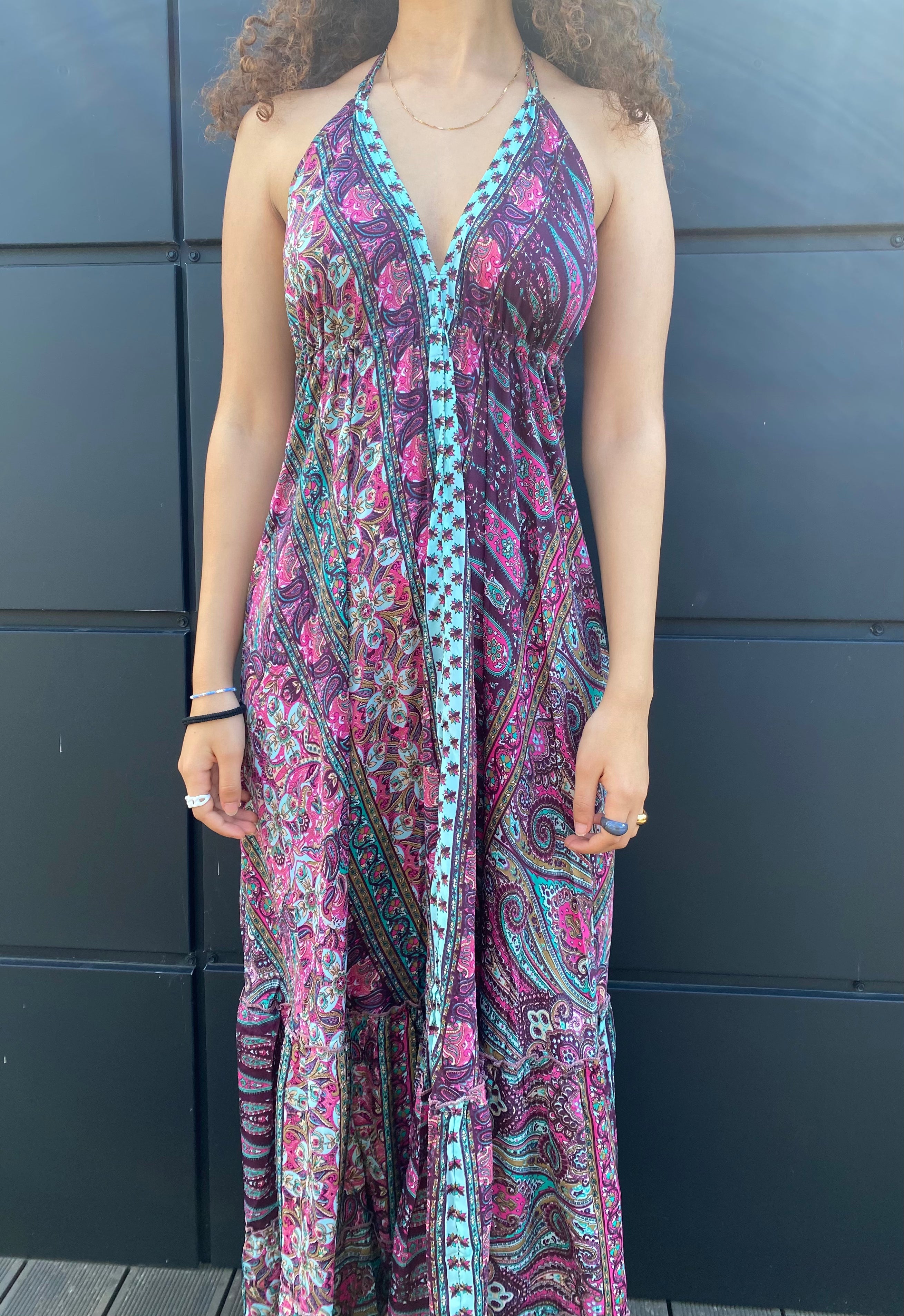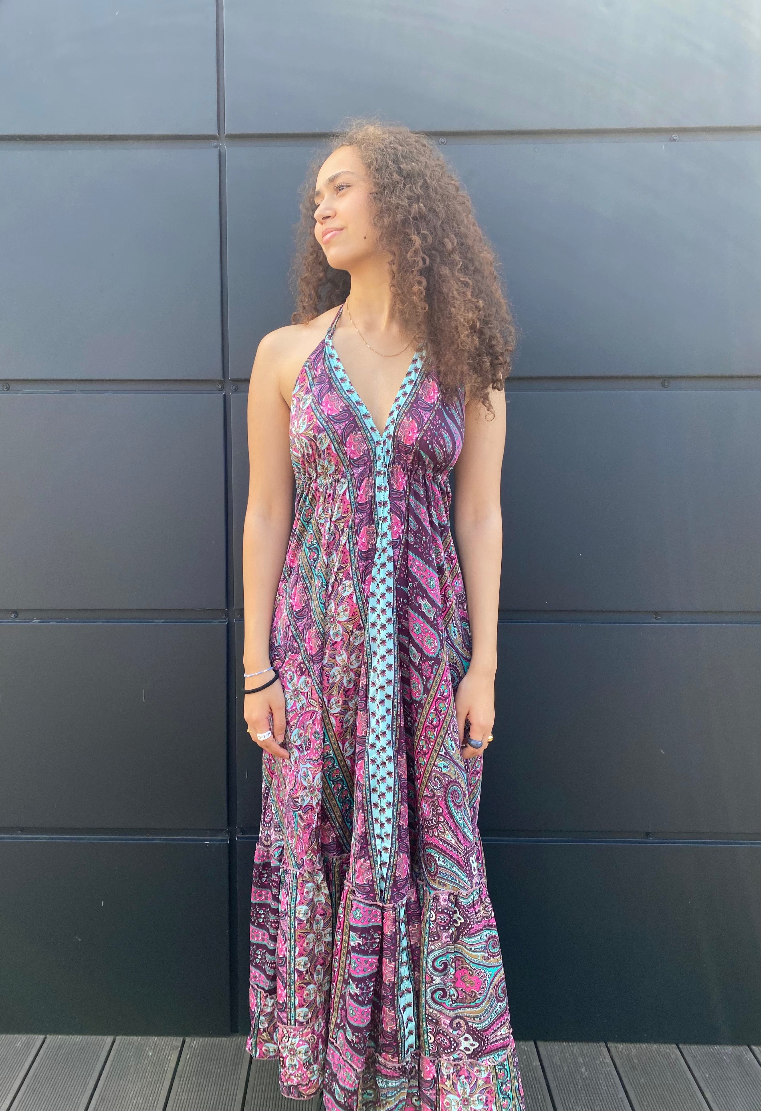 Long Gold Ibiza Dress - Turquoise + Rosa