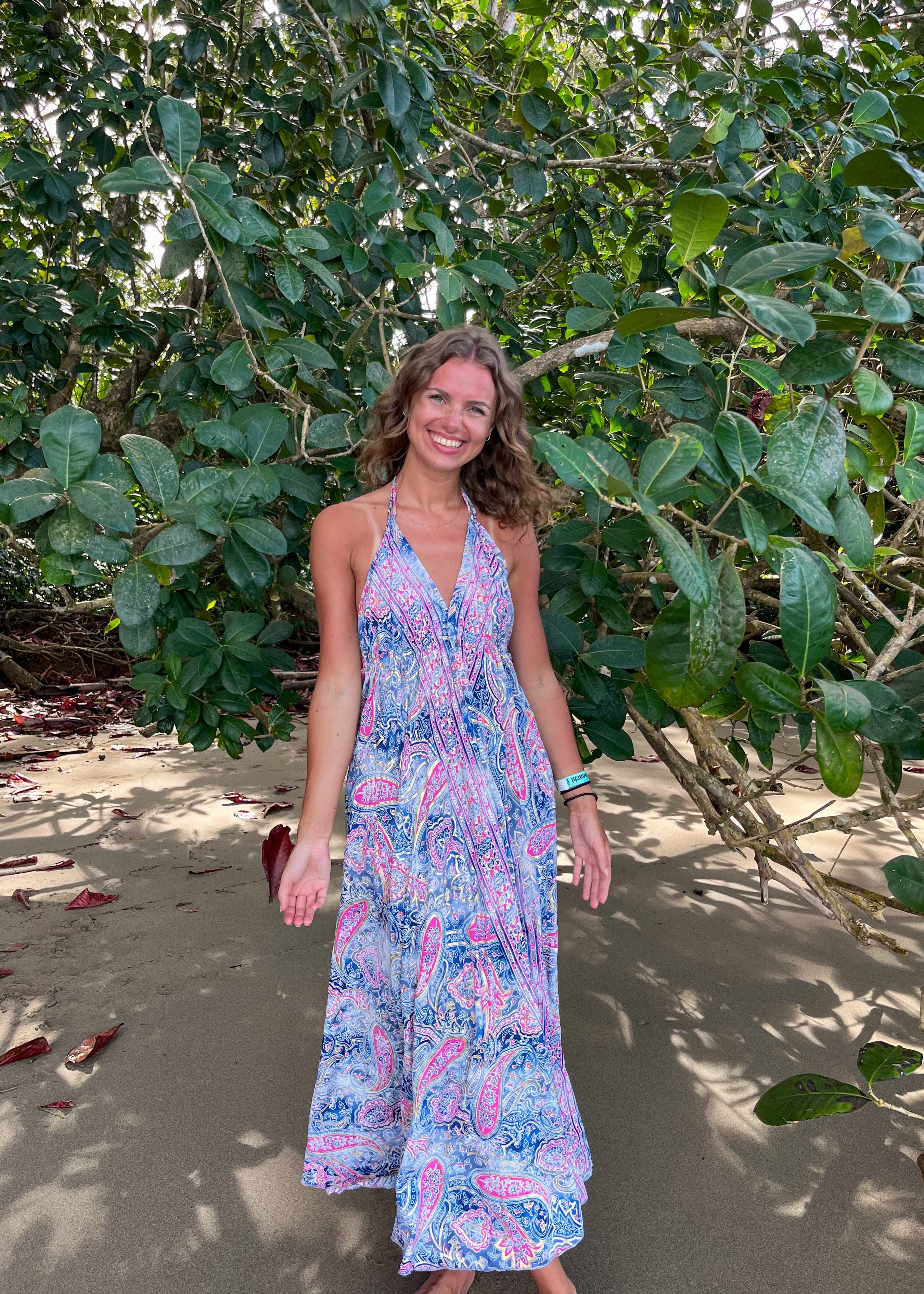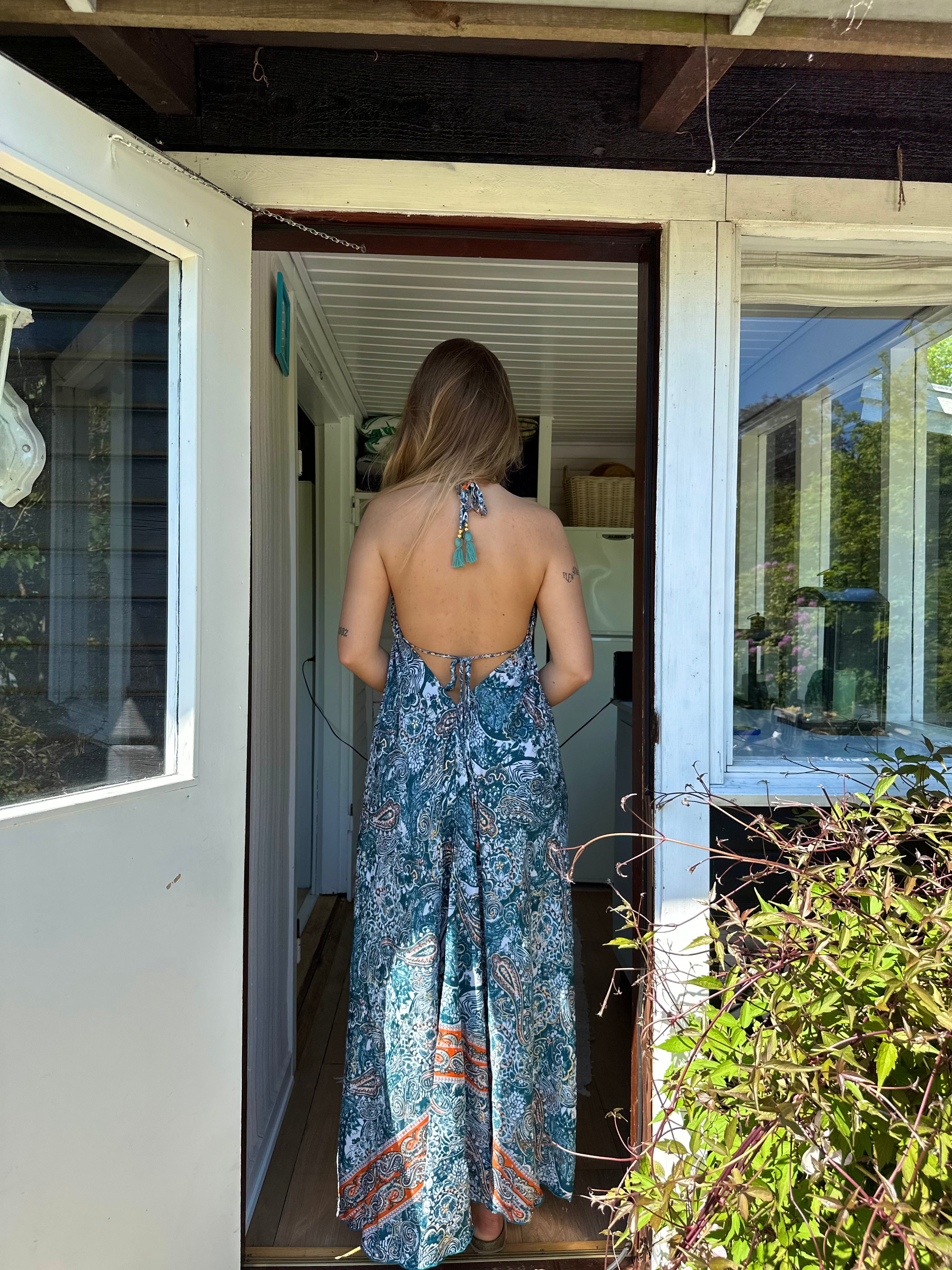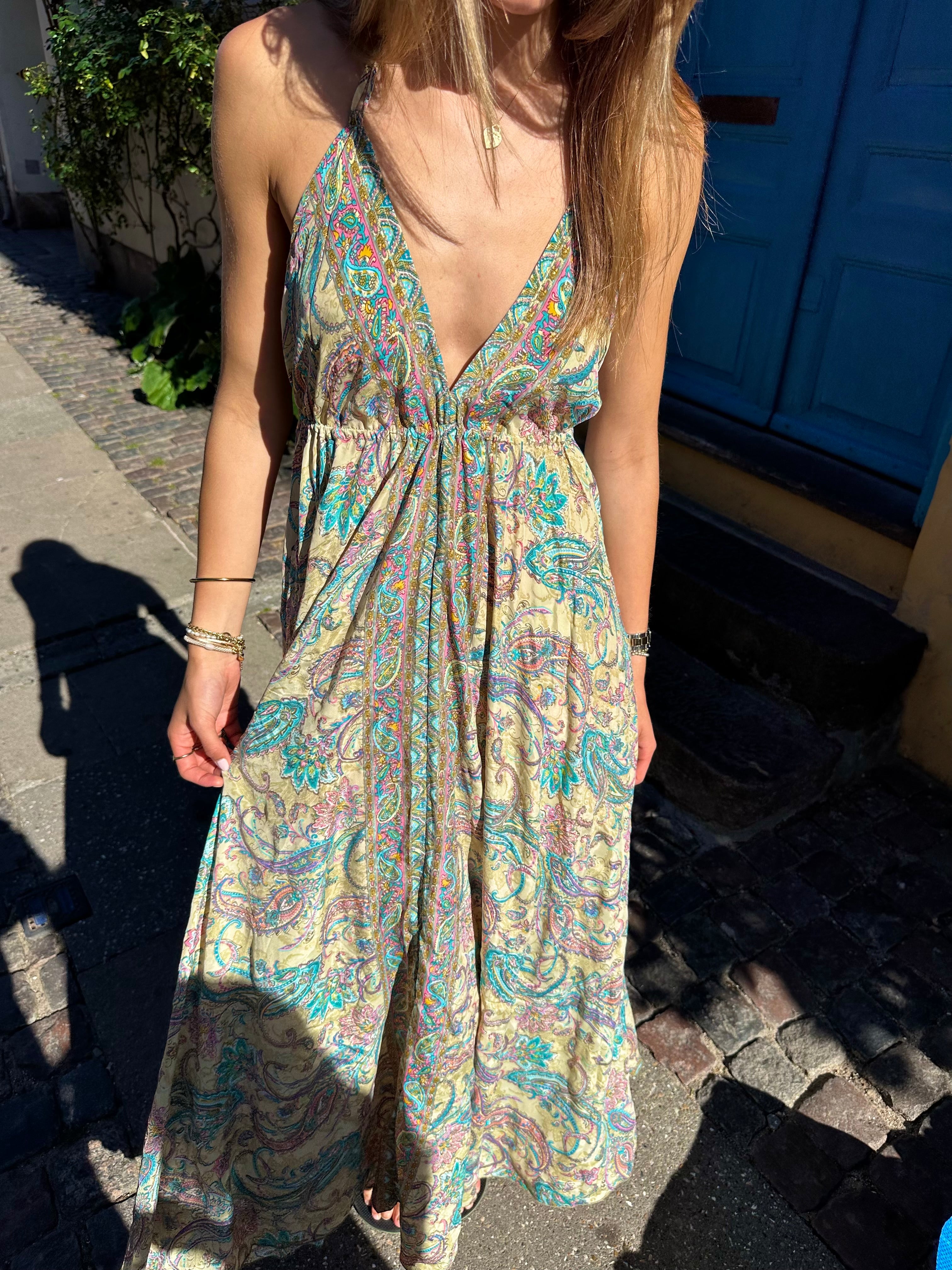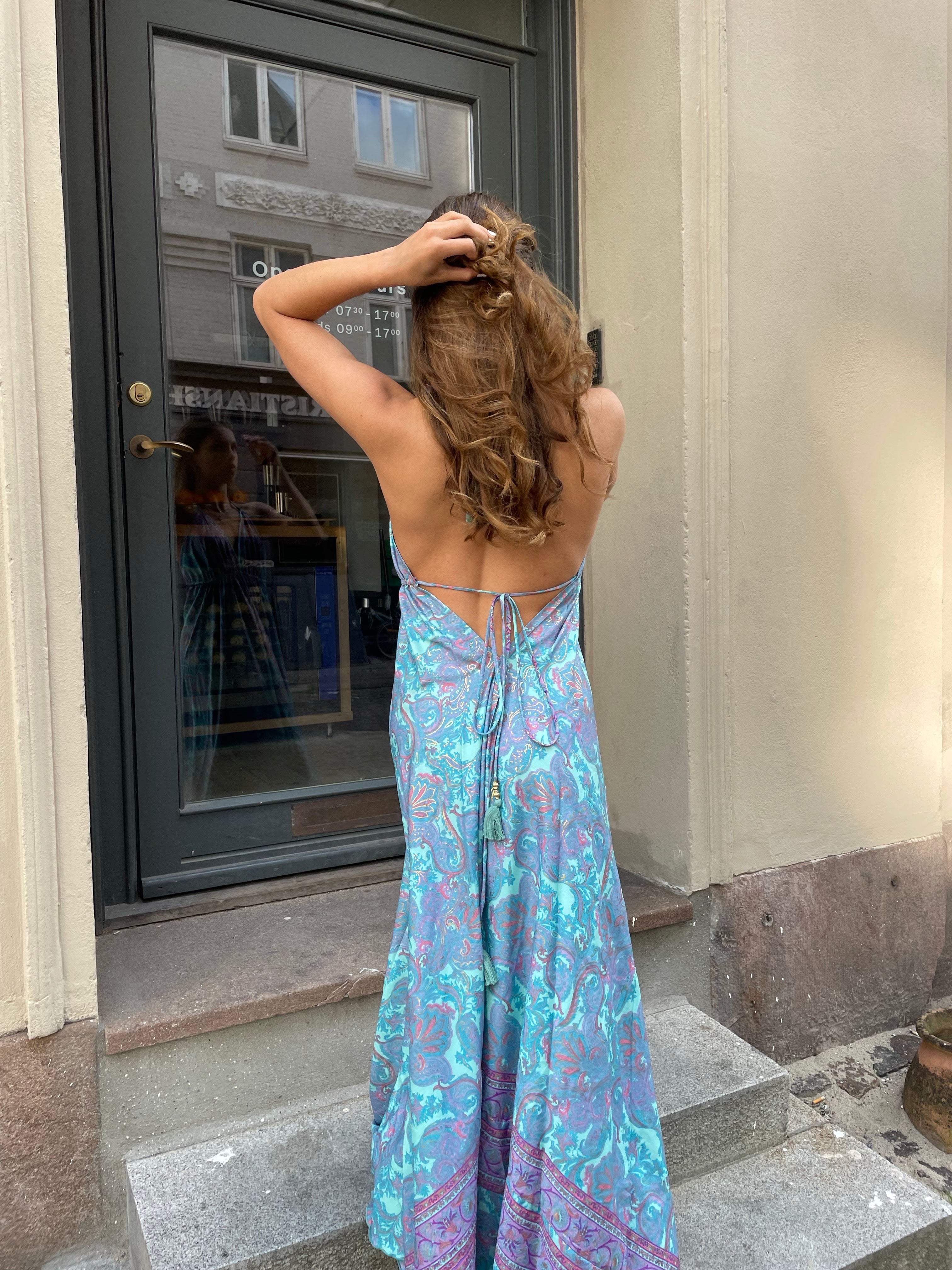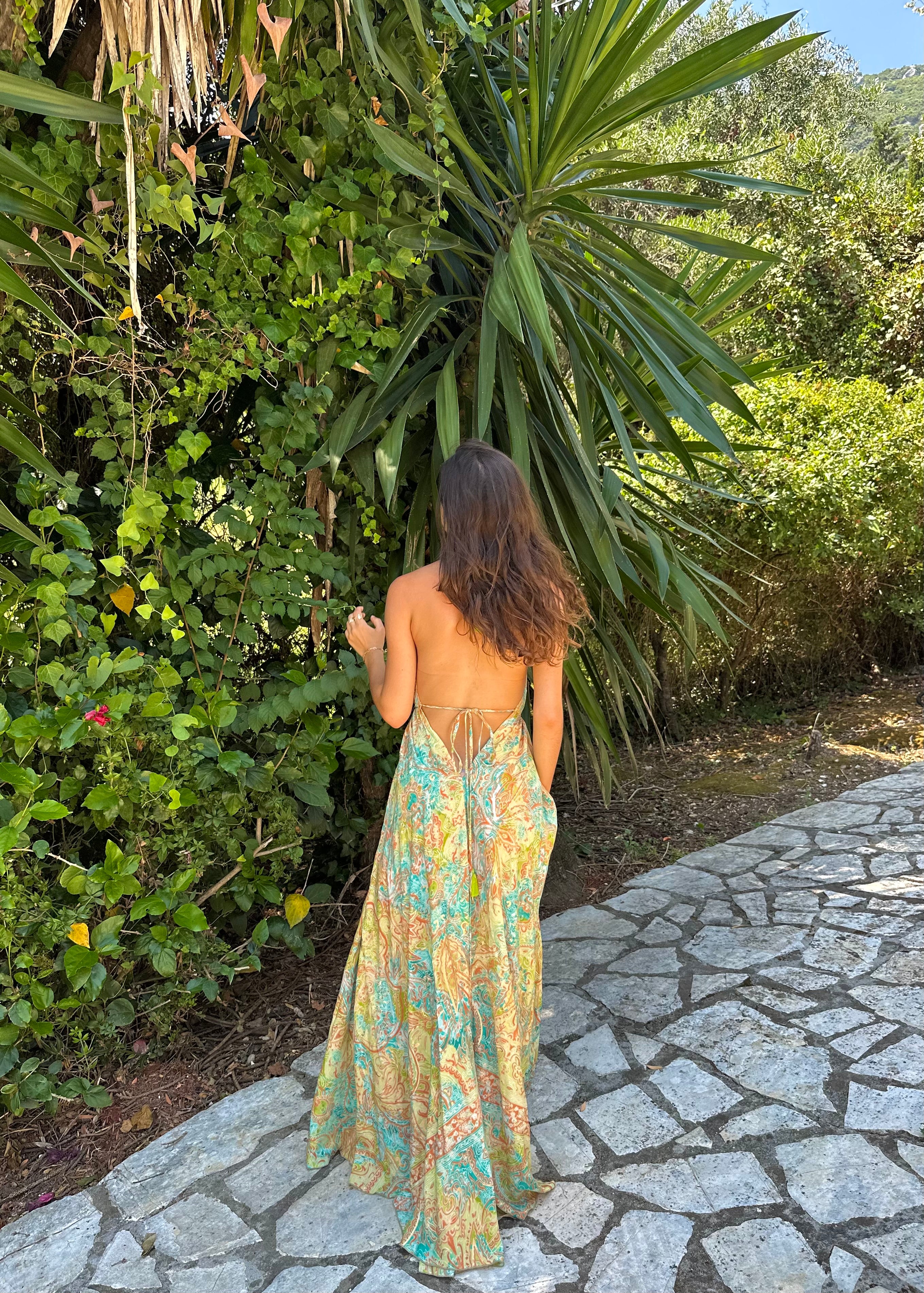 Long Gold Ibiza Dress - Turquoise + Rosa