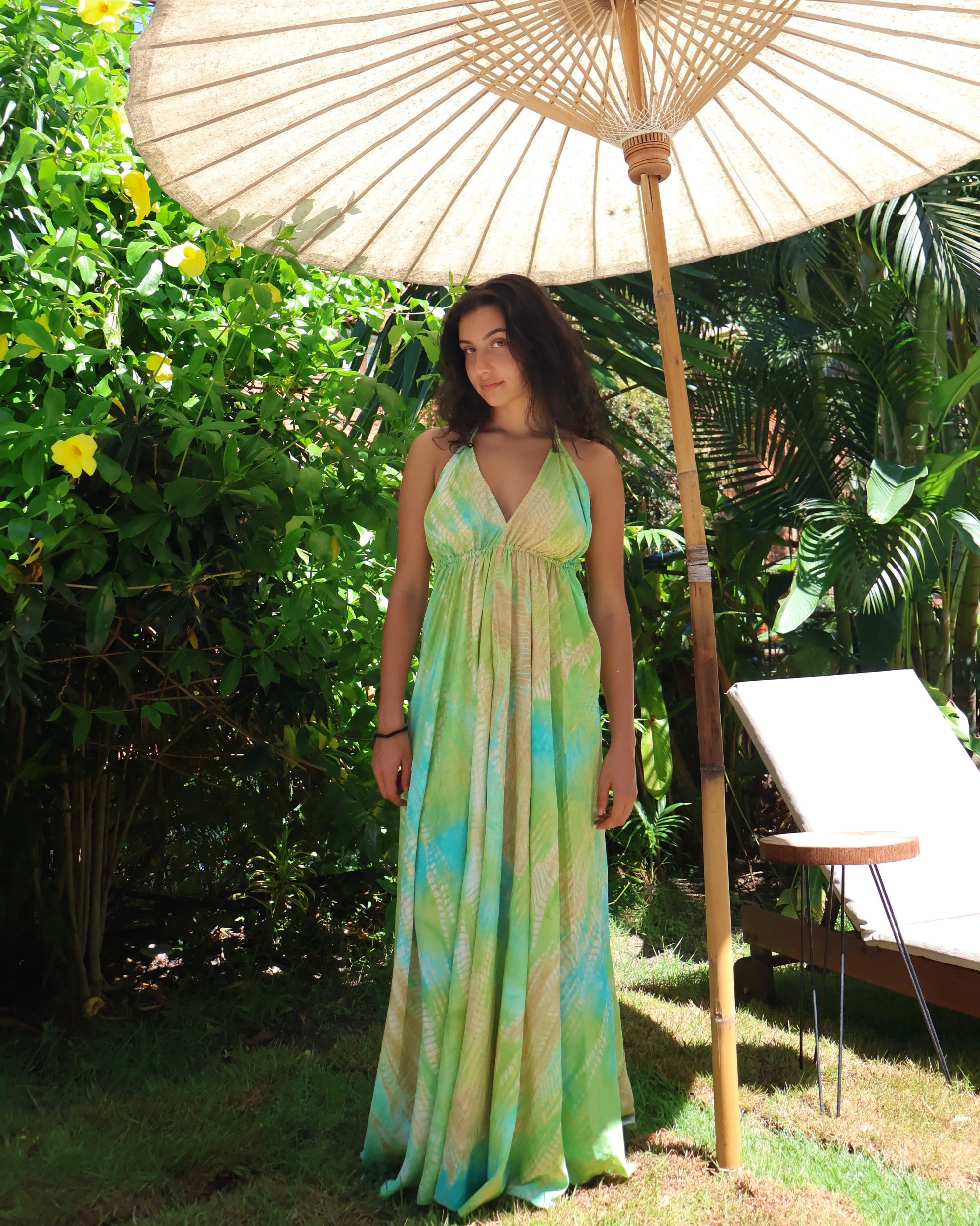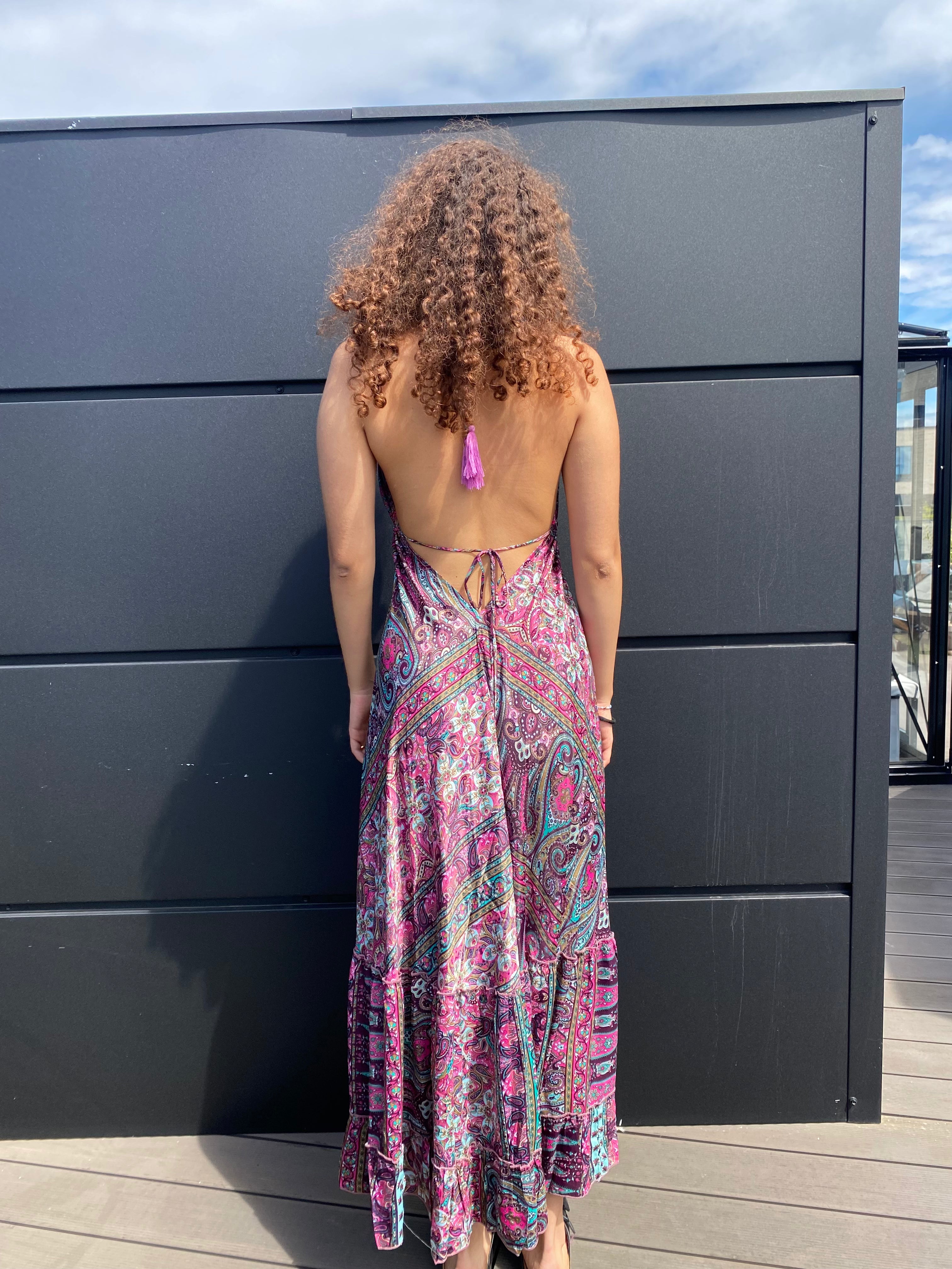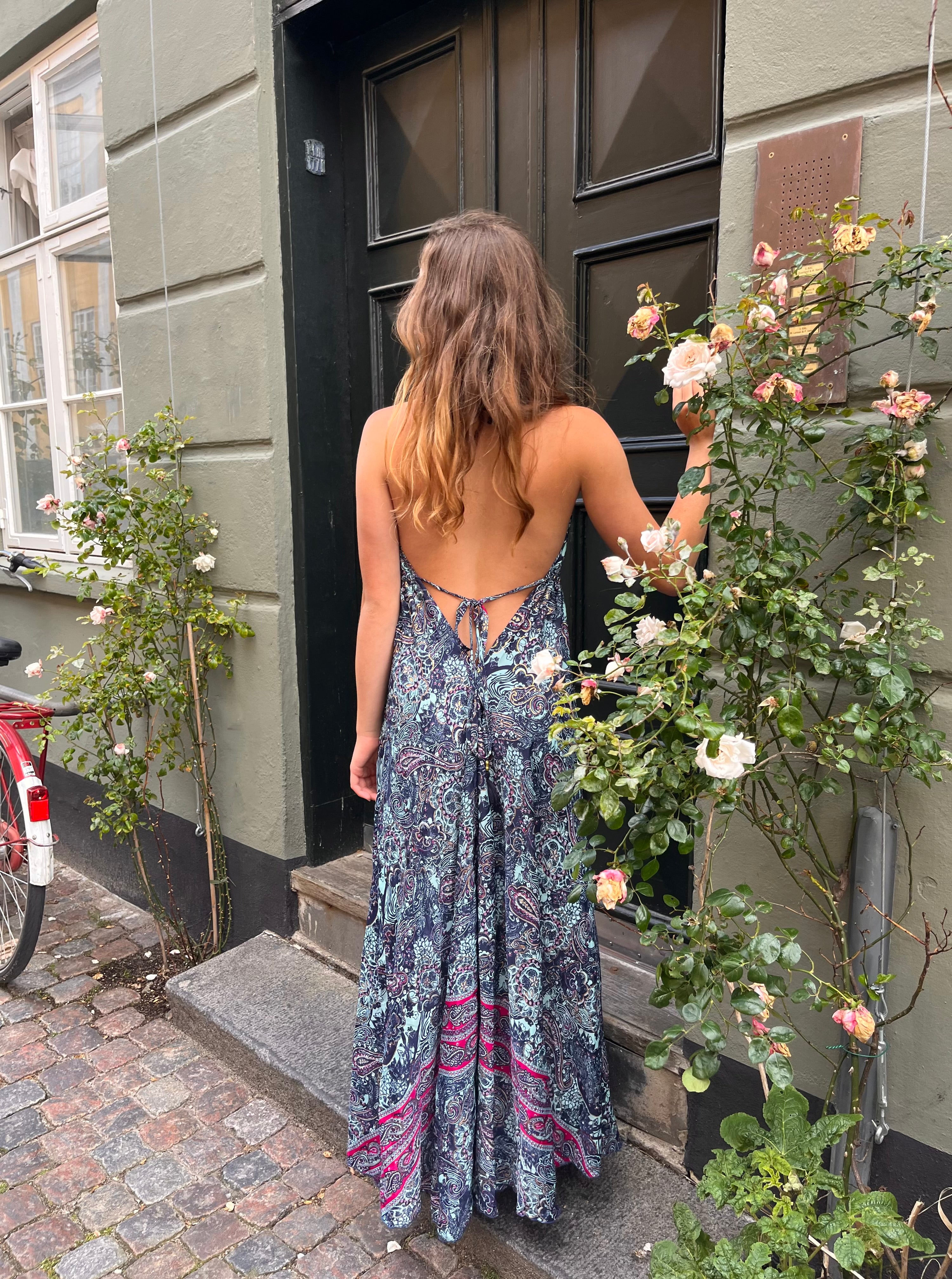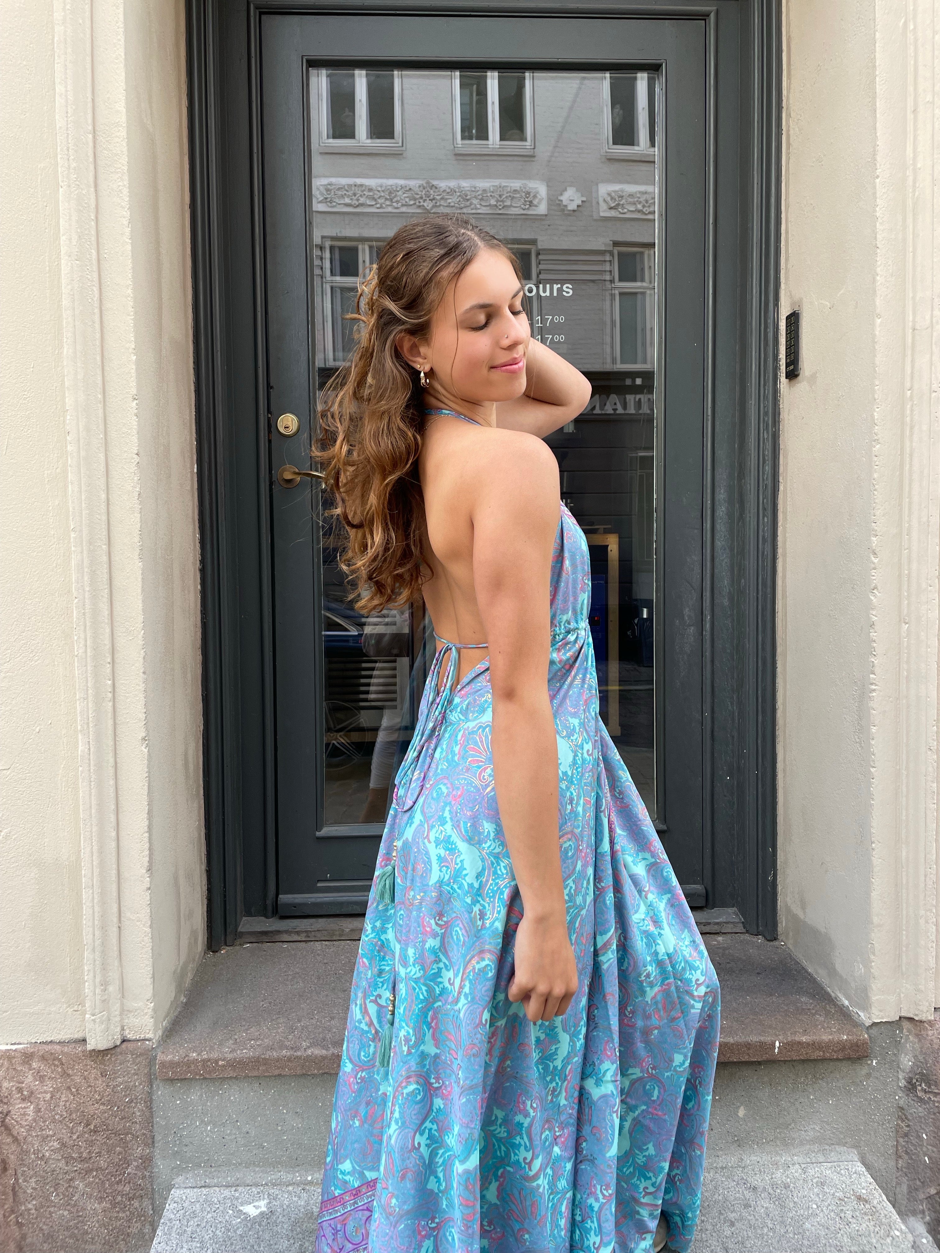 Long Gold Ibiza Dress - Turquoise + Rosa