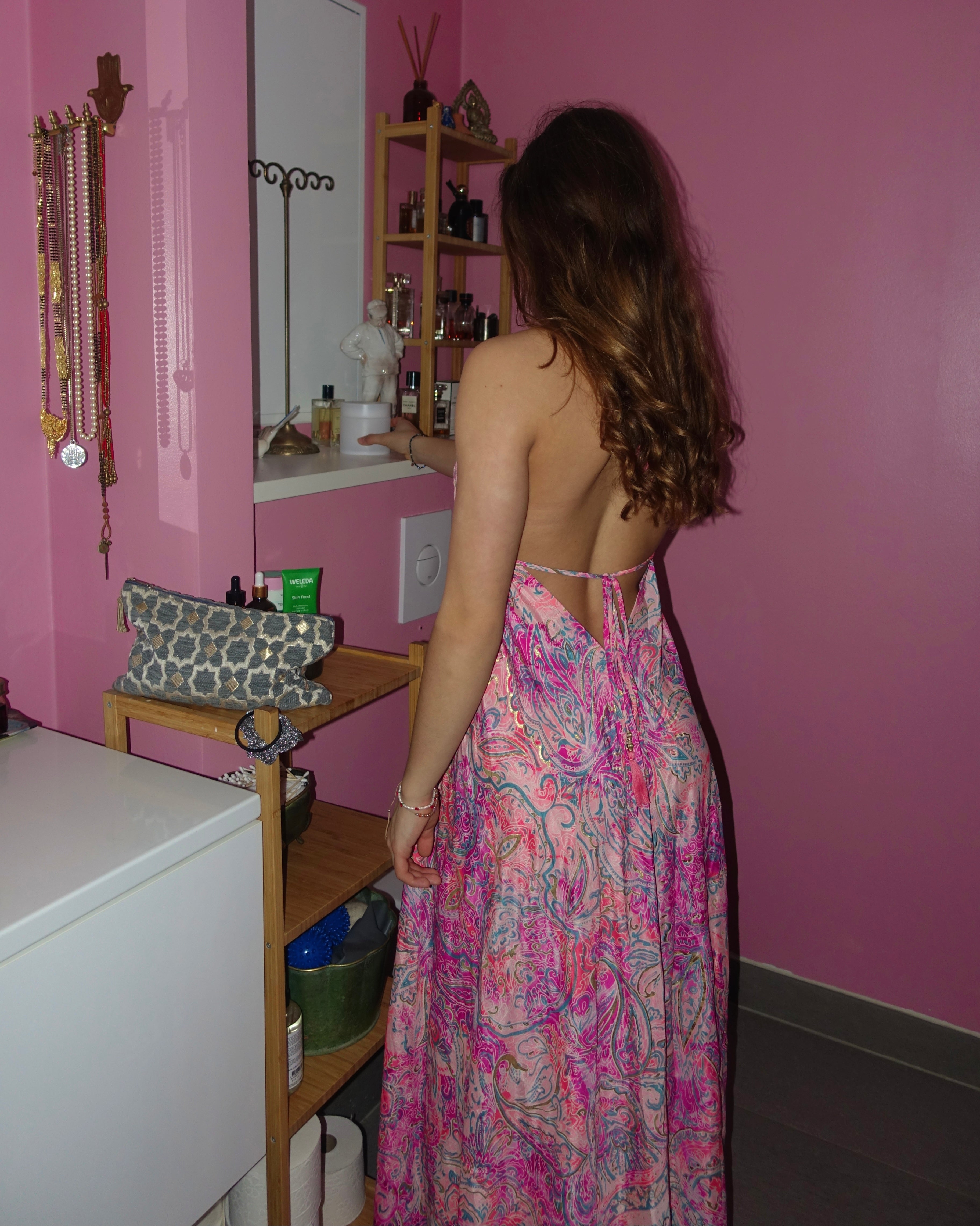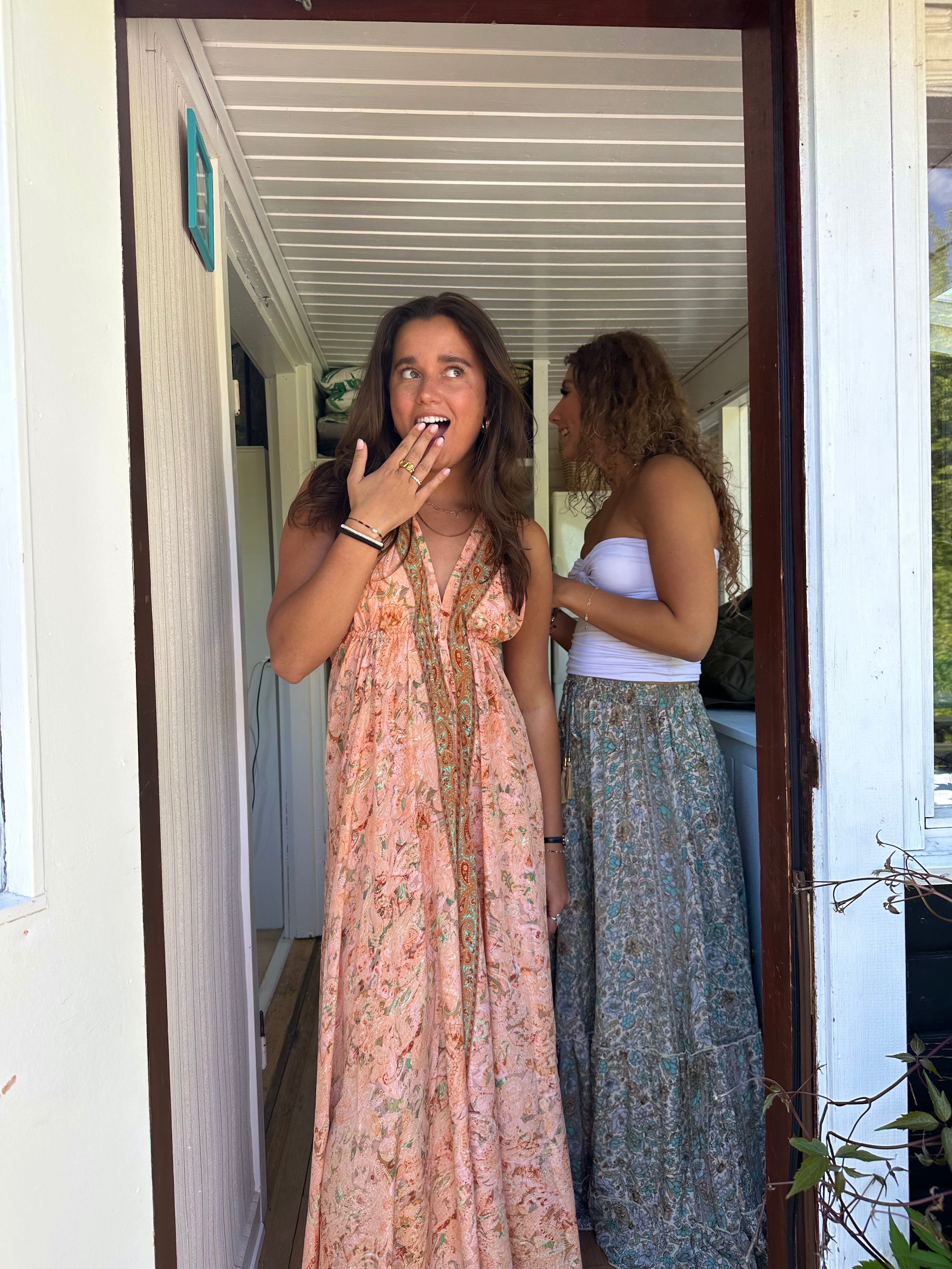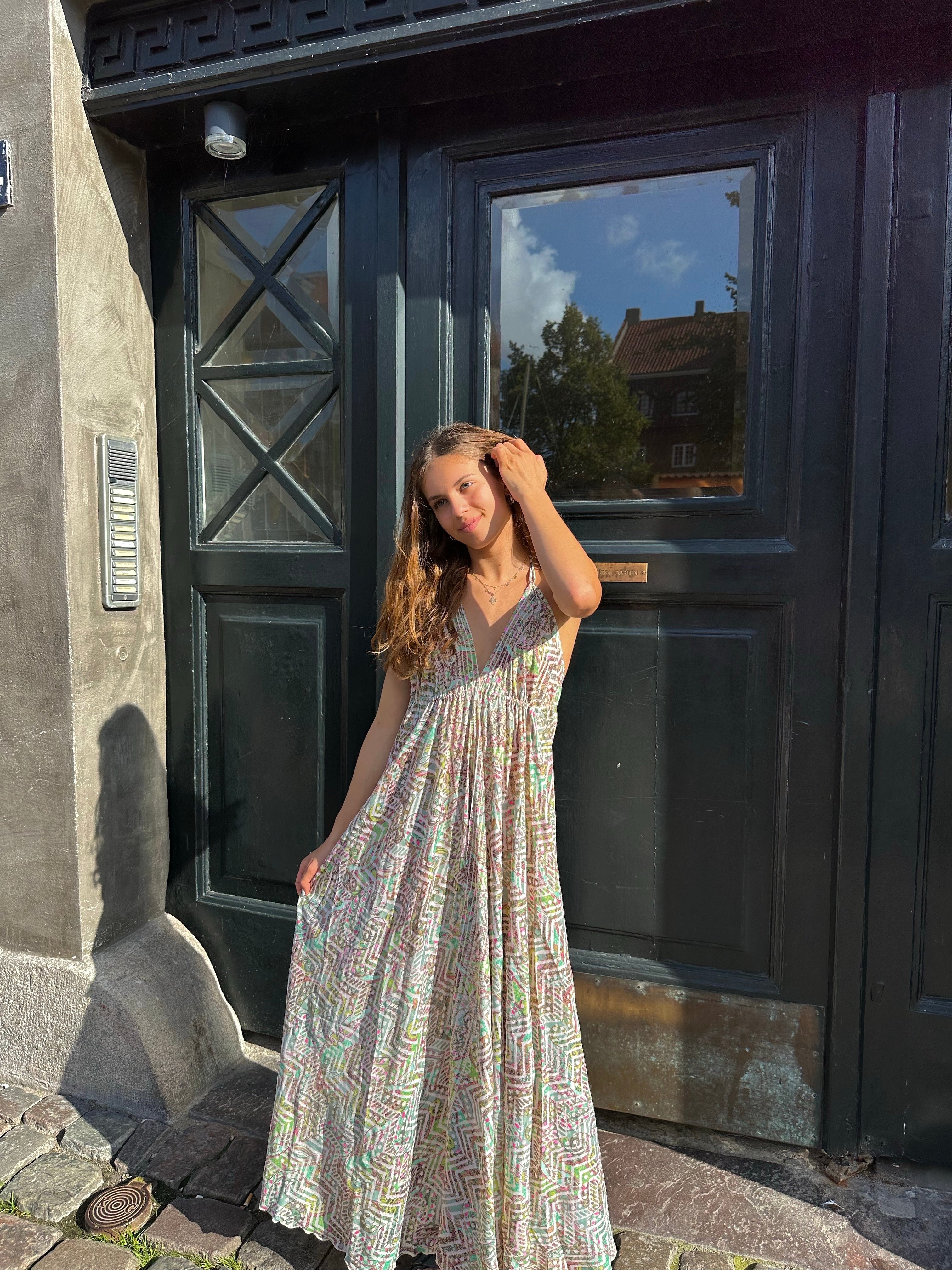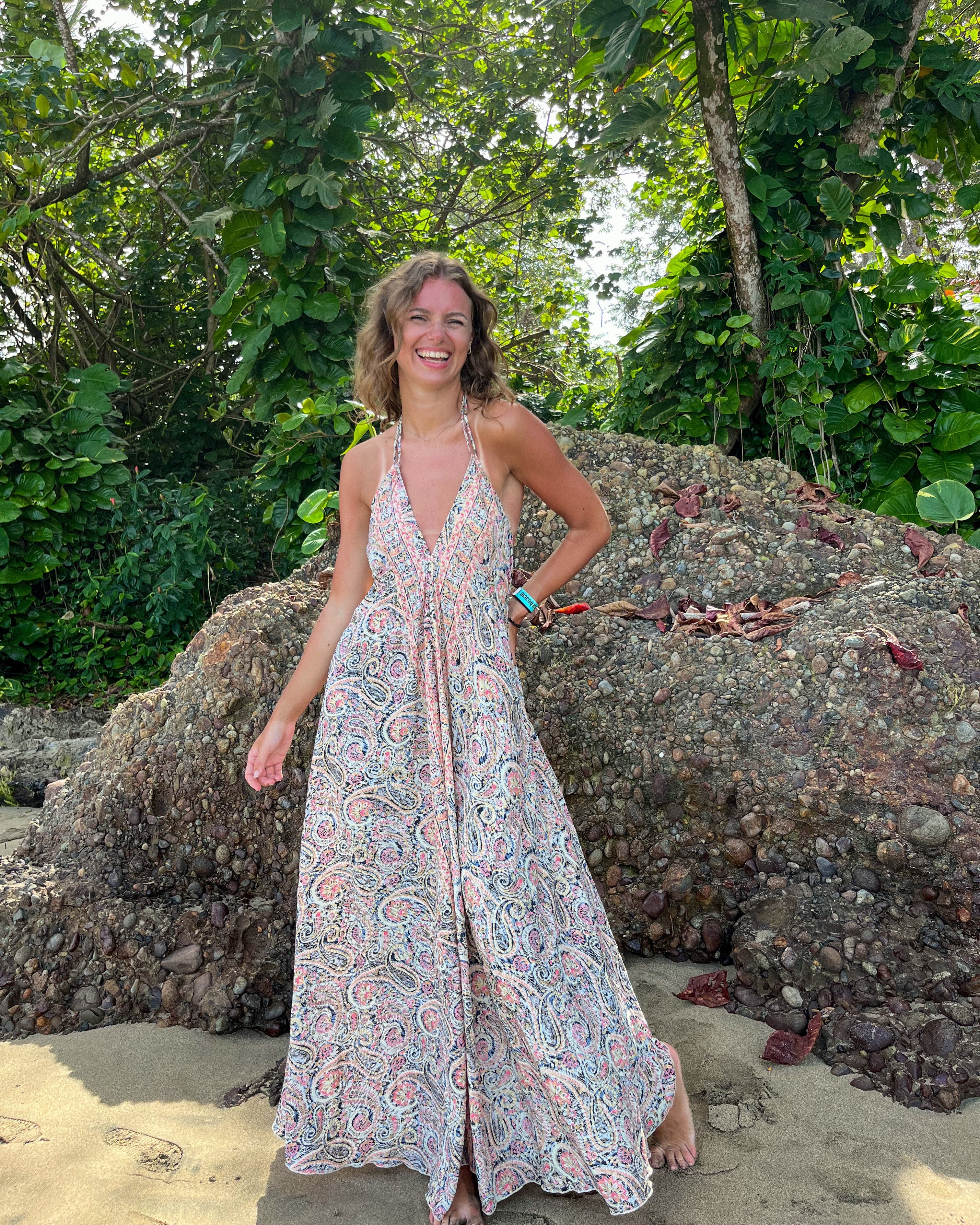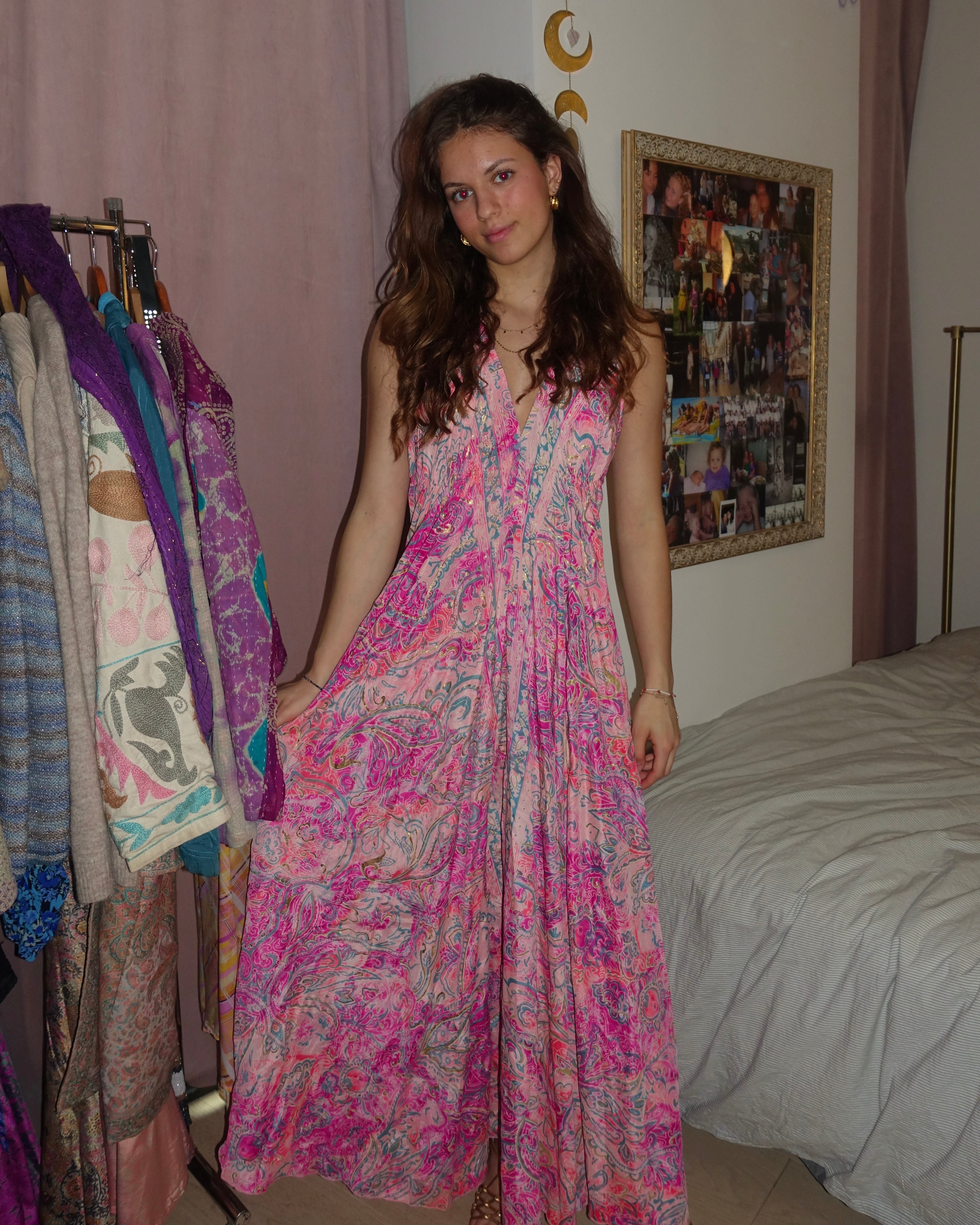 Long Gold Ibiza Dress - Turquoise + Rosa