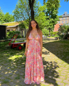 Long Gold Ibiza Dress - Orange + Pink