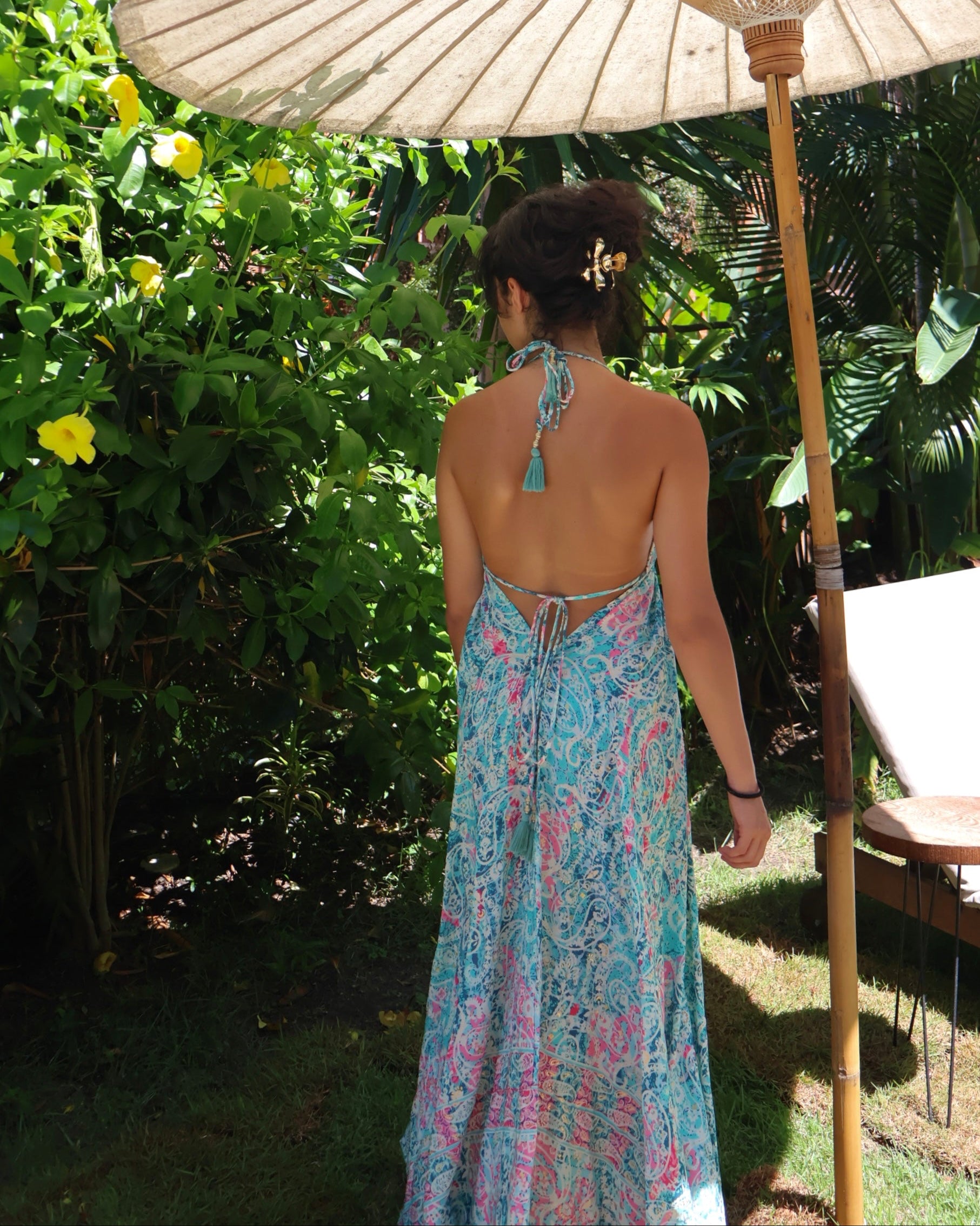 Long Gold Ibiza Dress - Turquoise + Rosa