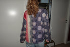 This jacket is sewn in Indian kantha quilt. The material is handmade and recycled, which means that all the jackets are different. The fabric is quilted in several layers. It is handmade in the beautiful kantha style, which is the way the fabric is quilted. The Kantha material on this particular style has a lovely heft. The recycled material may have small defects, such as small holes, loose threads and other traces of use. There may also be unevenness in the handmade quilting, but that is just part of the charm of these upcycled products. The quilting is meant to be loose. If you find that one or more fine threads come loose, it is super easy to attach the thread again with a needle.