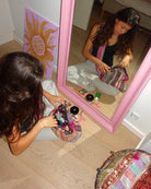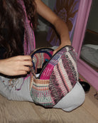 One-of-a-kind upcycled makeup or toiletry bag made from authentic vintage Indian Kantha blankets. Each piece is handmade and completely unique, with a colourful patchwork design and clutch-style shape.