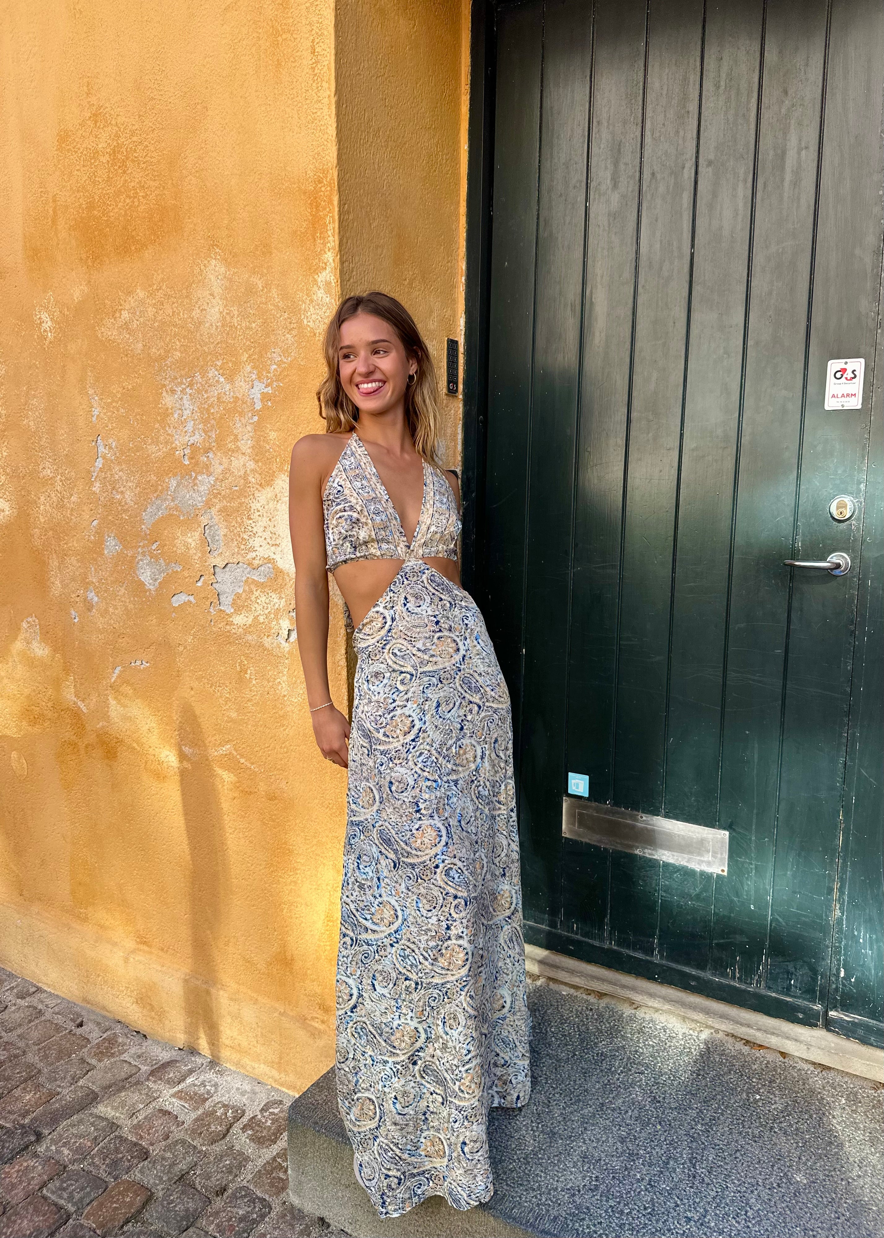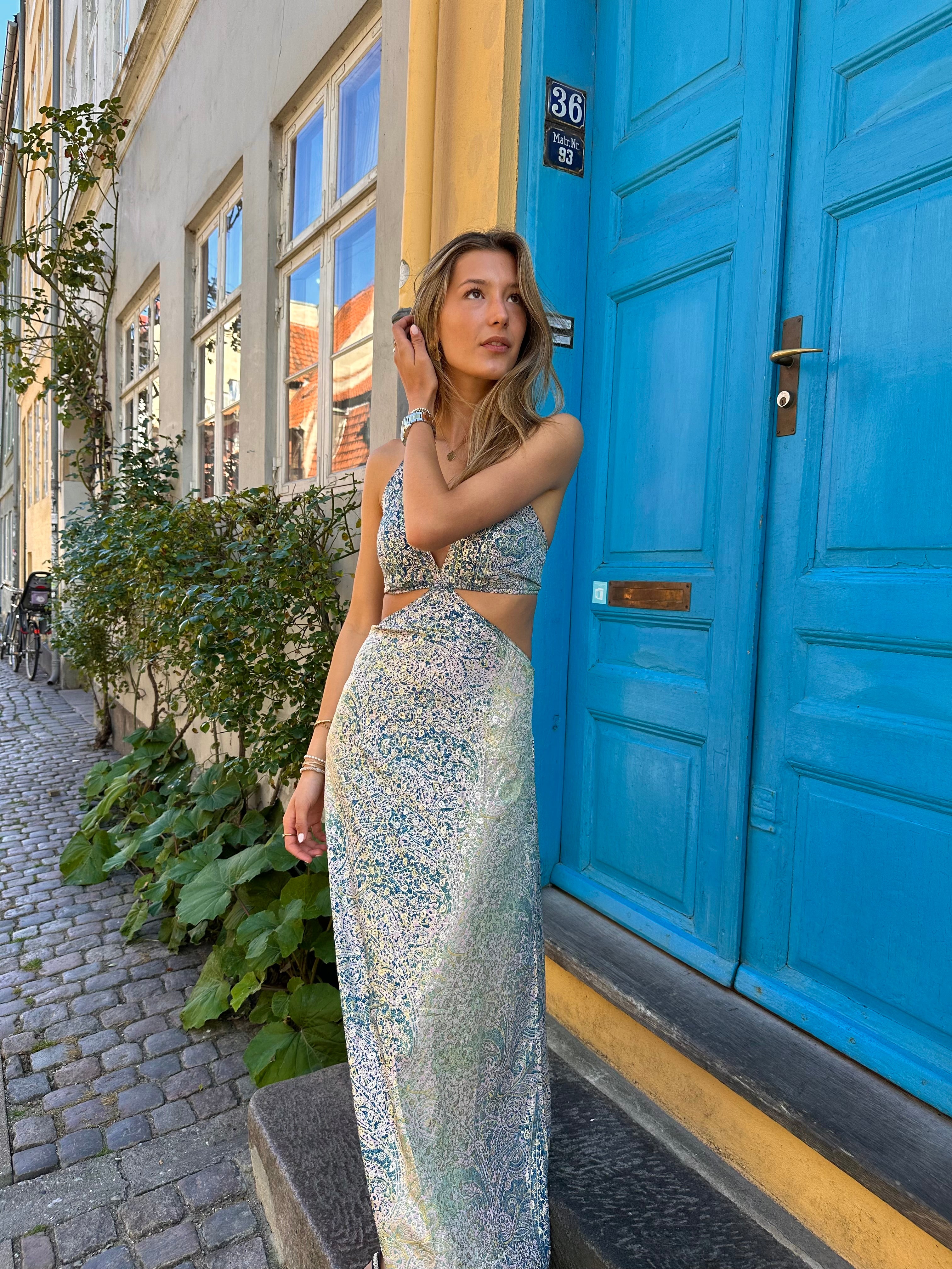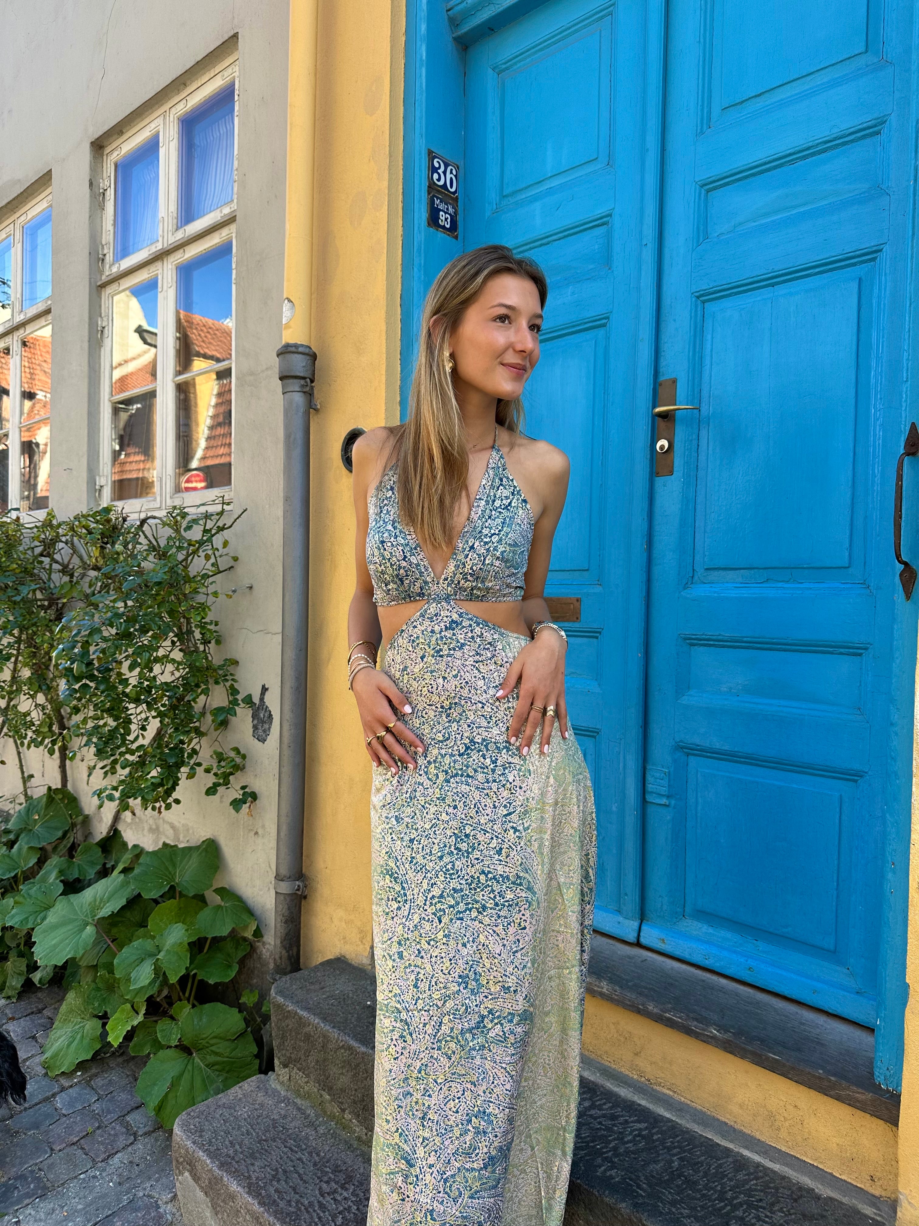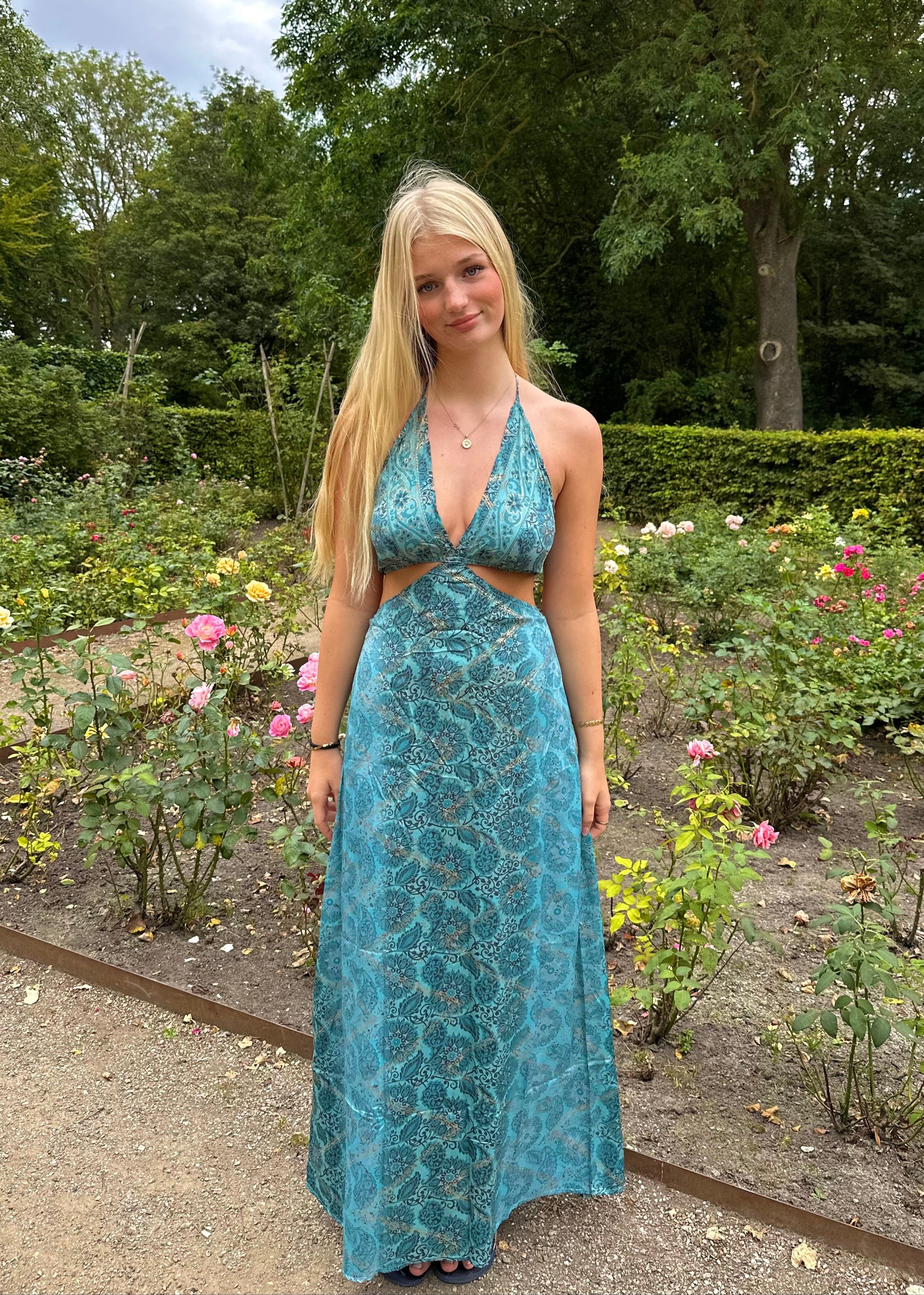 Mid-Cut Dress Blue Ivy (with gold foil) - Light Blue