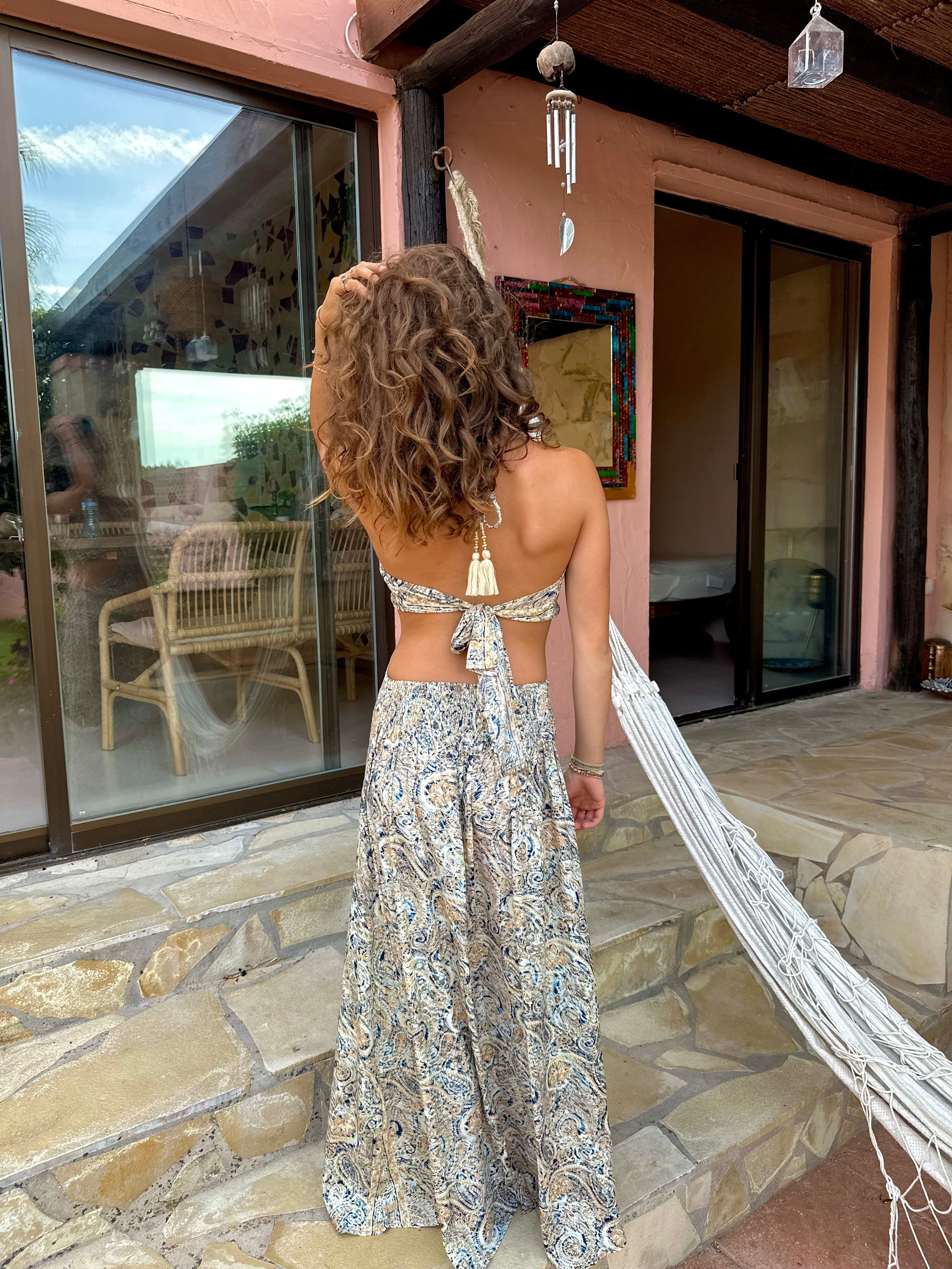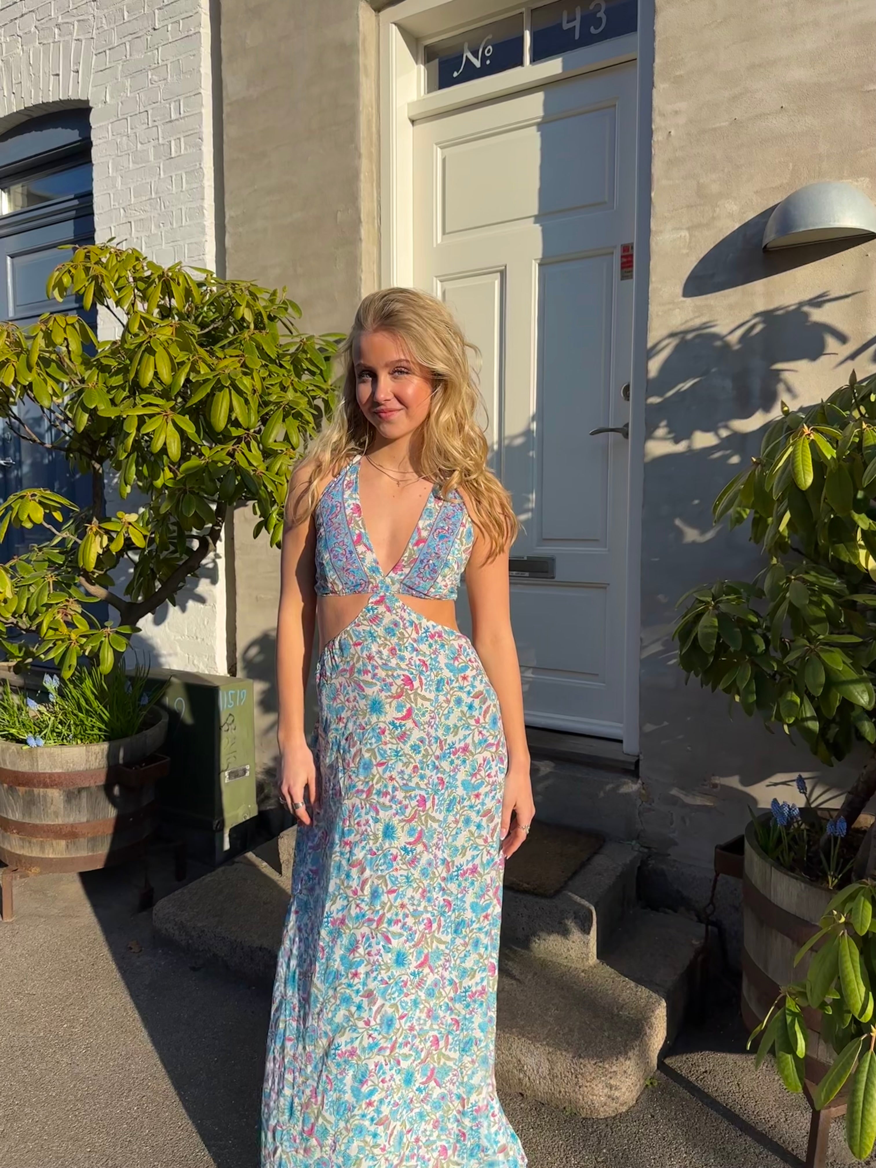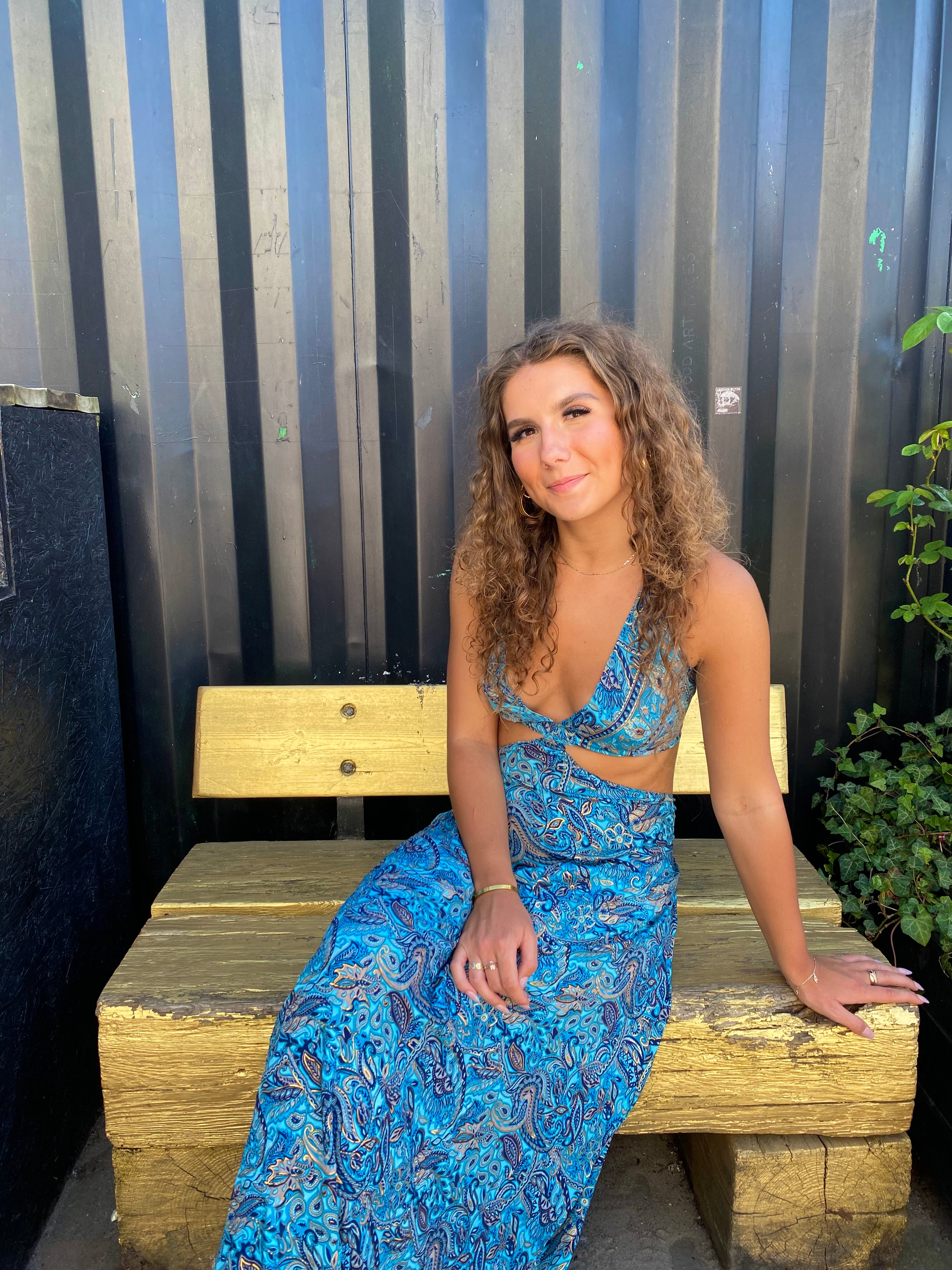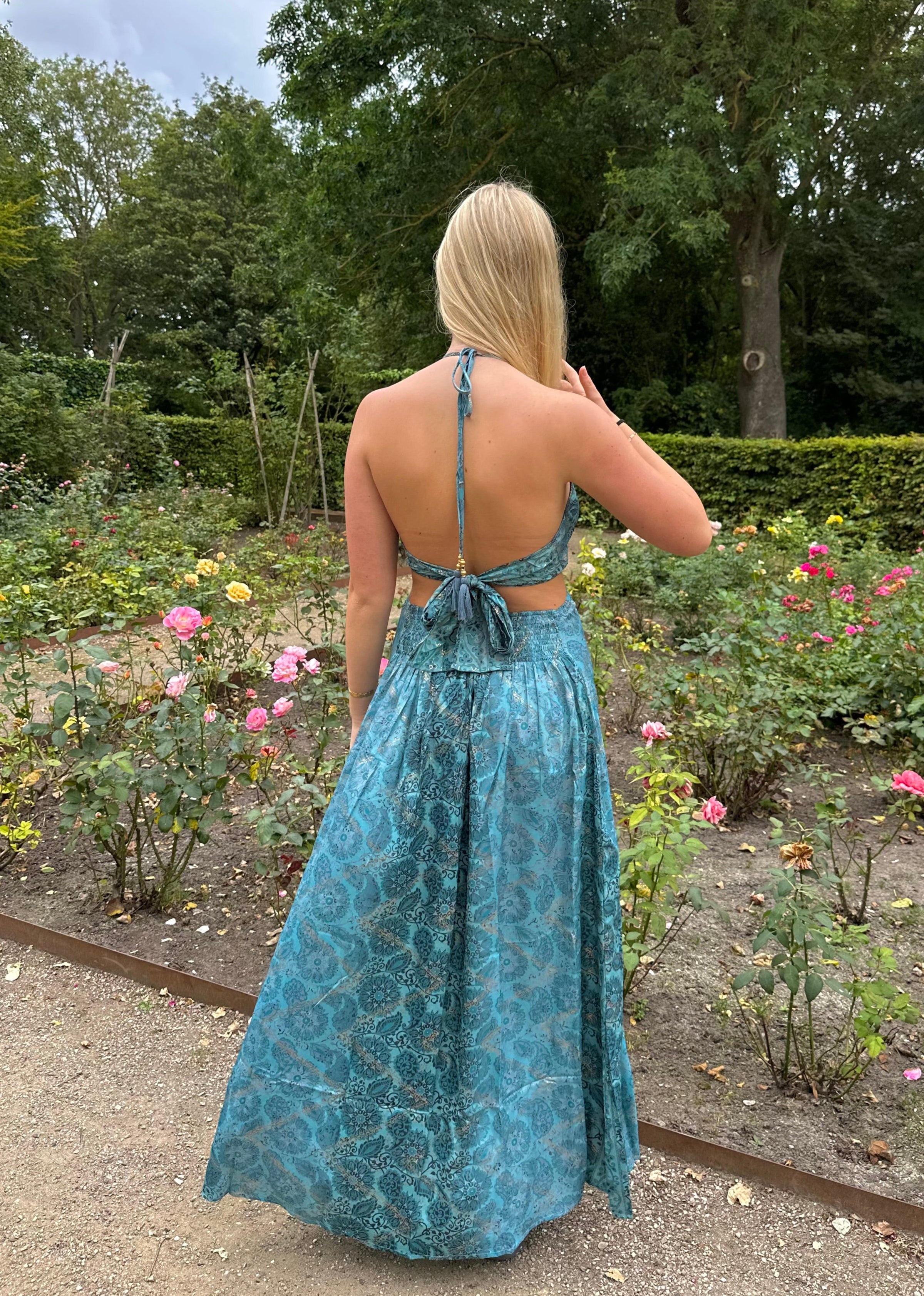 Mid-Cut Dress Blue Ivy (with gold foil) - Light Blue