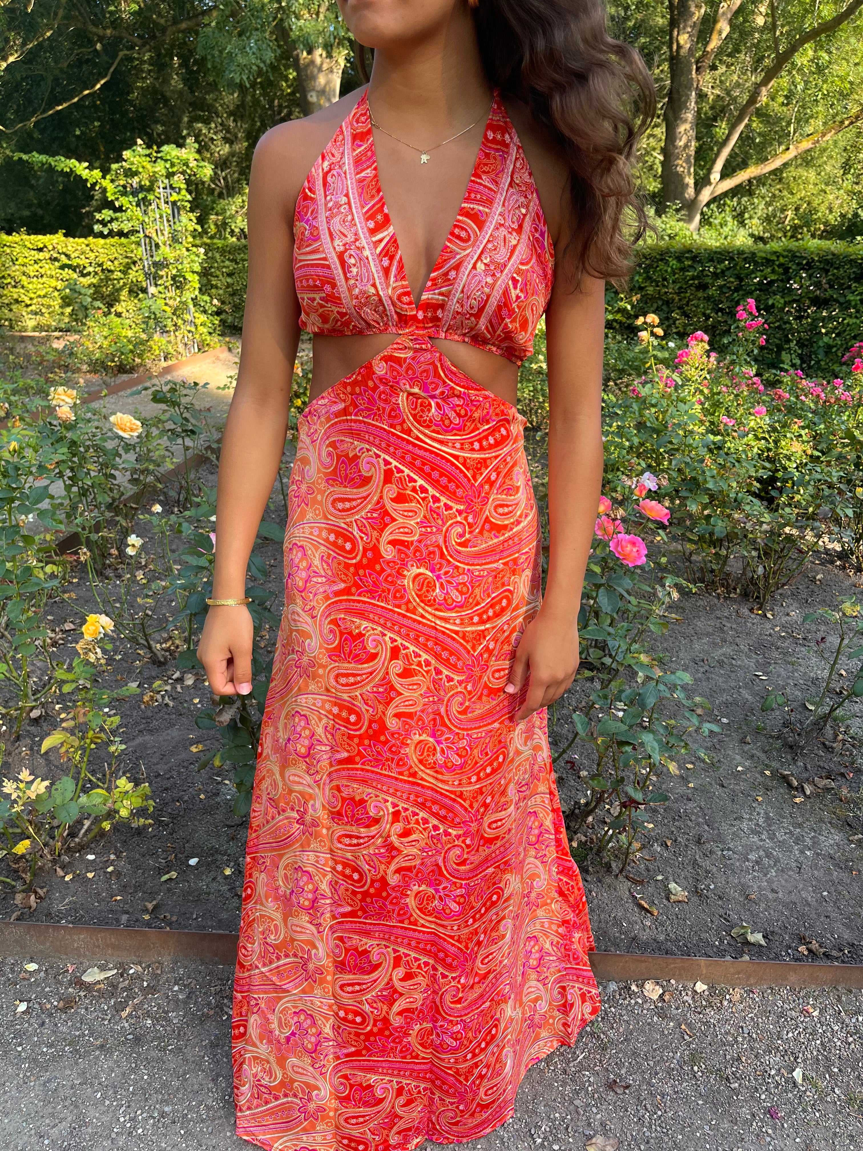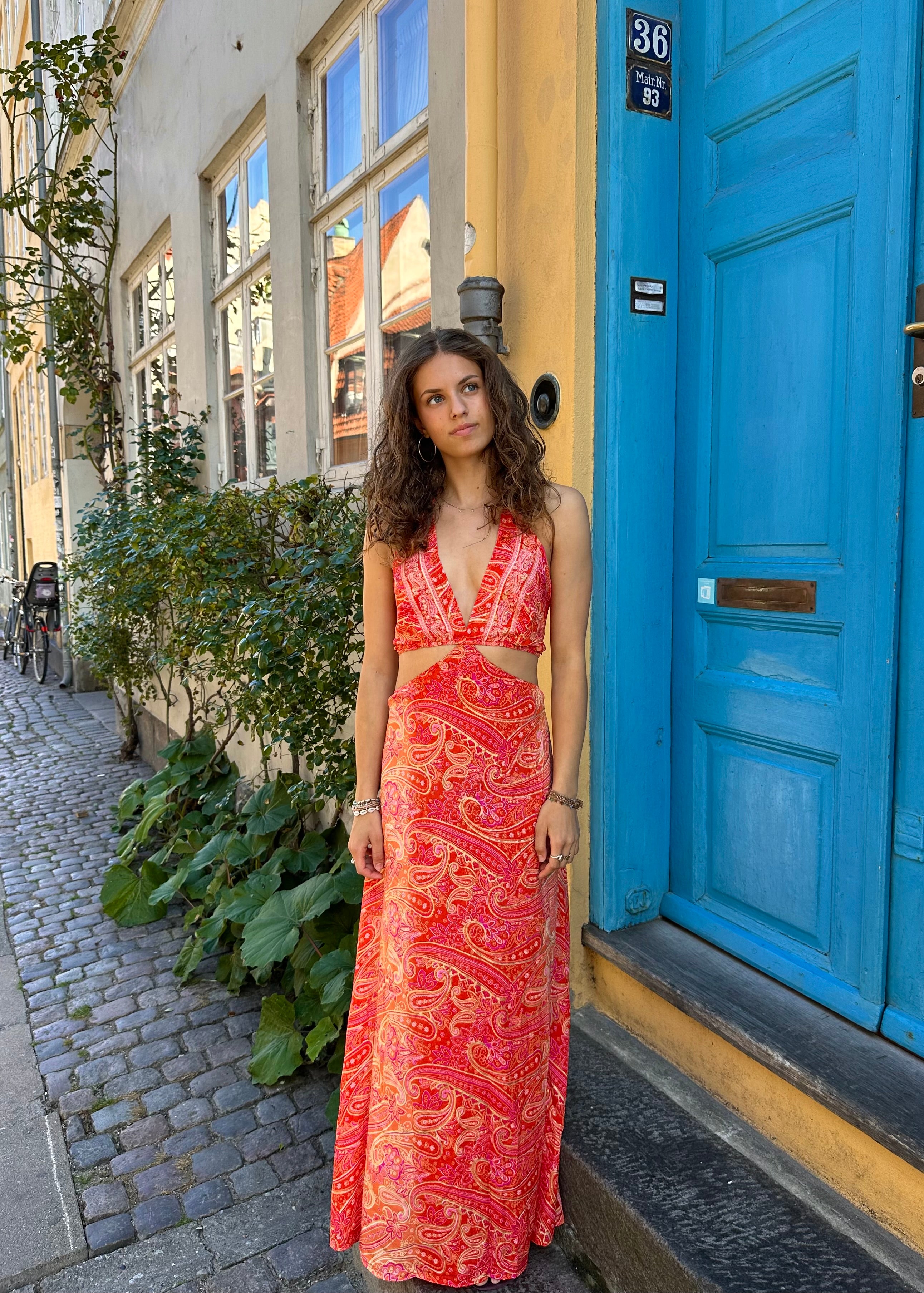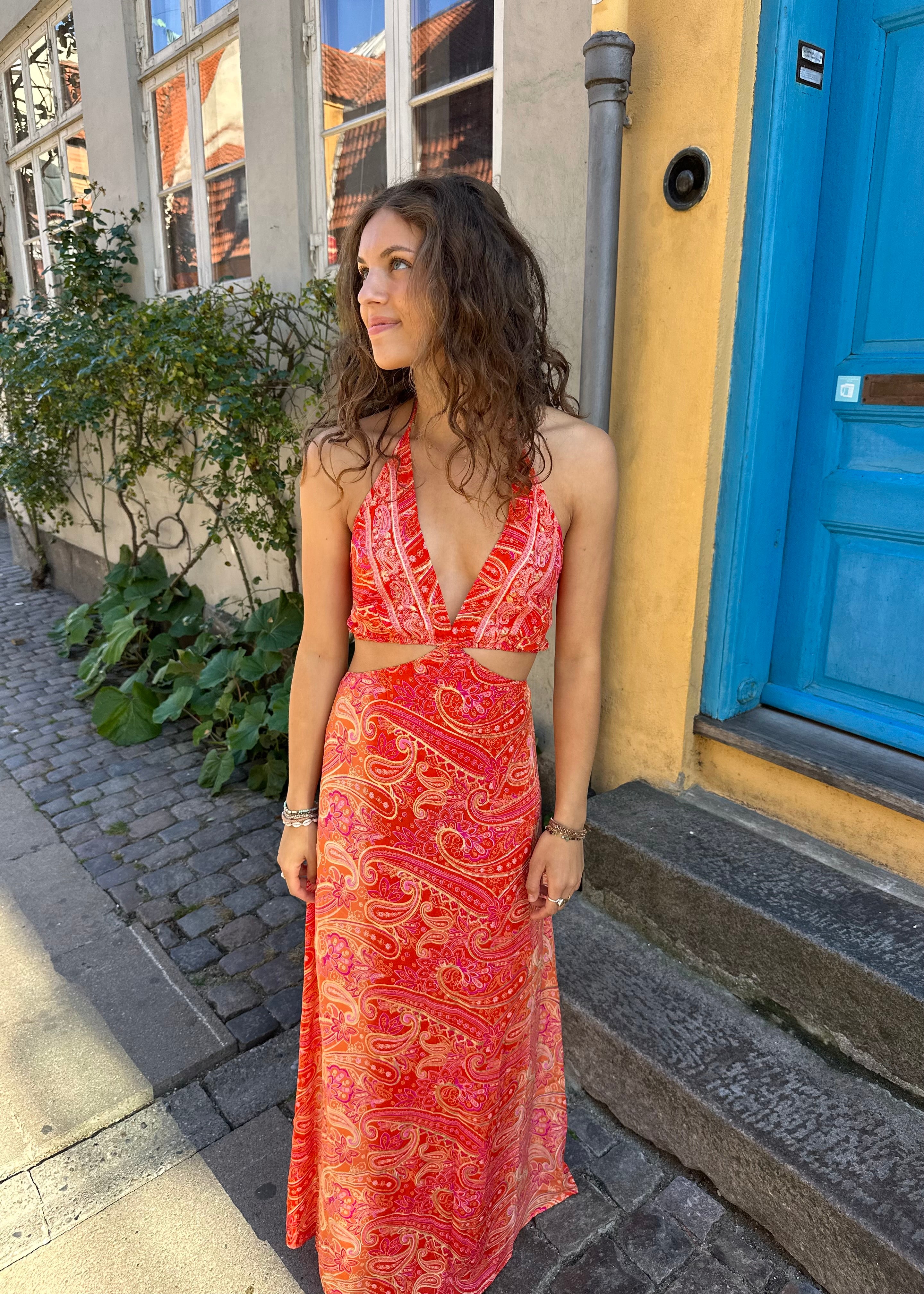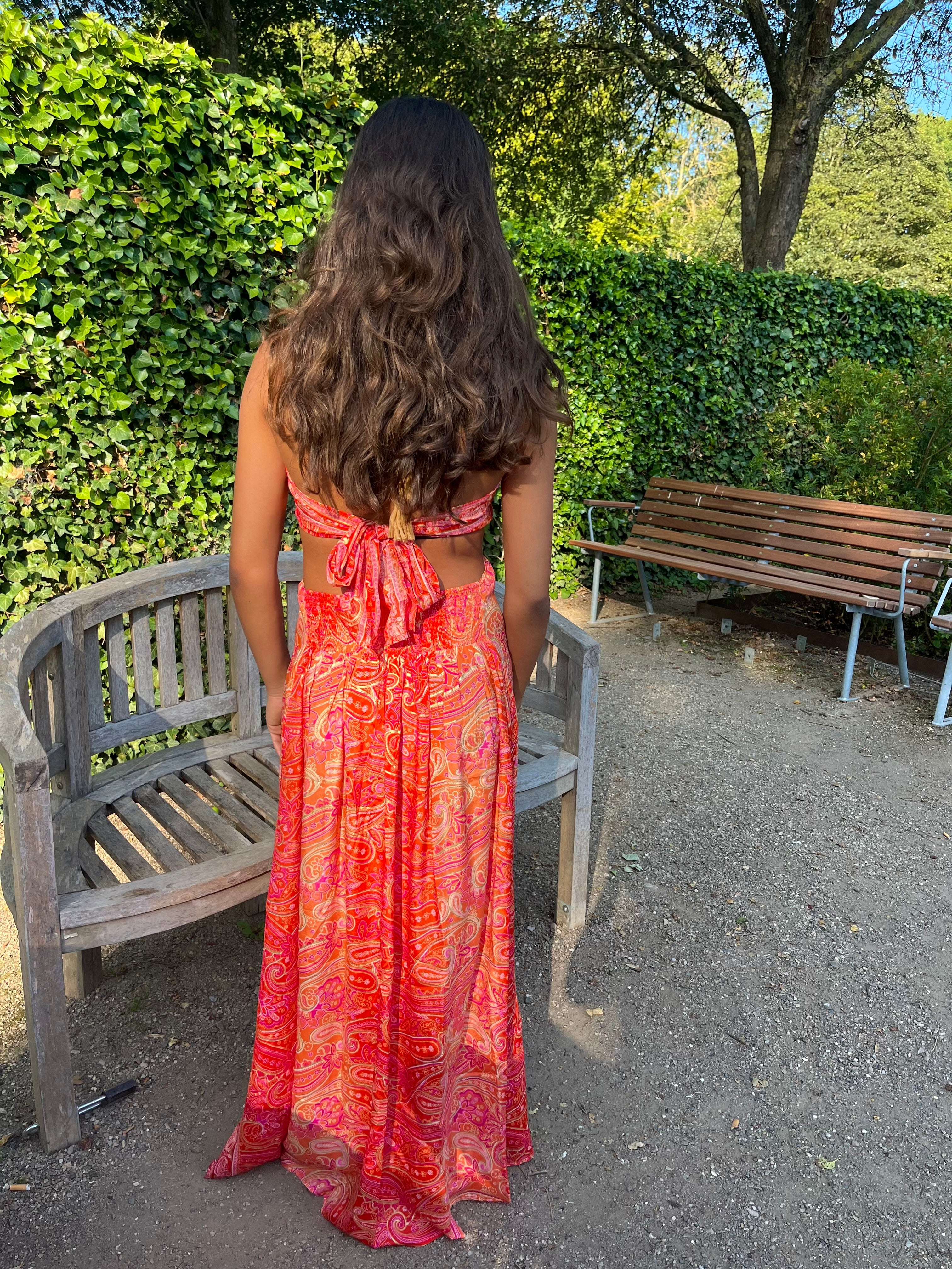 Mid-Cut Sari Dress - (with gold foil)- Orange
