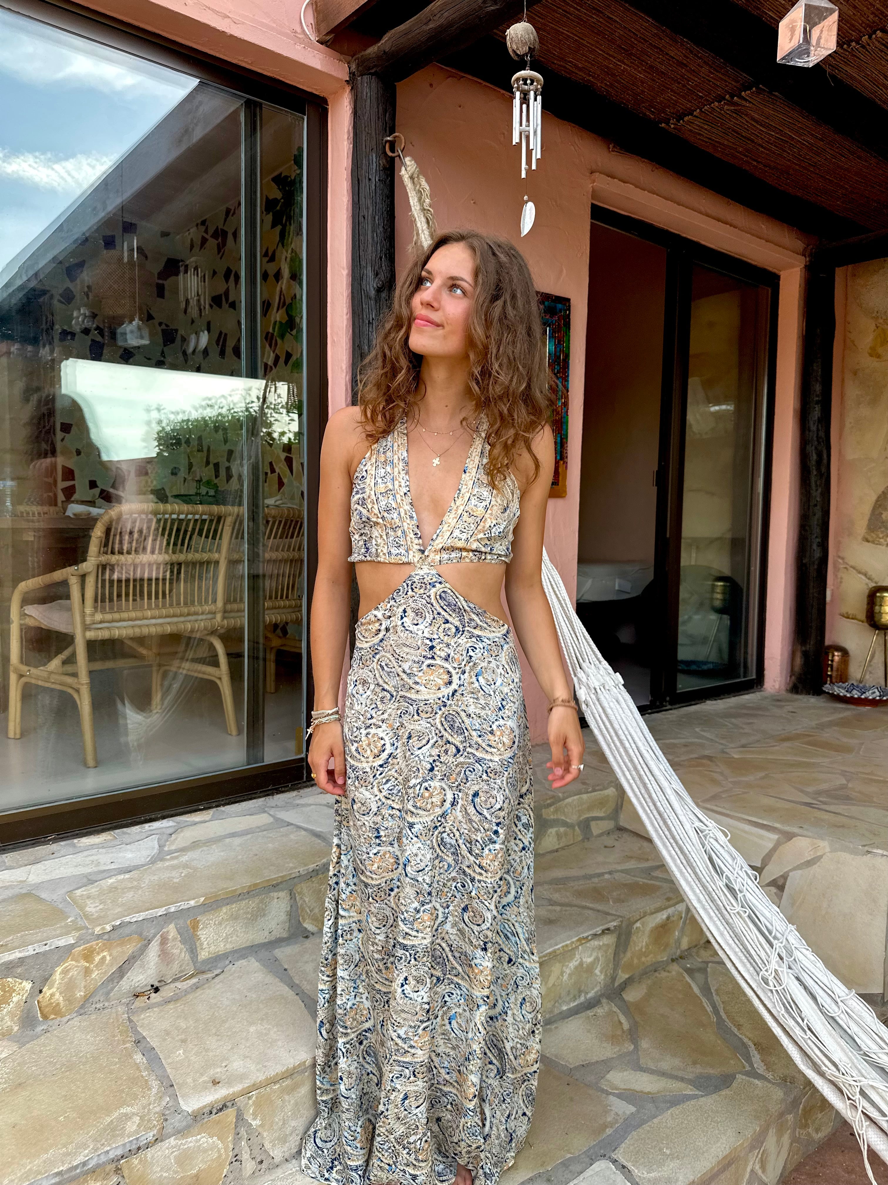 Mid-Cut Dress Yara (with gold foil) - Goldy + Yellow