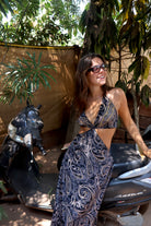 The Mid-Cut dress is a patterned one-size garment that features an open-back design and adjustable strings for a perfect fit. This onesize dress is suitable for everyone between sizes 34-40, making it an ideal choice for women of different body types. The dress is crafted from a soft blend of 100% viscose, which lends it a luxurious texture and an elegant drape. The Mid-Cut dress is the perfect choice for any occasion, whether it's a casual outing or a formal event.