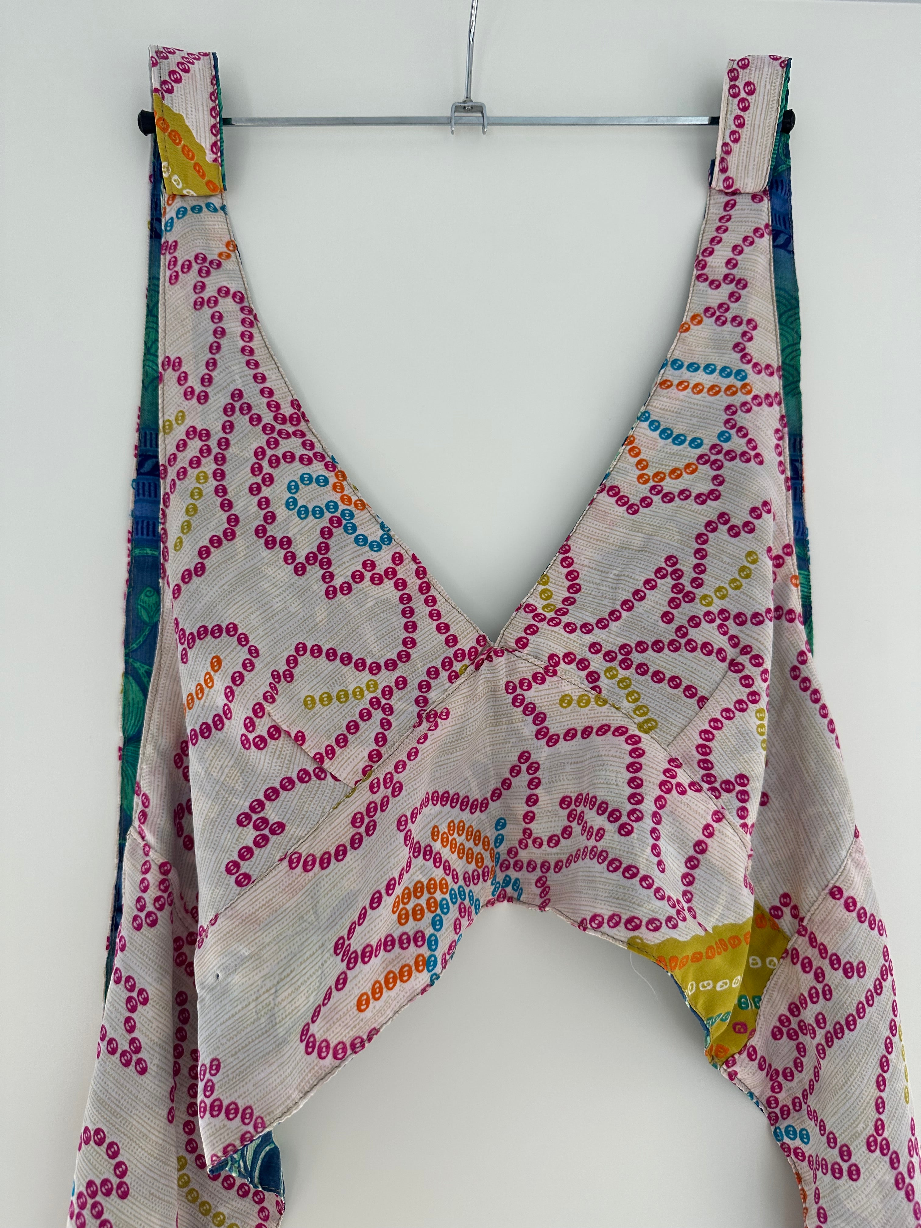 This Vintage Silk Reversible Top is the perfect blend of style and versatility. The one-size-fits-all design makes it a versatile piece that can be worn by anyone, while the reversible design allows for two distinct looks in one. Made of high-quality vintage silk, this top is soft, smooth, and comfortable against the skin.