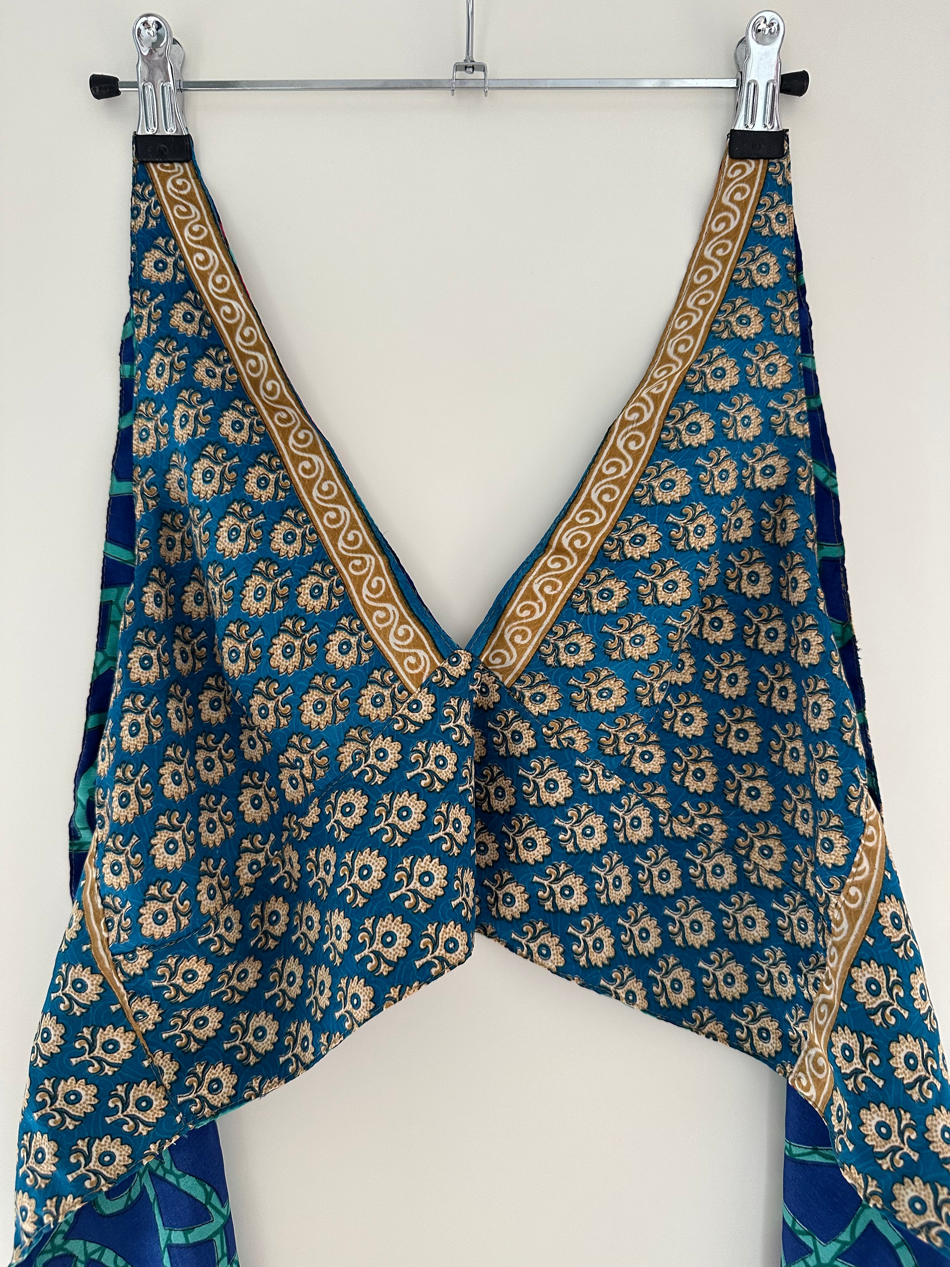 This Vintage Silk Reversible Top is the perfect blend of style and versatility. The one-size-fits-all design makes it a versatile piece that can be worn by anyone, while the reversible design allows for two distinct looks in one. Made of high-quality vintage silk, this top is soft, smooth, and comfortable against the skin.