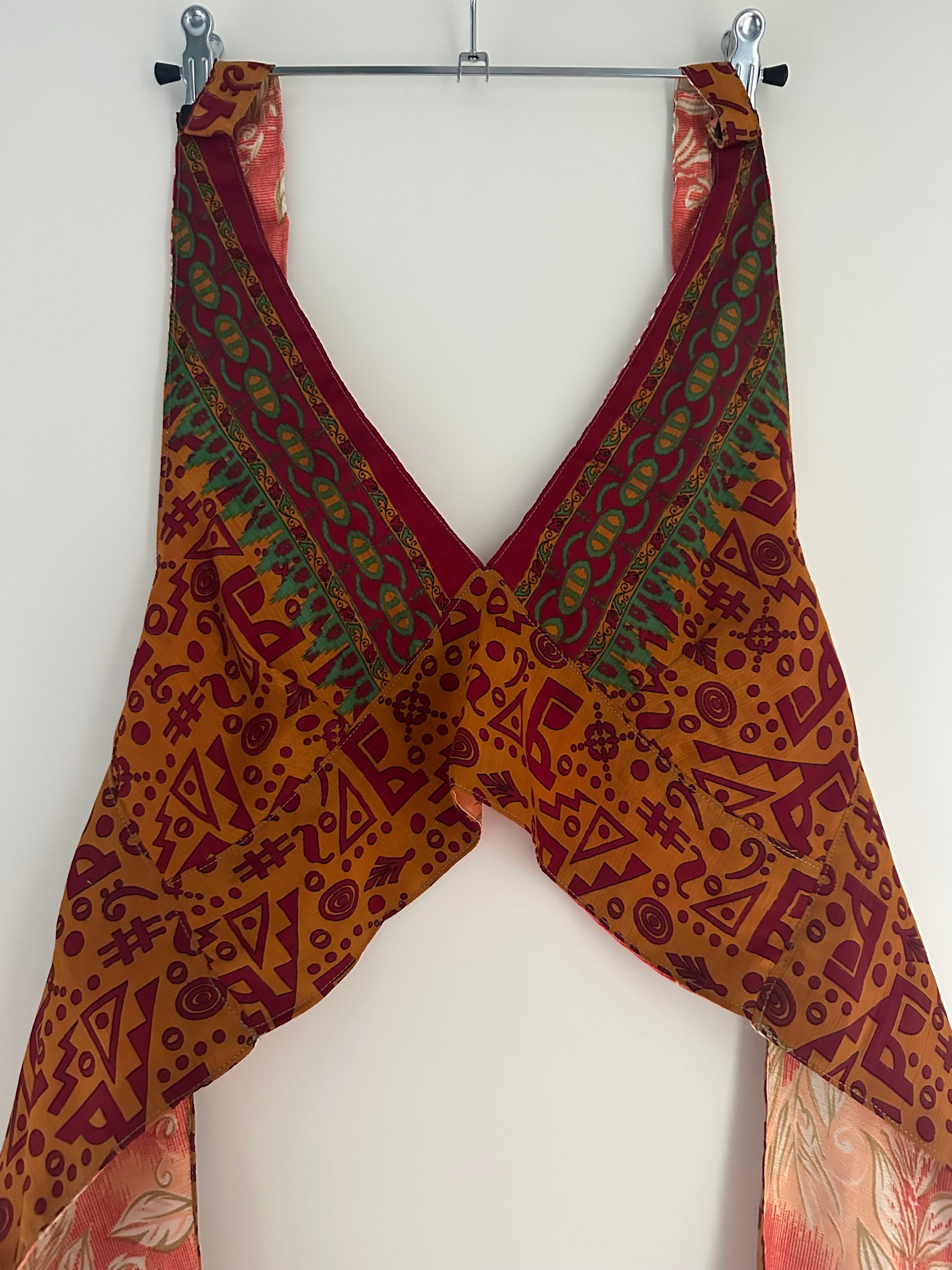 This Vintage Silk Reversible Top is the perfect blend of style and versatility. The one-size-fits-all design makes it a versatile piece that can be worn by anyone, while the reversible design allows for two distinct looks in one. Made of high-quality vint