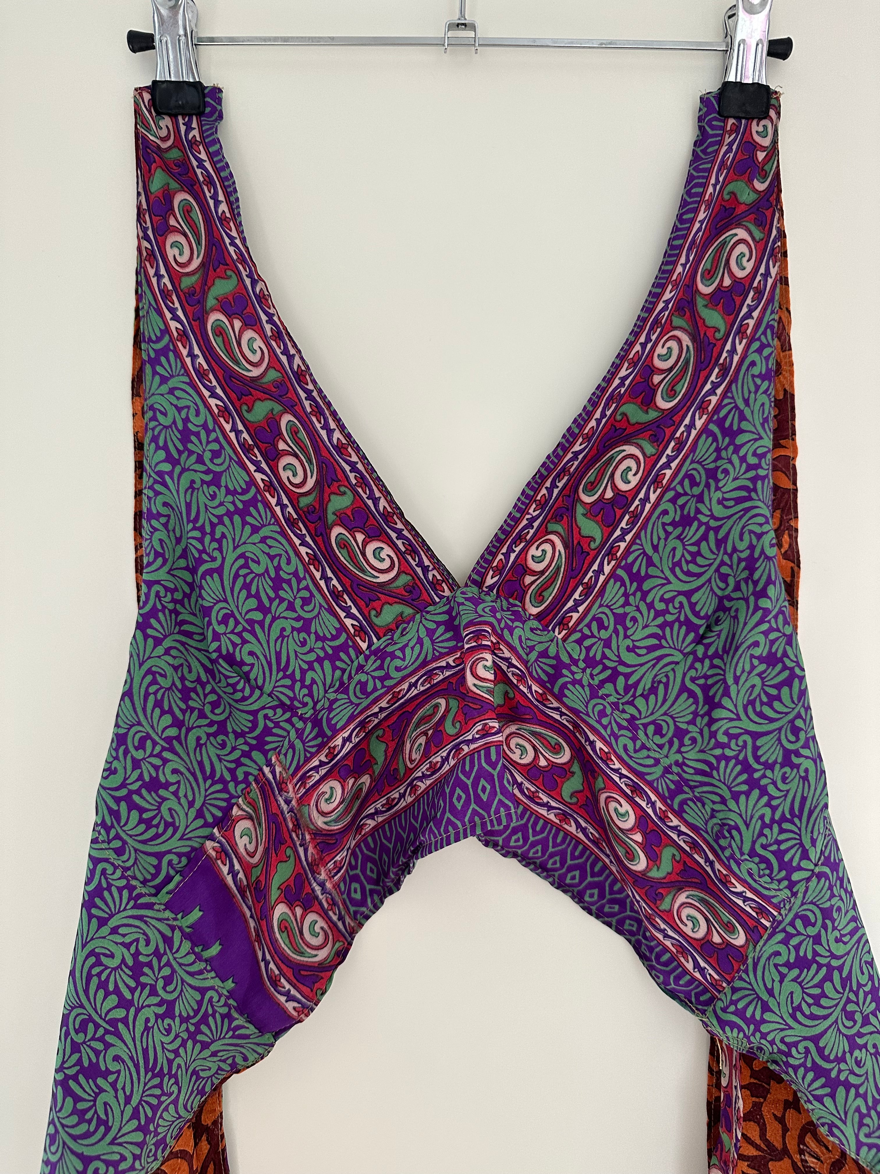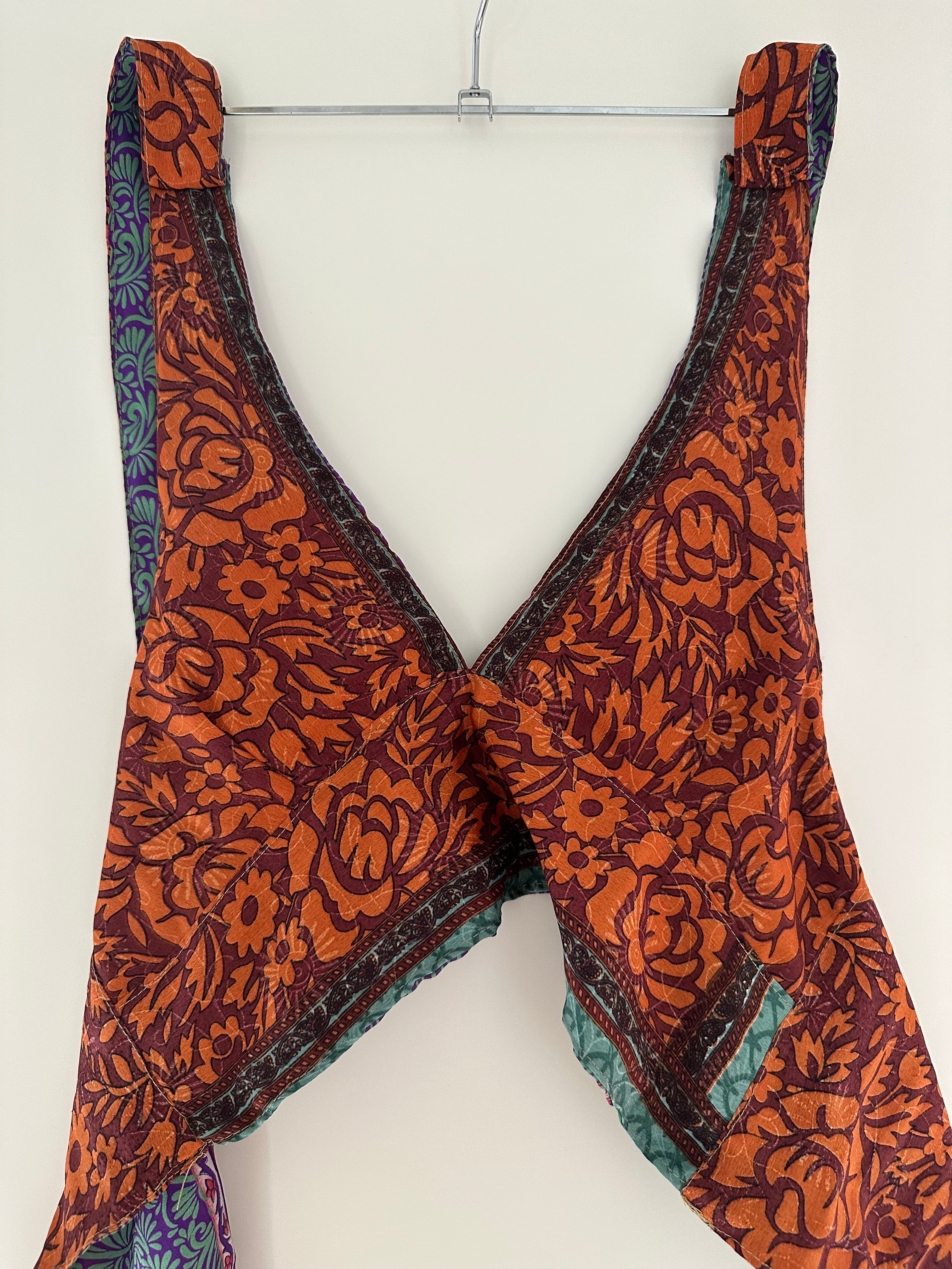 This Vintage Silk Reversible Top is the perfect blend of style and versatility. The one-size-fits-all design makes it a versatile piece that can be worn by anyone, while the reversible design allows for two distinct looks in one. Made of high-quality vintage silk, this top is soft, smooth, and comfortable against the skin.