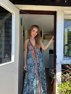 The Long Gold Hawaii dress, is super comfortable and adjustable, it has an open back and is attached with a few strings around the neck and back. The material is made of 70% silk and 30% viscose making it super soft and with a beautiful fall.
