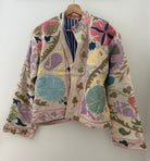 This handcrafted Suzani embroidery jacket is the epitome of wearable art, celebrating tradition while embracing contemporary style. It's more than a garment; it's a connection to history, a nod to artistry, and an expression of your individuality. Each intricate stitch of the Suzani embroidery tells a story, reflecting the rich heritage of skilled artisans who pour their heart and soul into every piece. The vibrant and intricate patterns dance across the fabric, evoking a sense of elegance and cultural depth that sets this jacket apart.