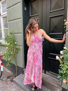 Introducing our adjustable Thai Dress, designed to fit sizes 34-42 EU with customizable ties at the neck and under the bust. Crafted from 100% viscose, it offers a soft feel and elegant drape. Ideal for fancy occasions or summer days, this dress effortlessly combines style and comfort. Standing at 168cm, our model showcases its flattering silhouette. Elevate your wardrobe with this versatile piece.