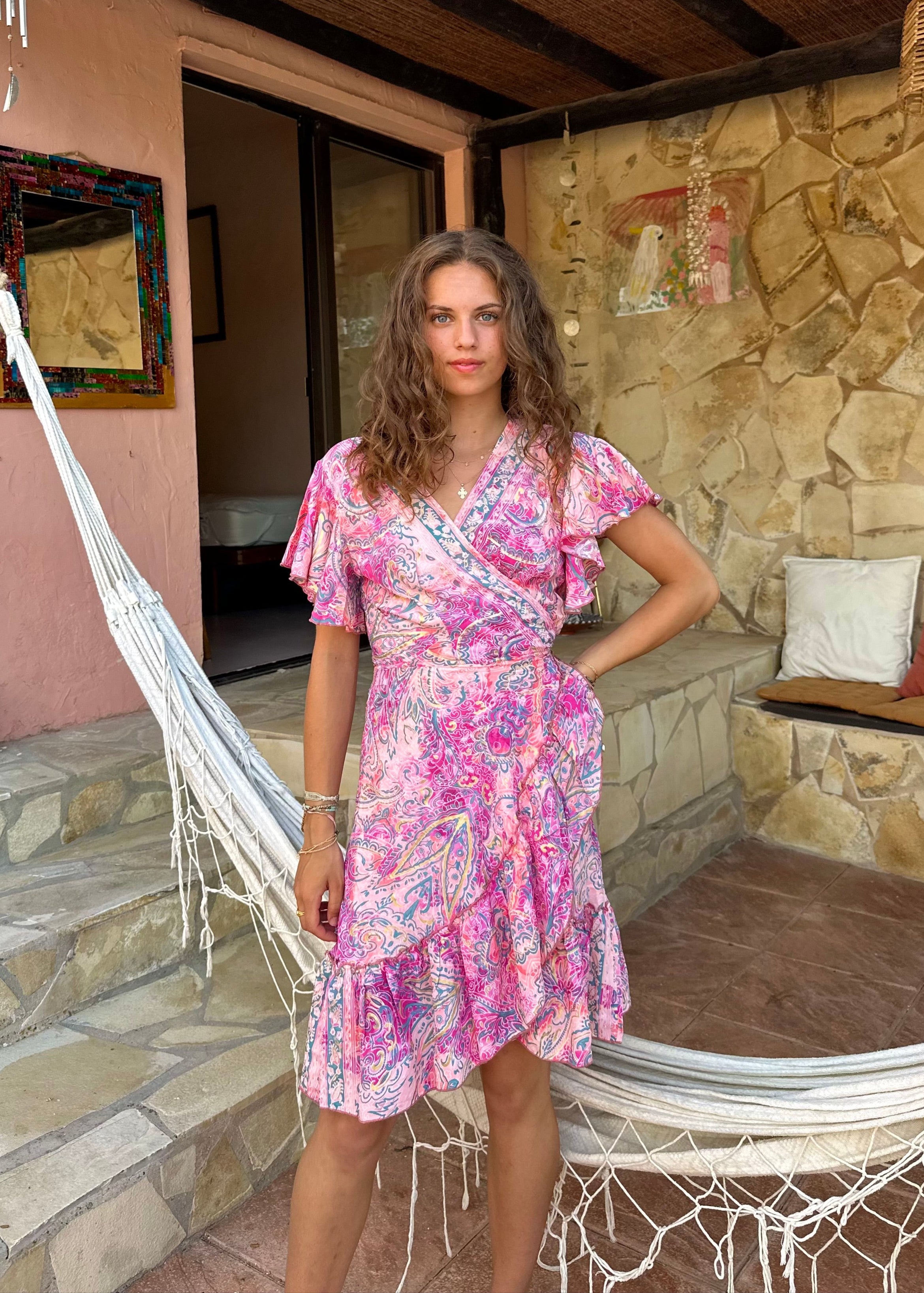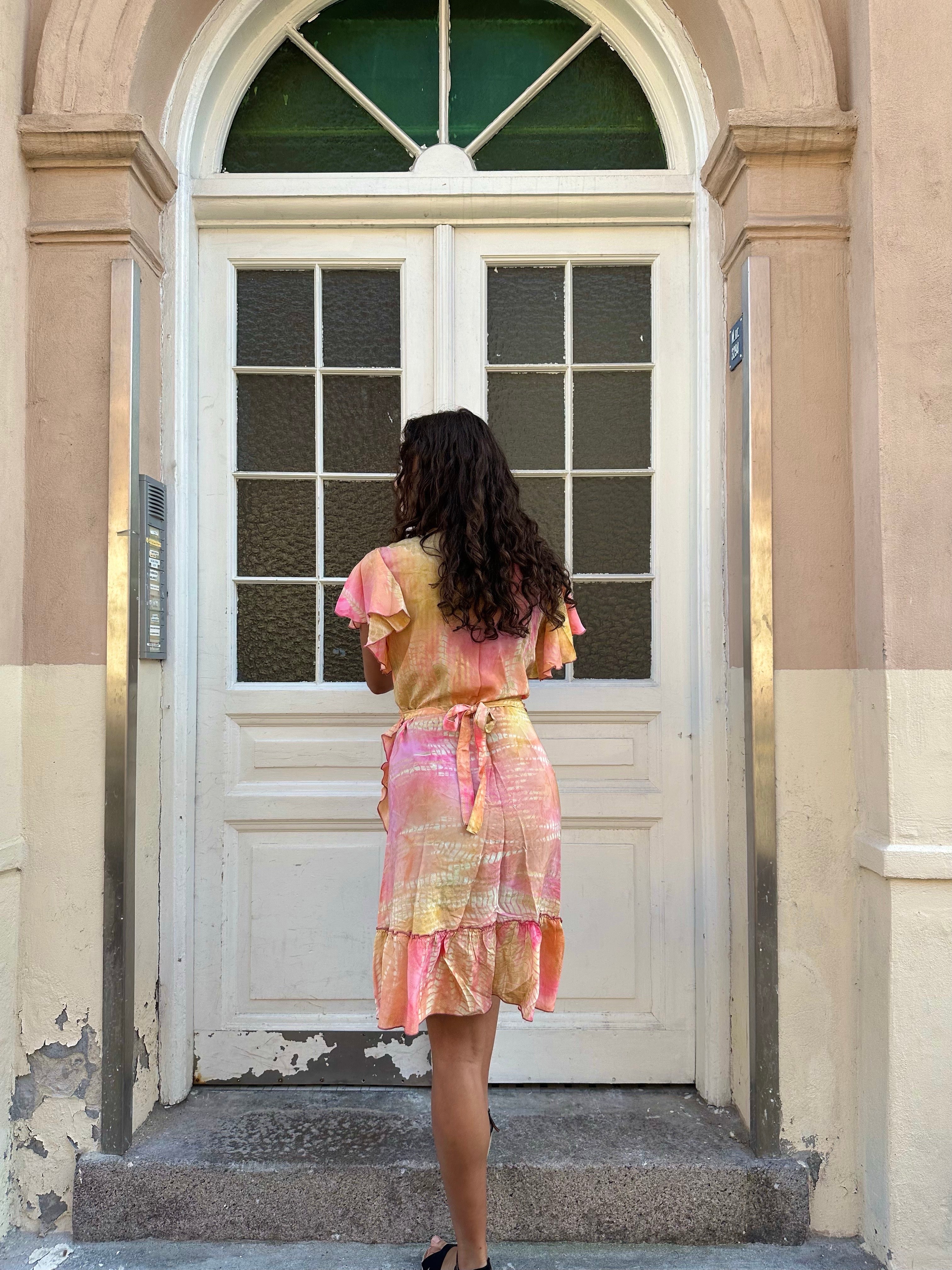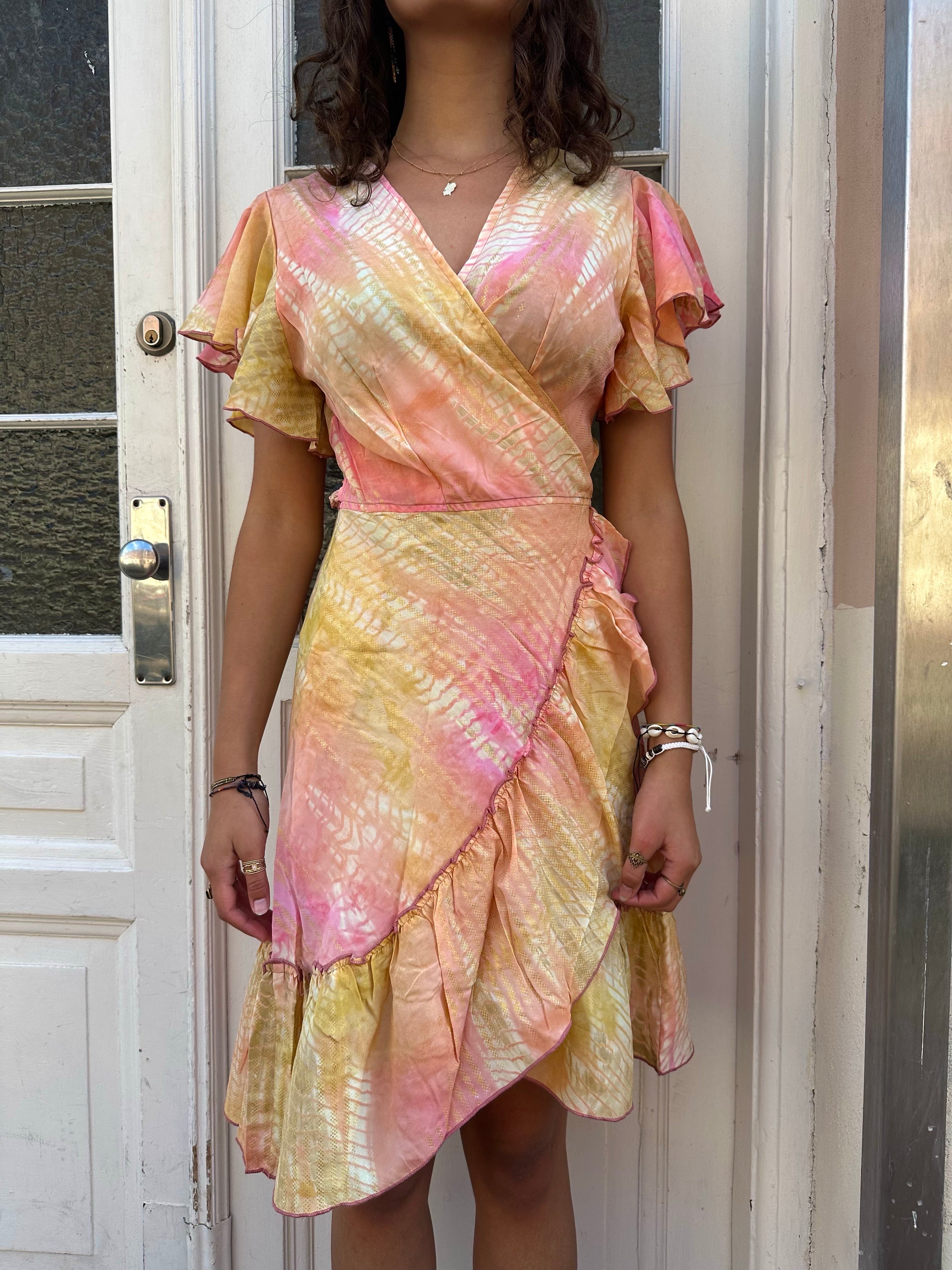 Short Wrap Dress Rosa (Gold Foil) - Pink / Yellow