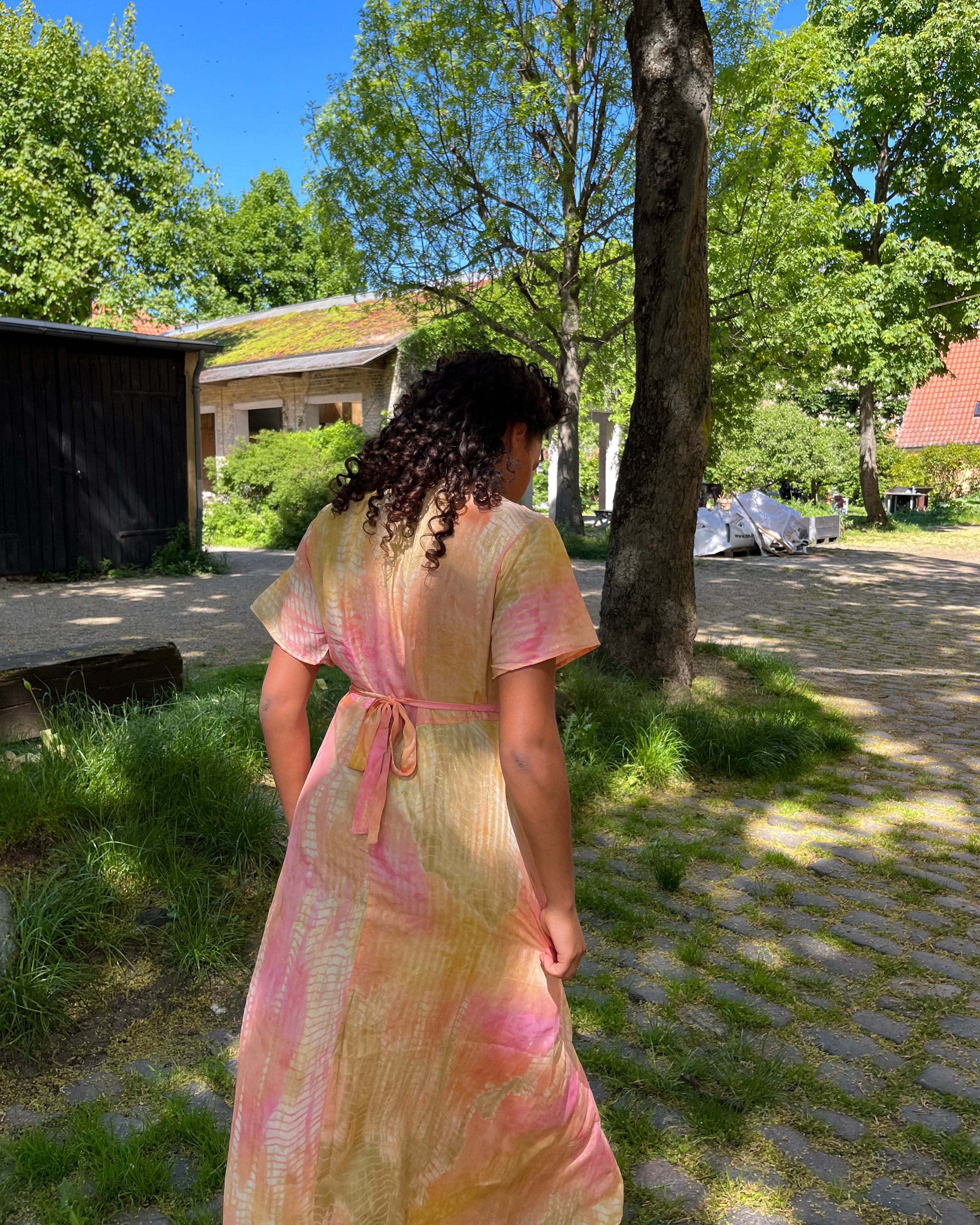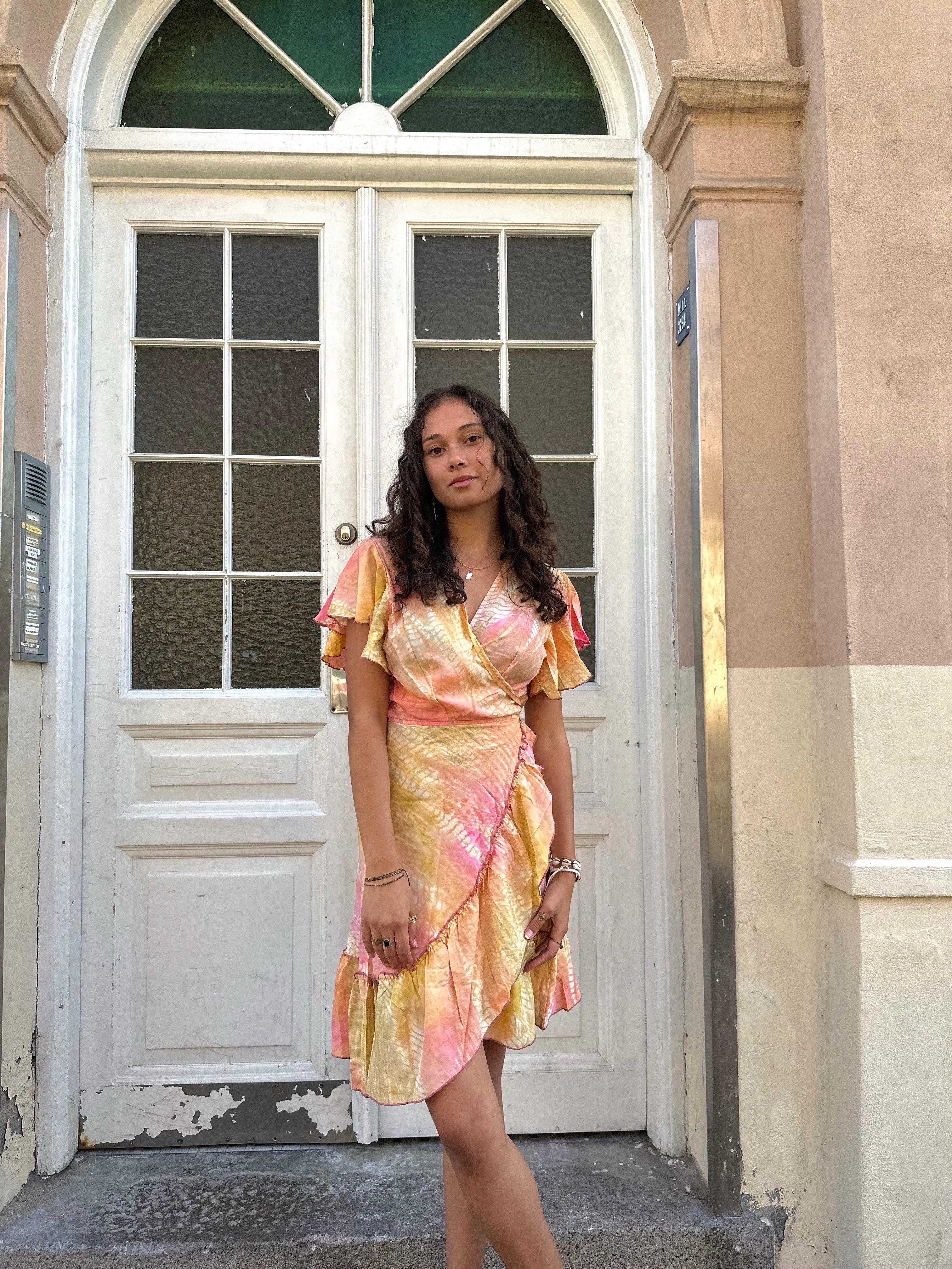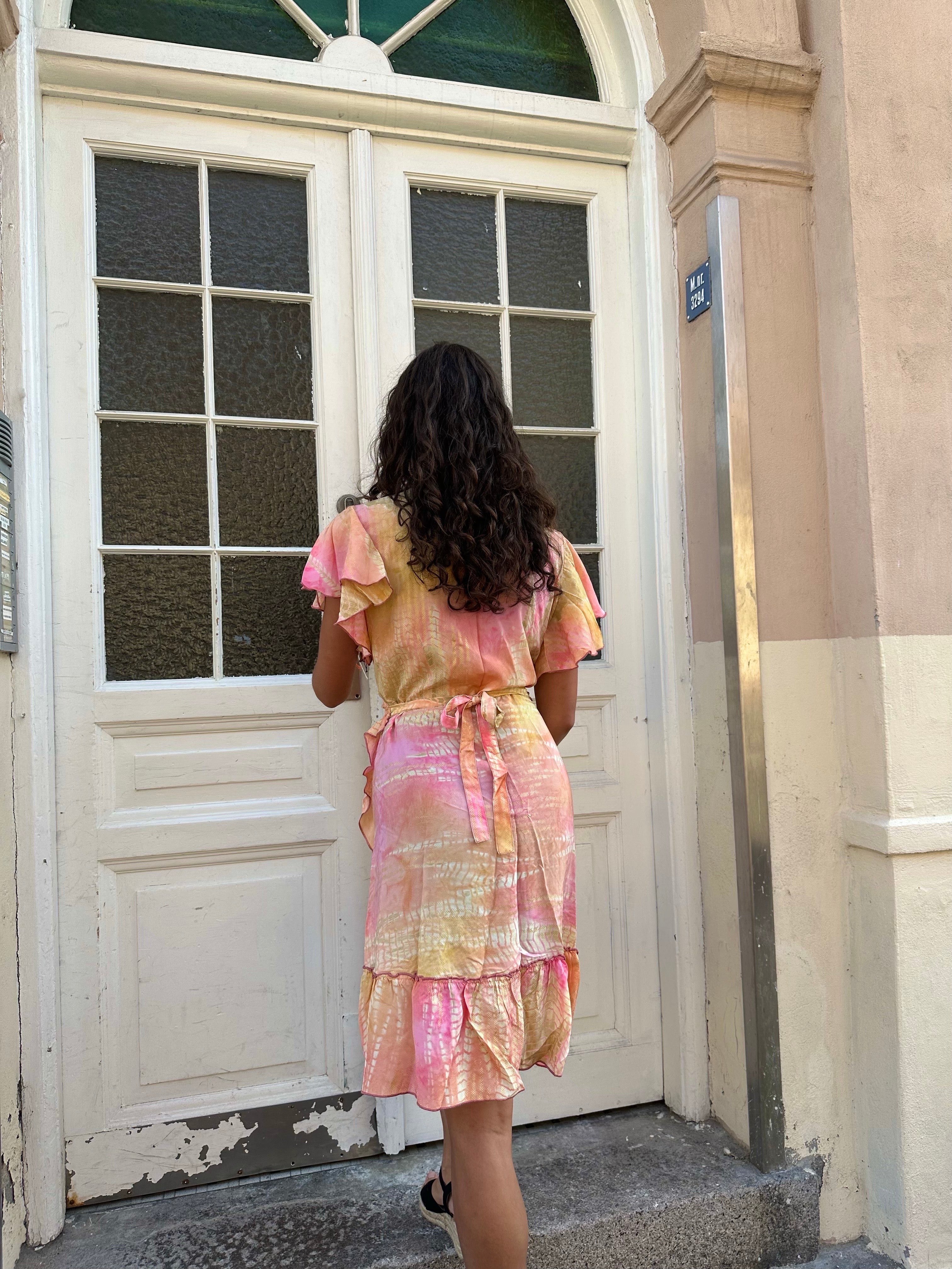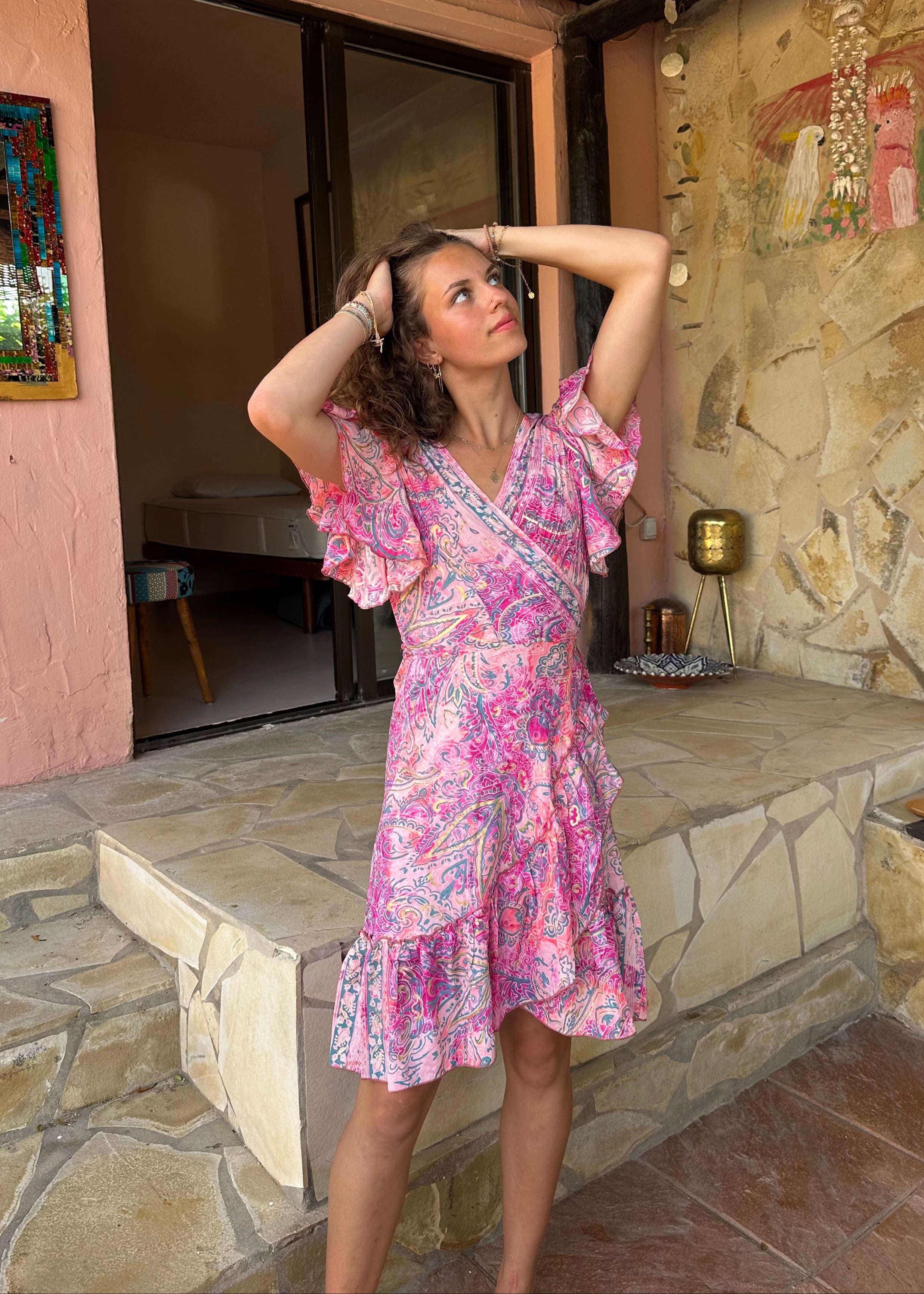 Short Wrap Dress Rosa (Gold Foil) - Pink / Yellow