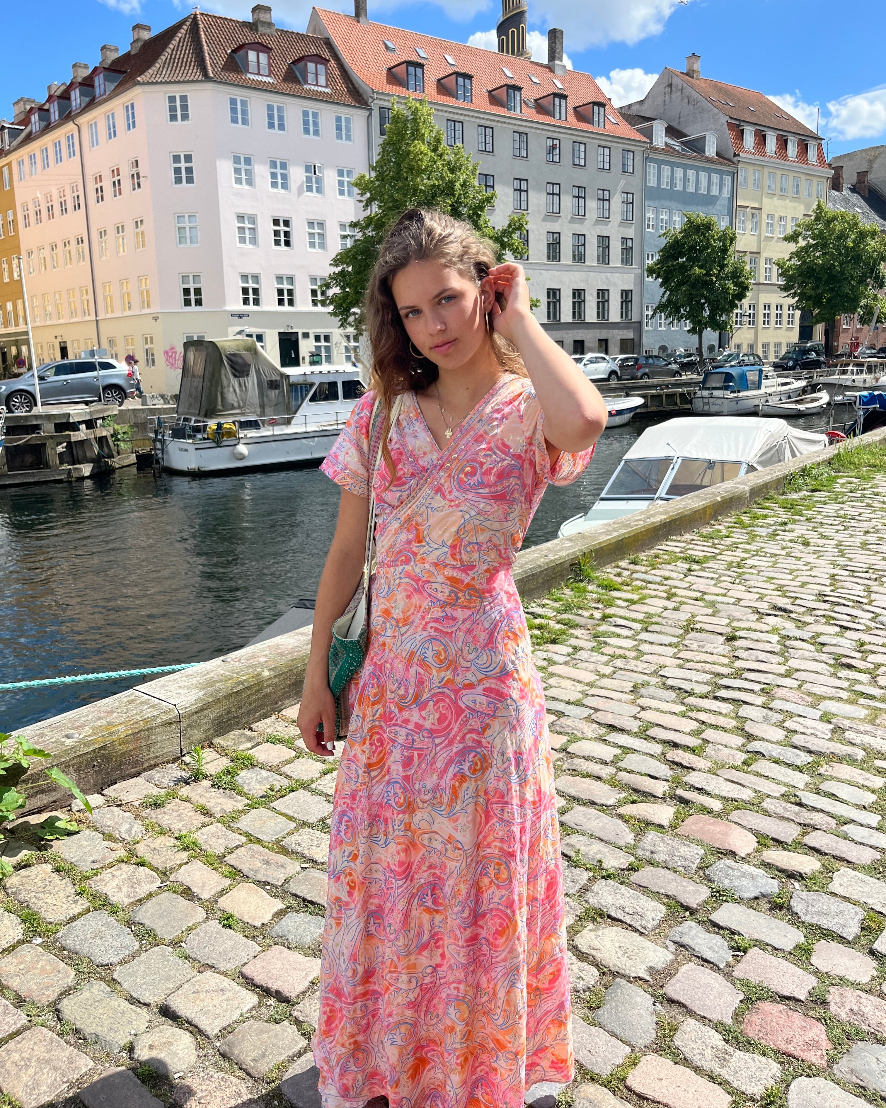 Long Wrap Emelia Dress (Gold Foil) - Pink + Orange