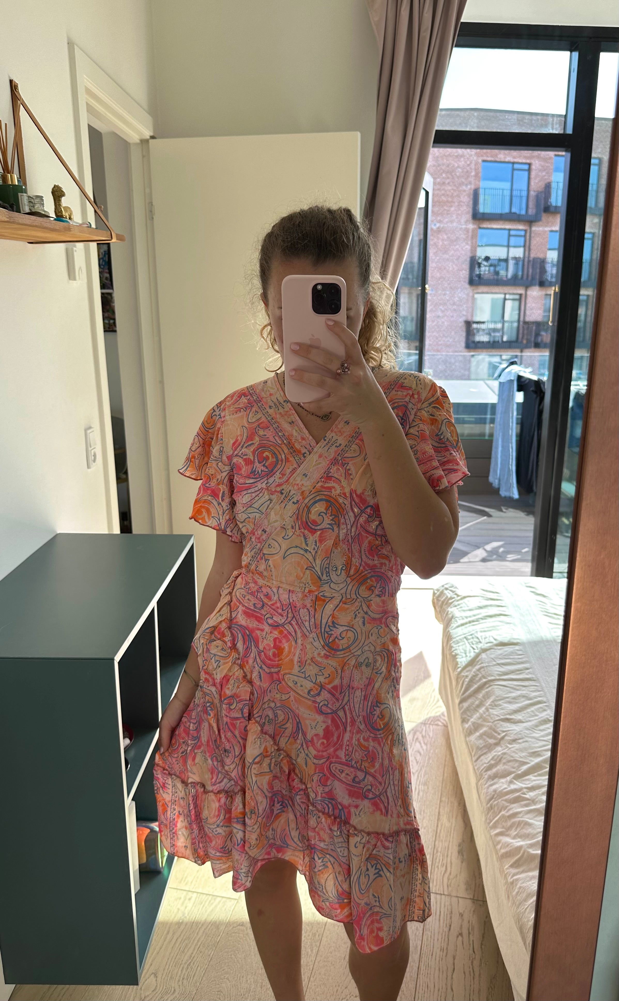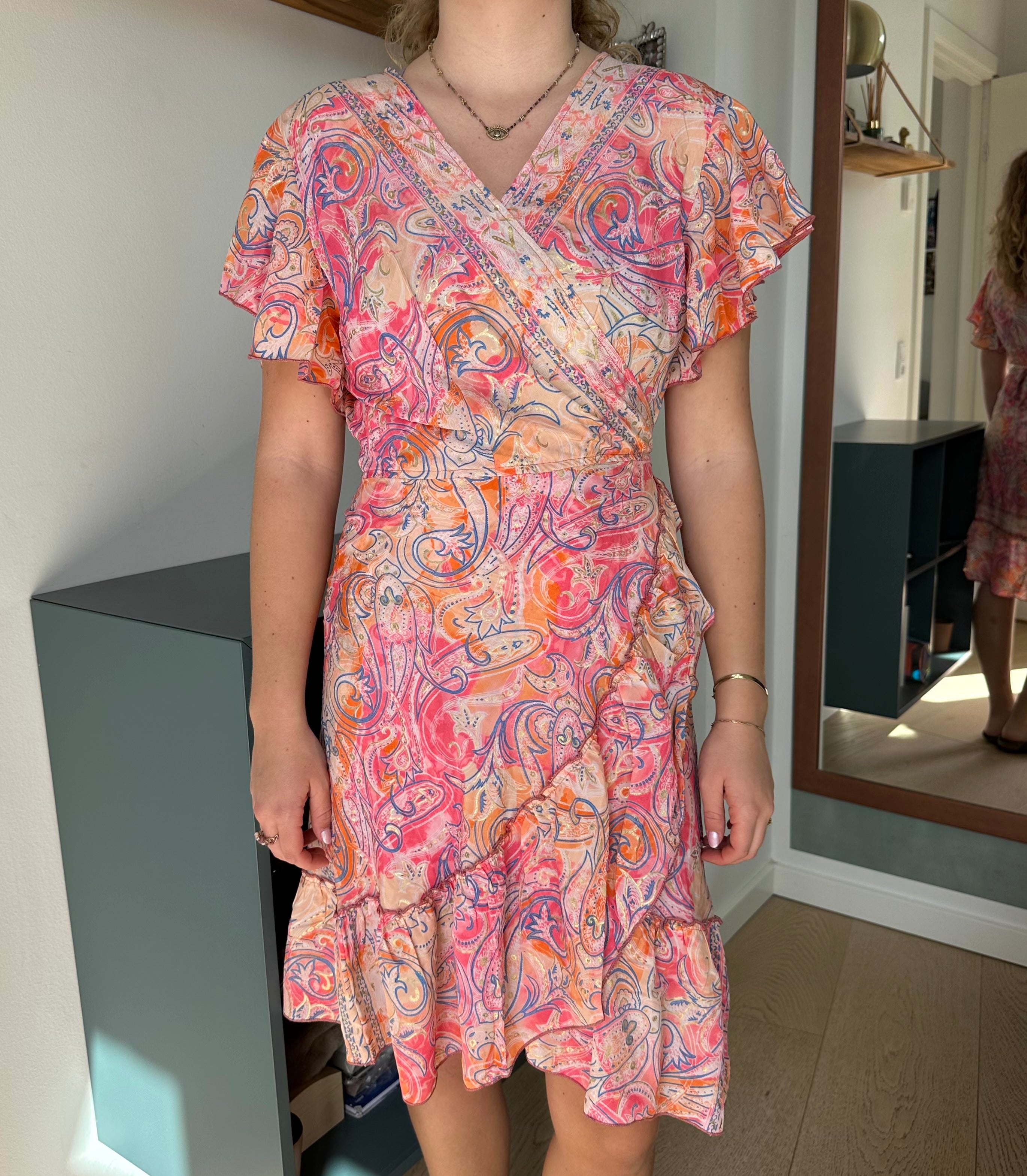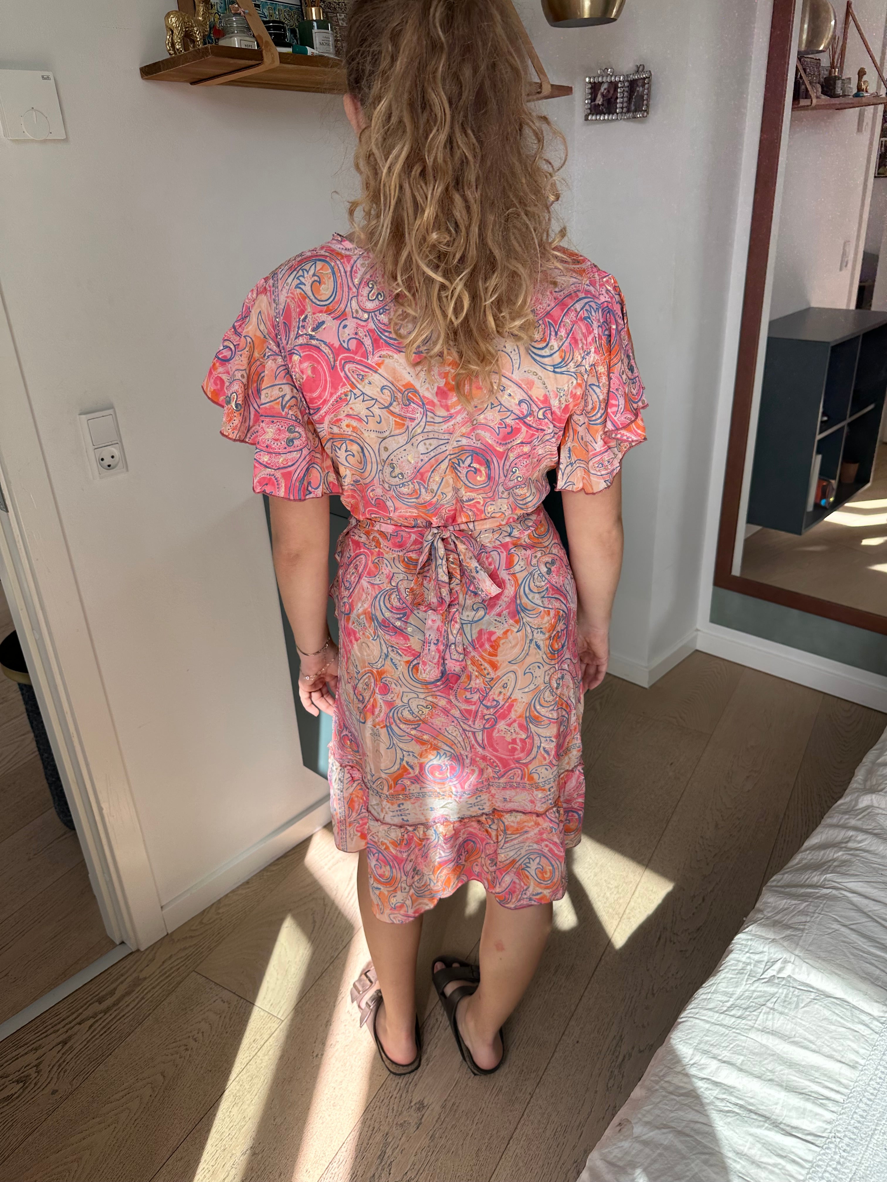 Short Wrap Dress (Gold Foil) - Pink + Orange