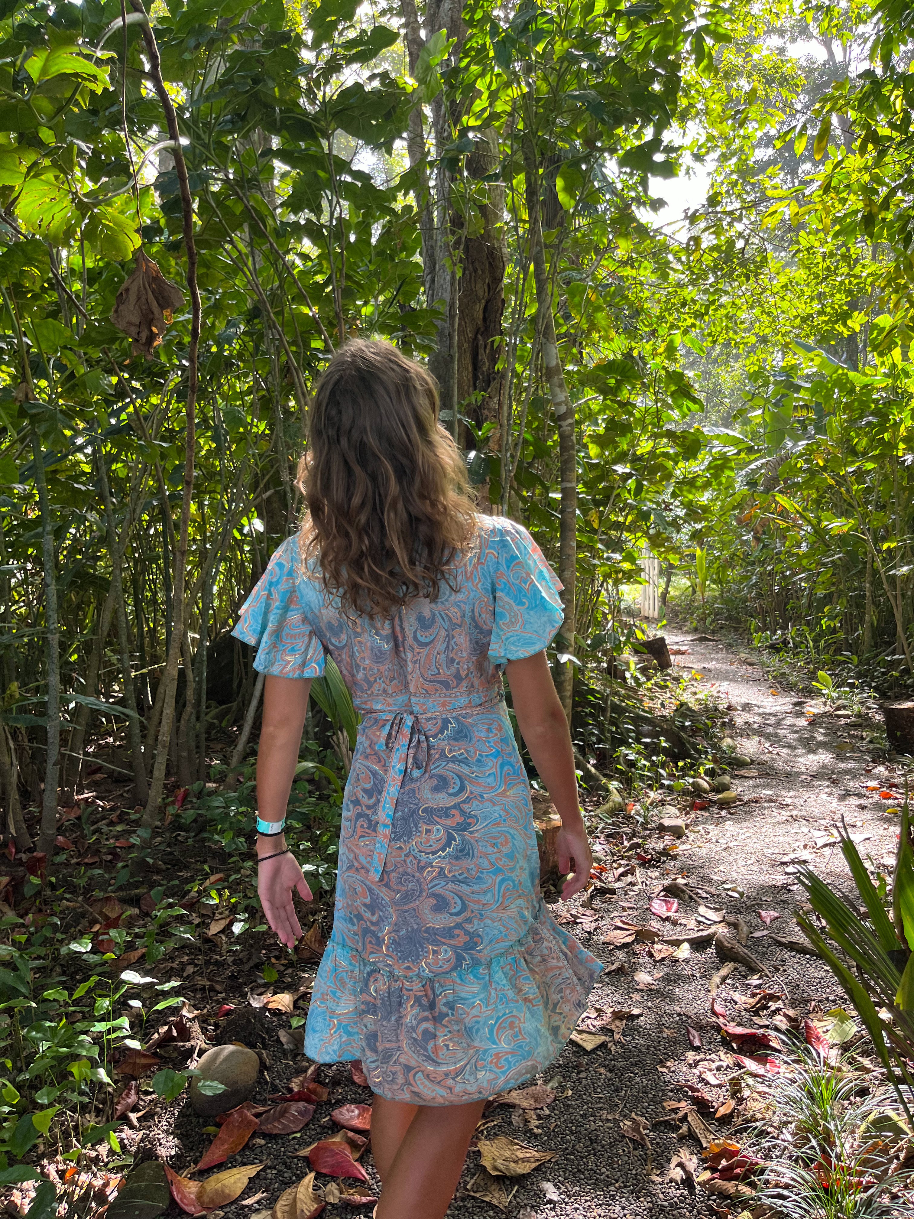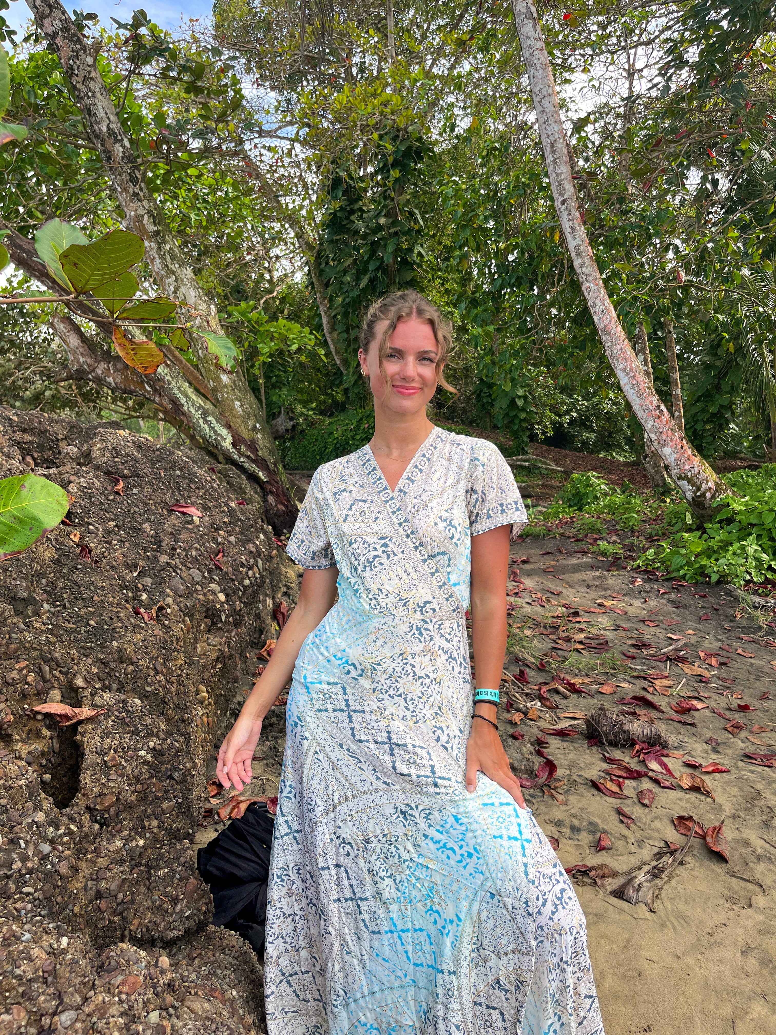Short Wrap Dress Midnight (Gold Foil)- Light Blue