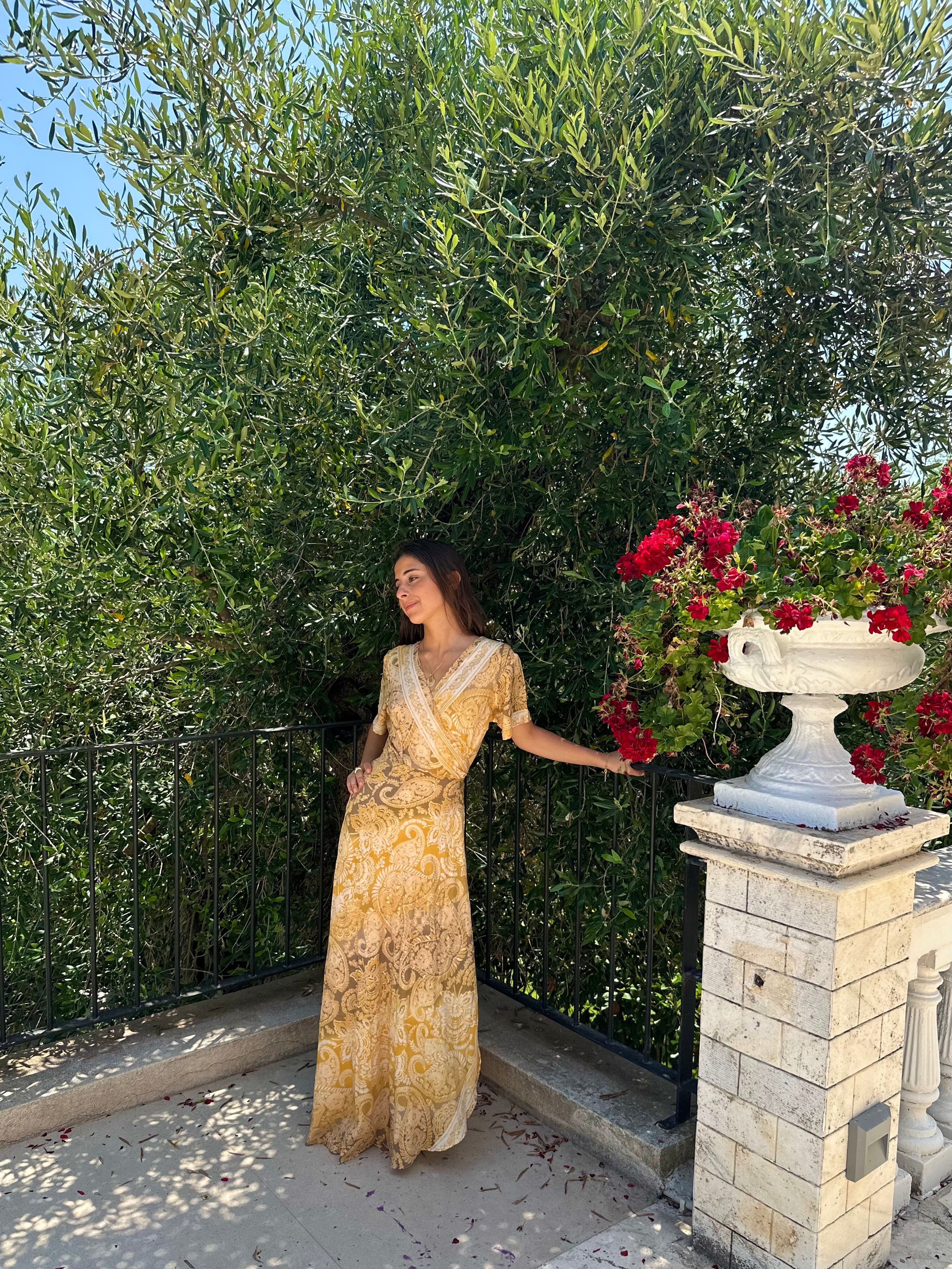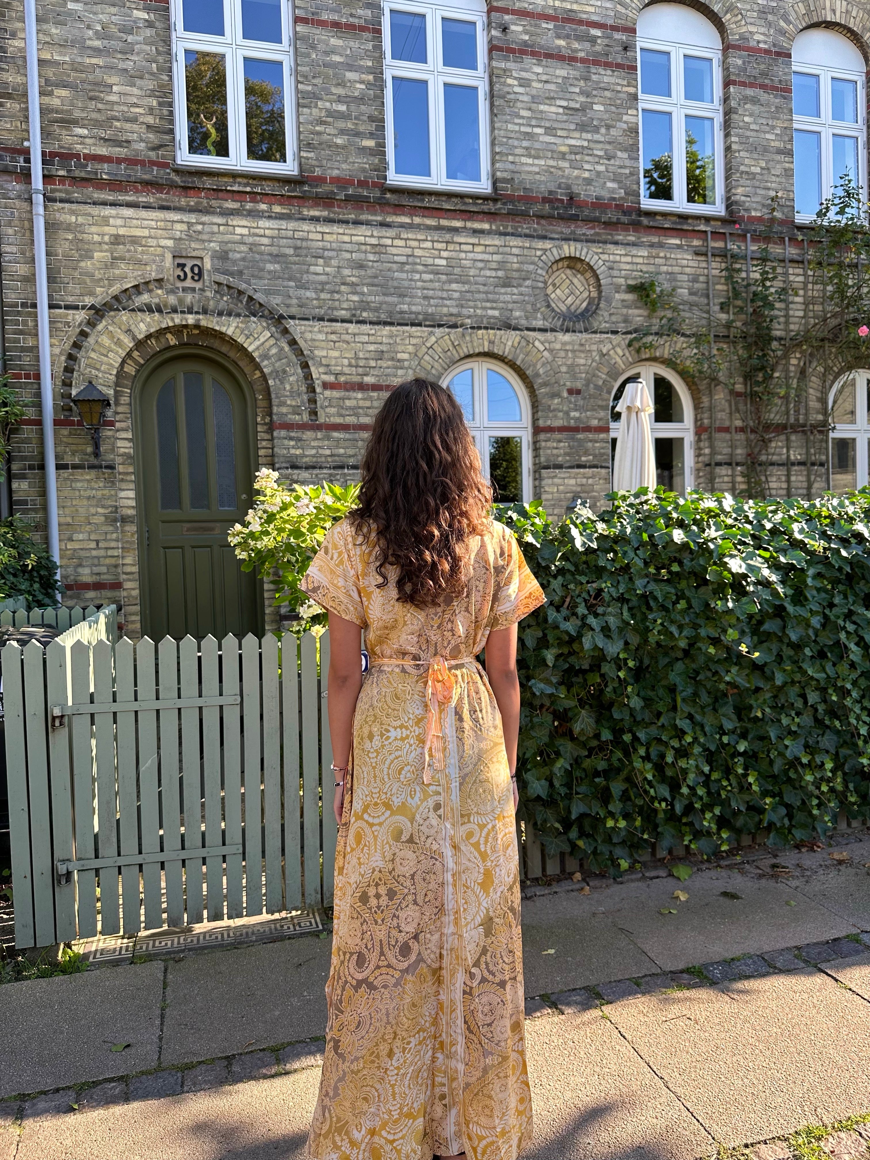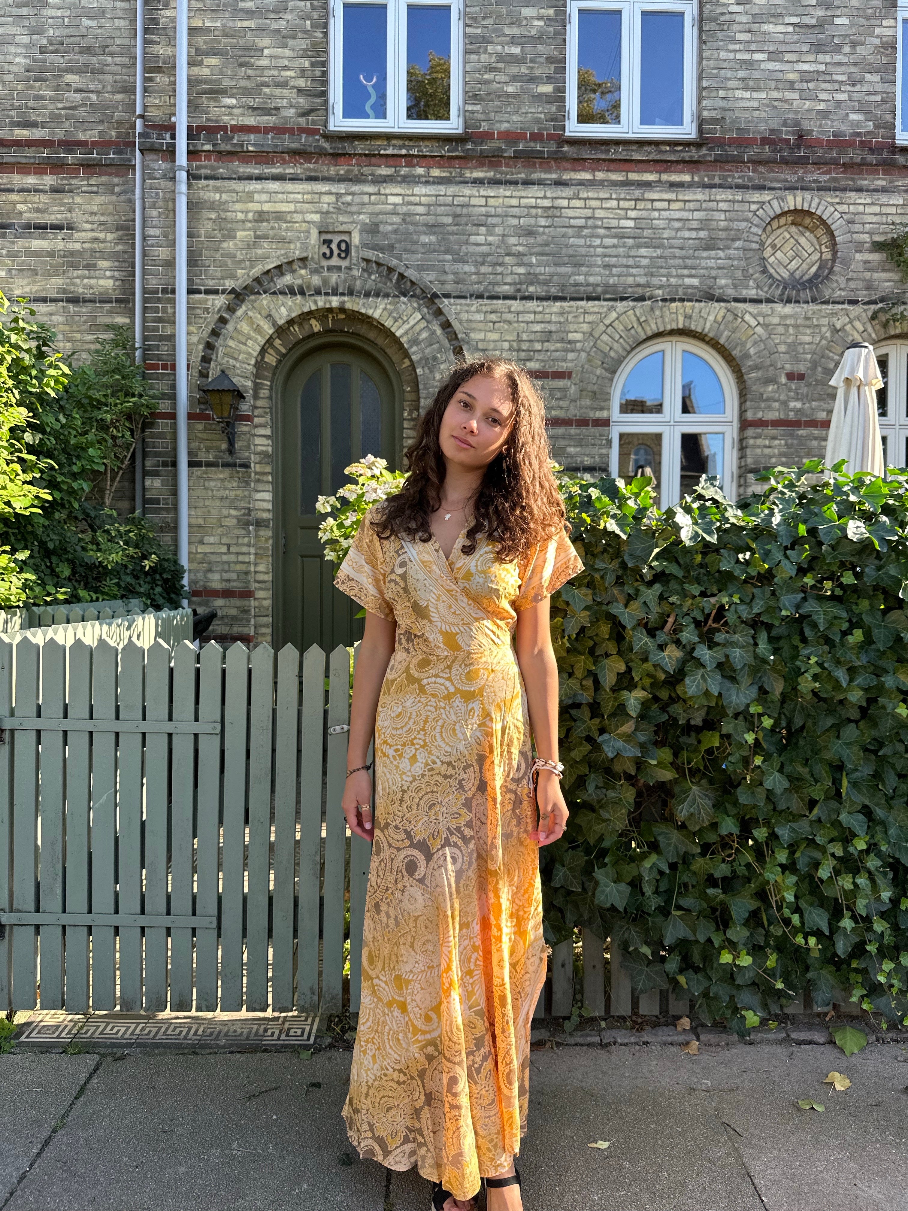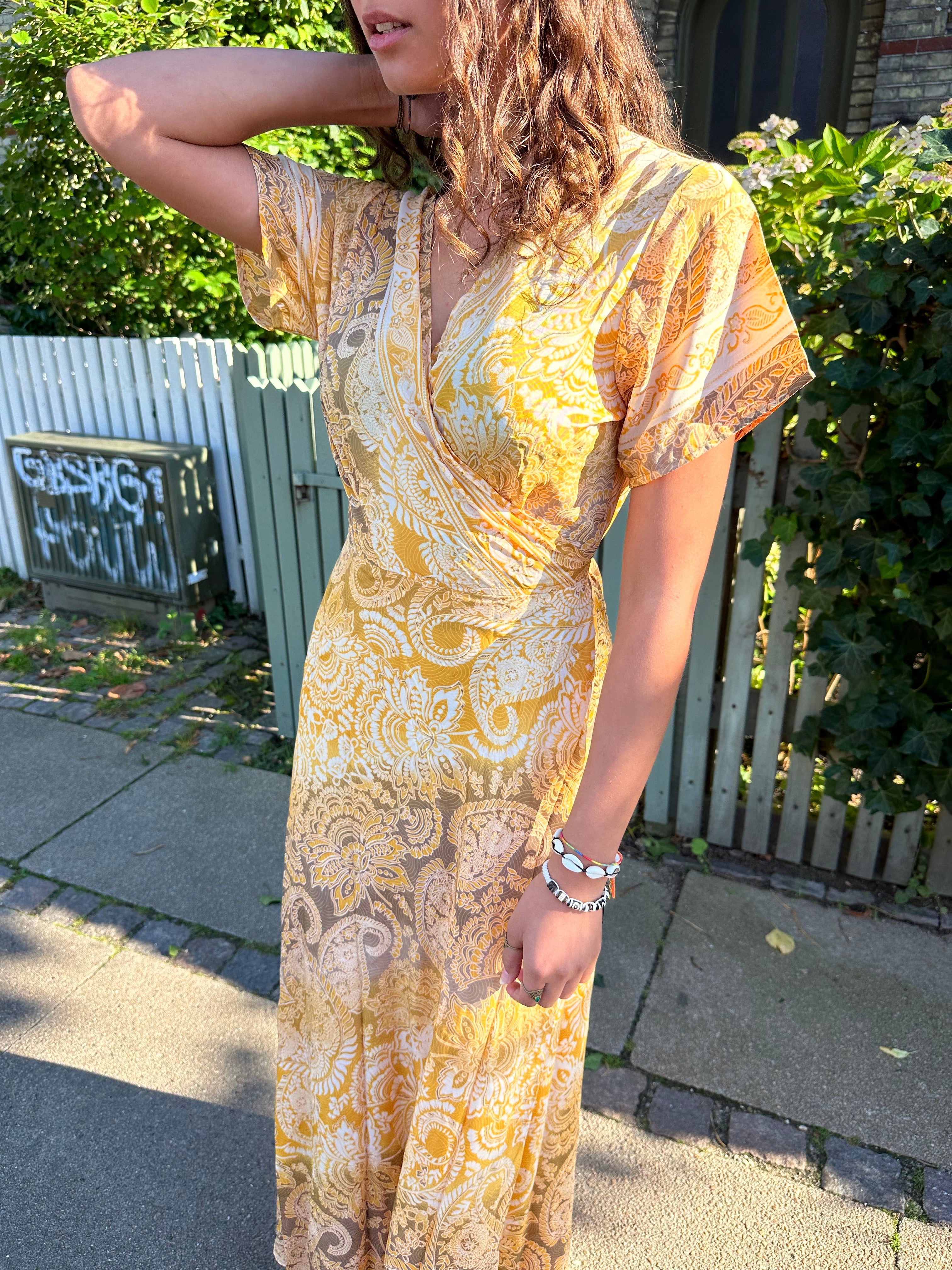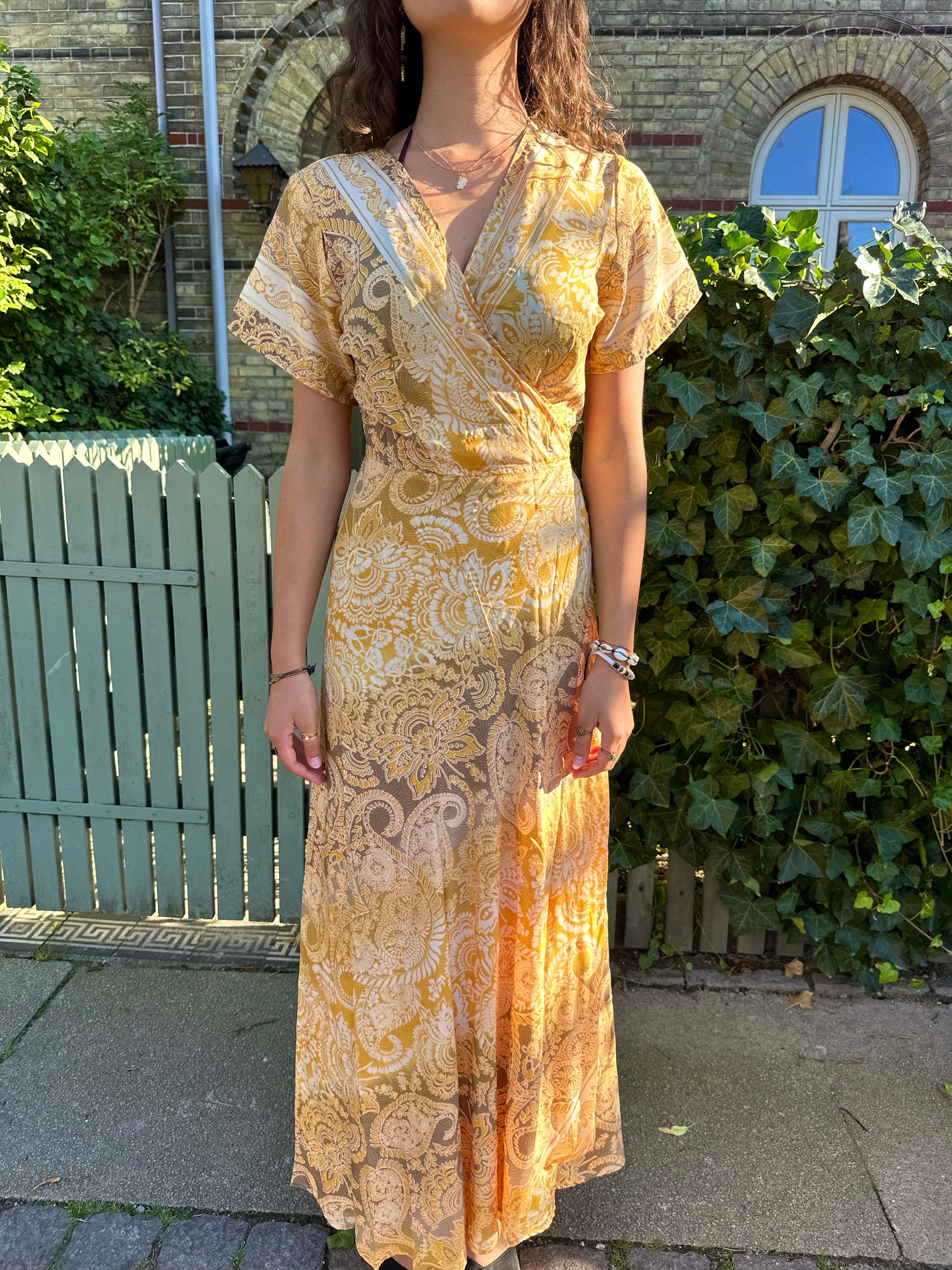 Long Wrap Dress Yara (Gold Foil) - Goldy Yellow