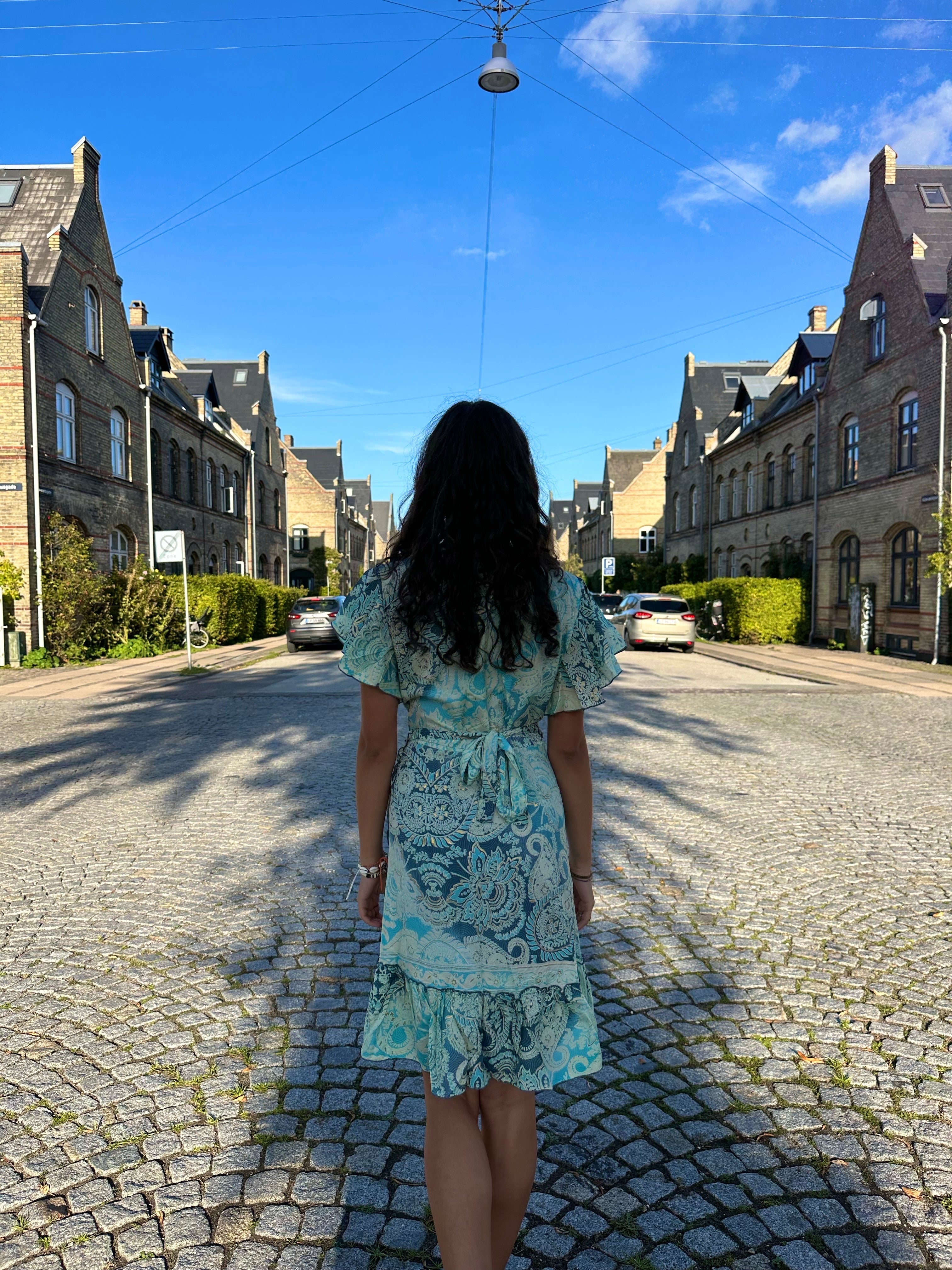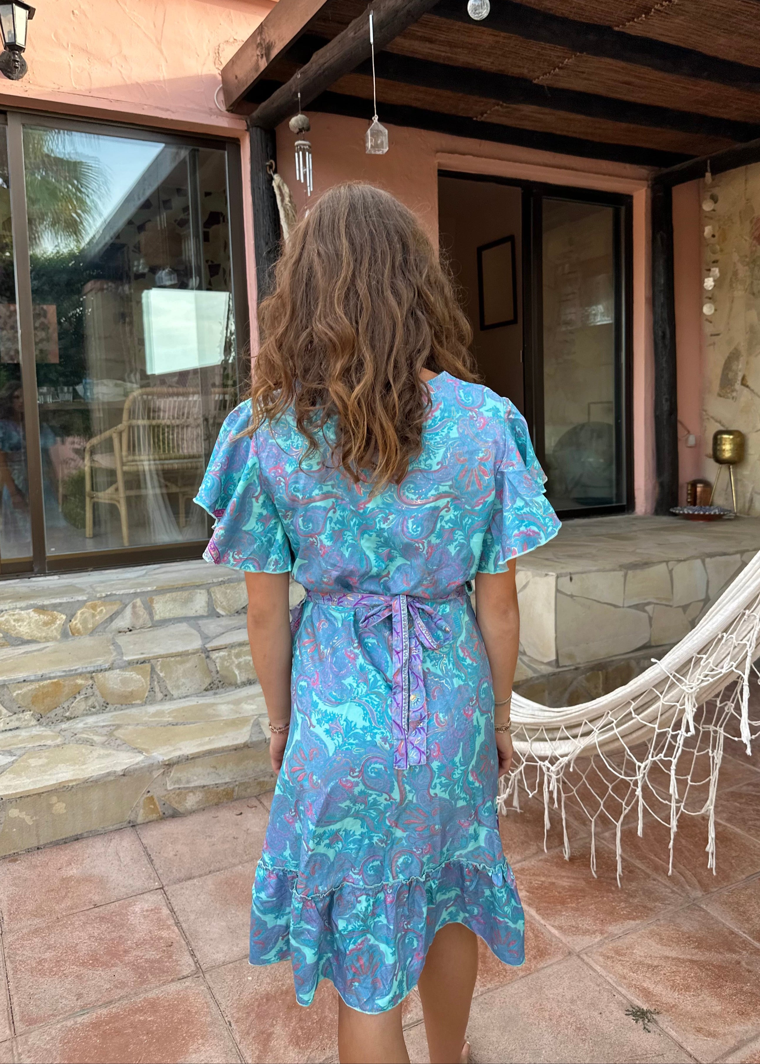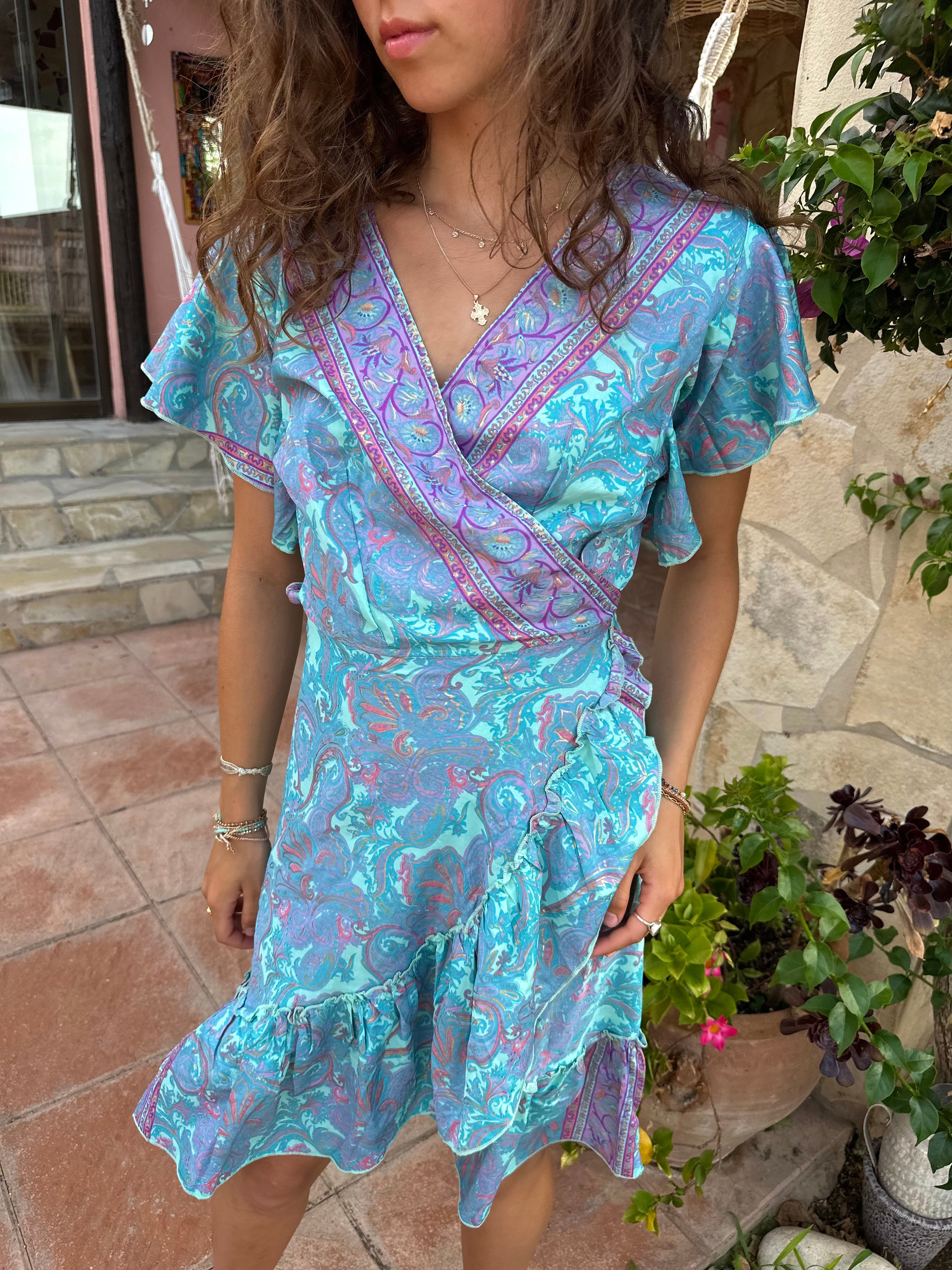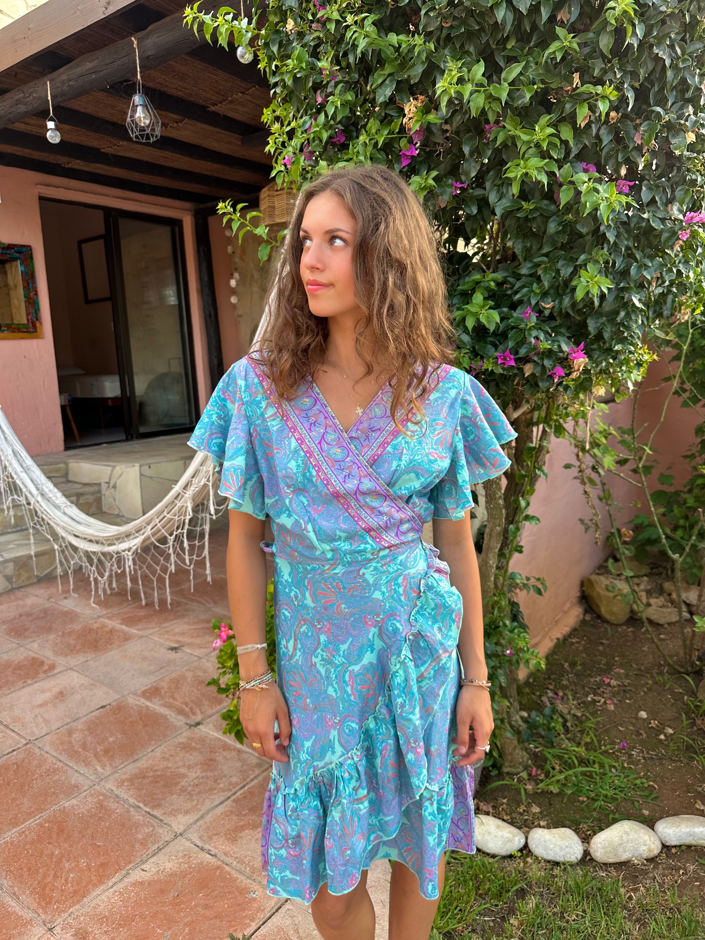 Short Wrap Dress Alma (Gold Foil) - Turquoise