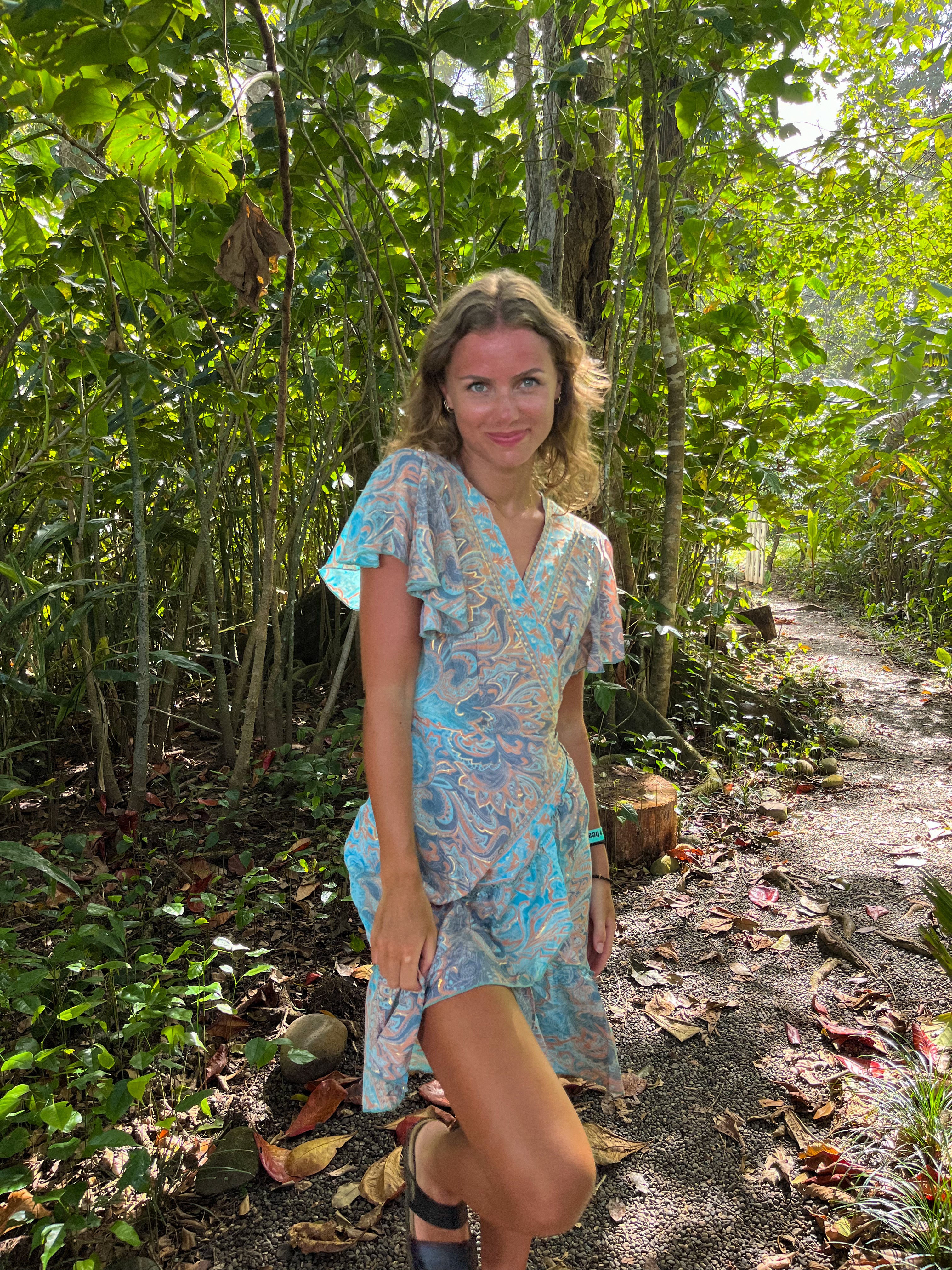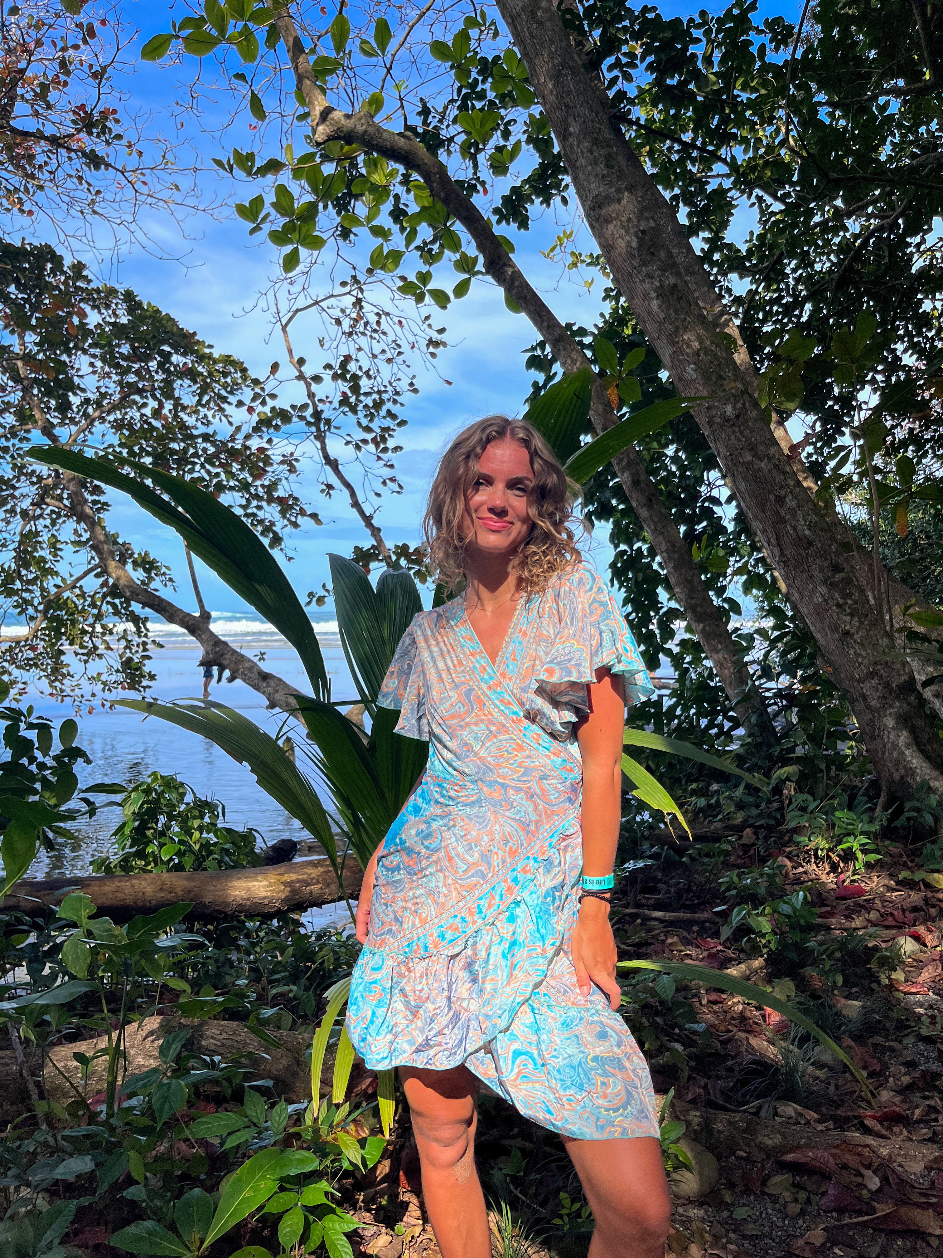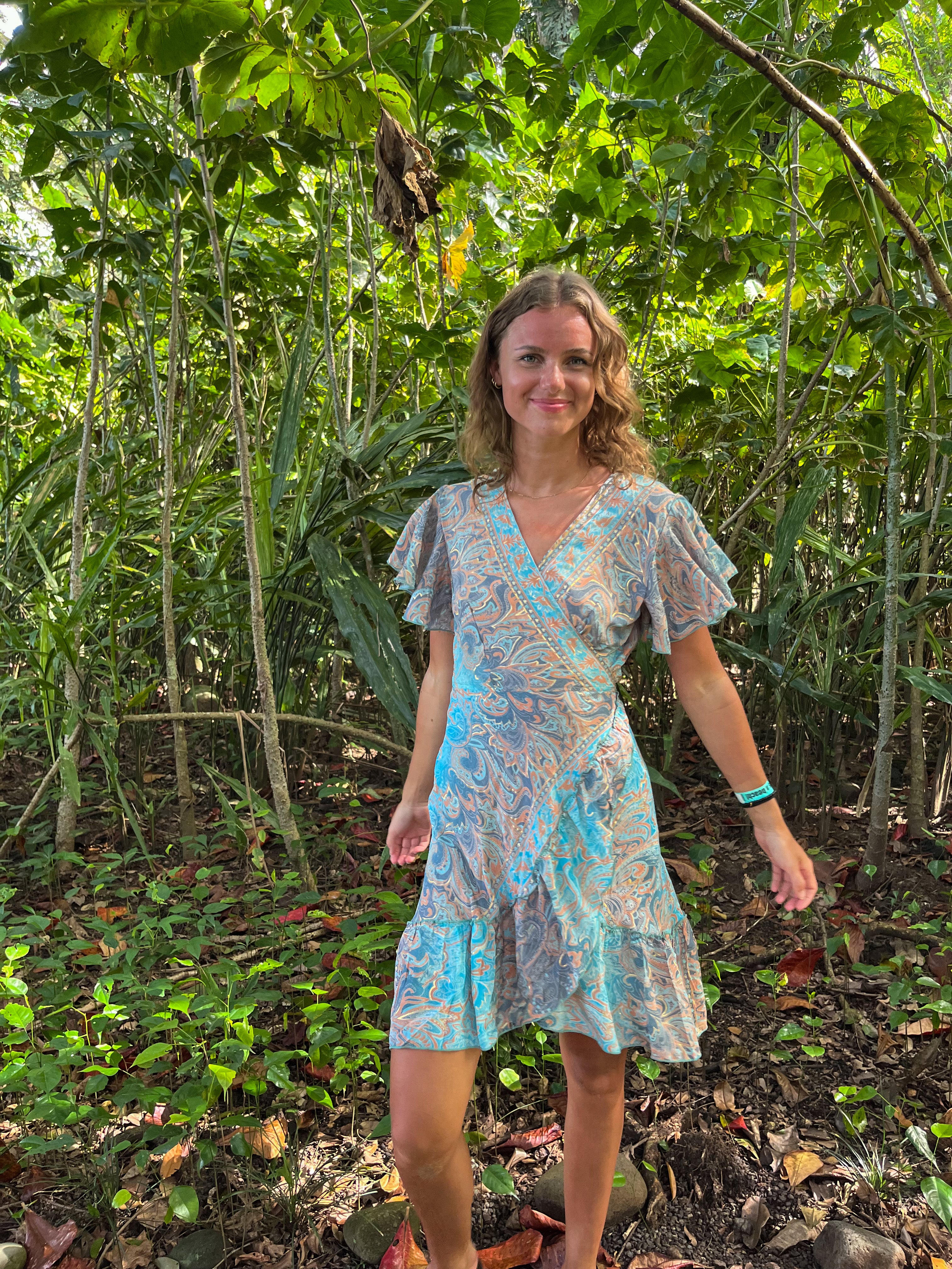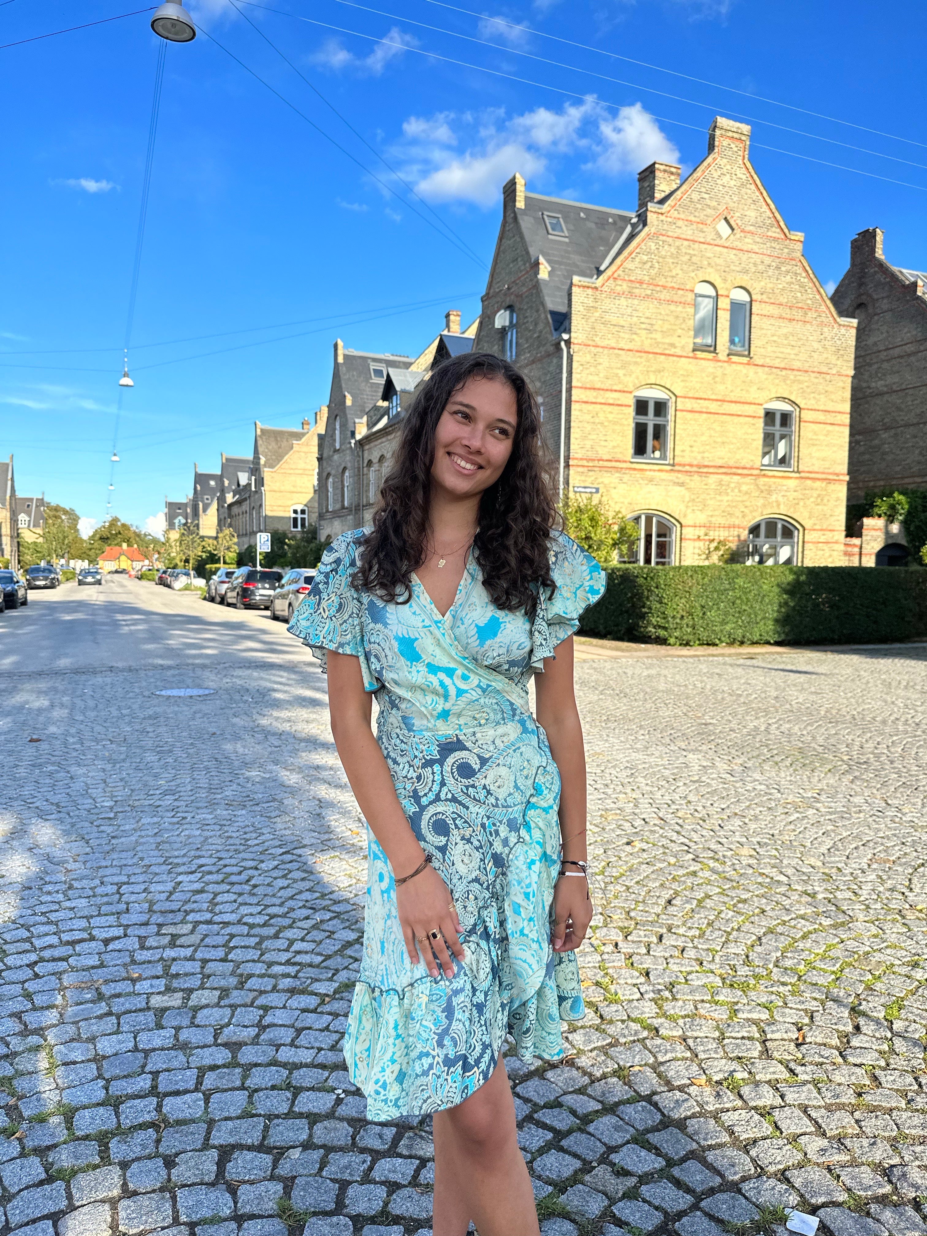 Short Wrap Dress Alma (Gold Foil) - Turquoise