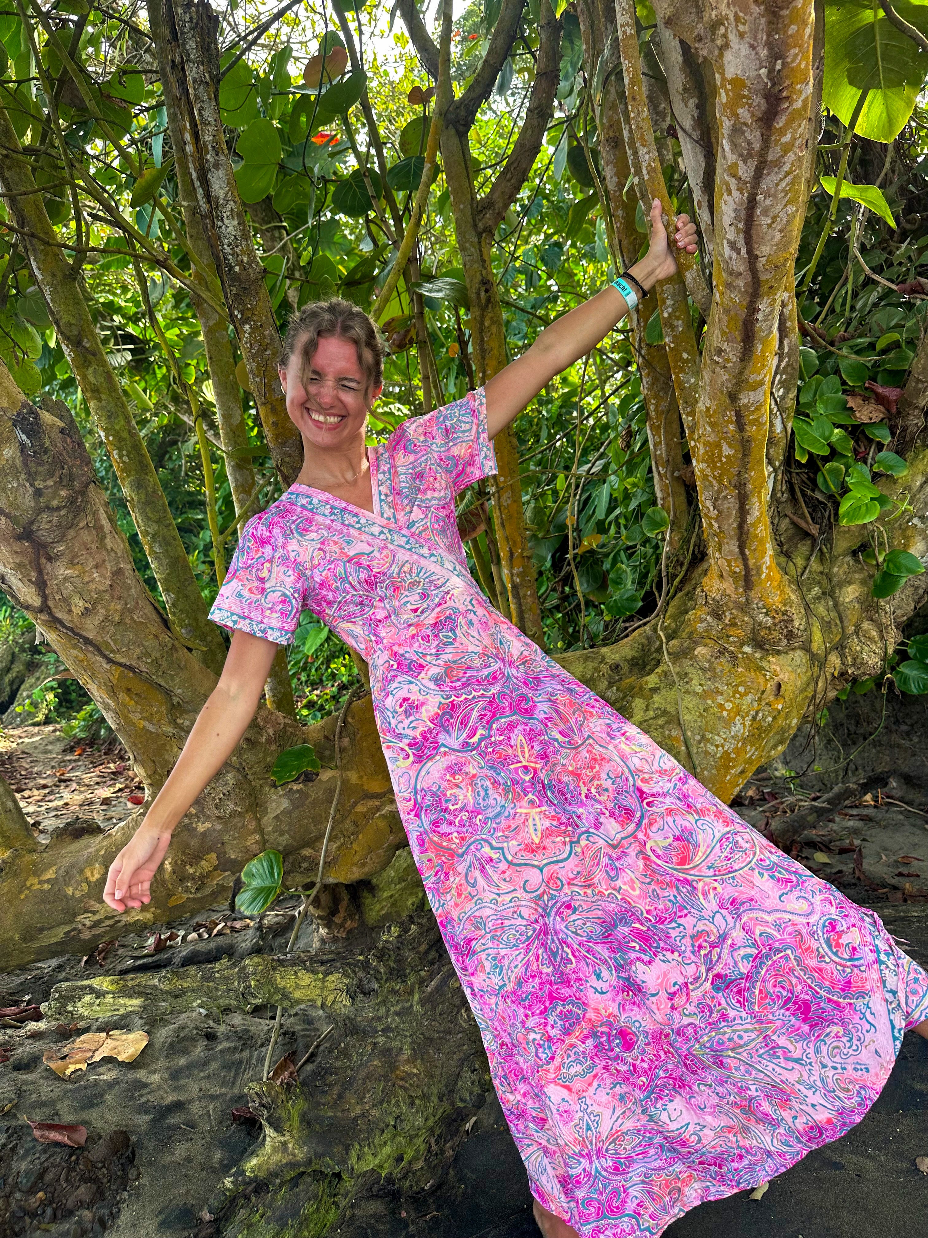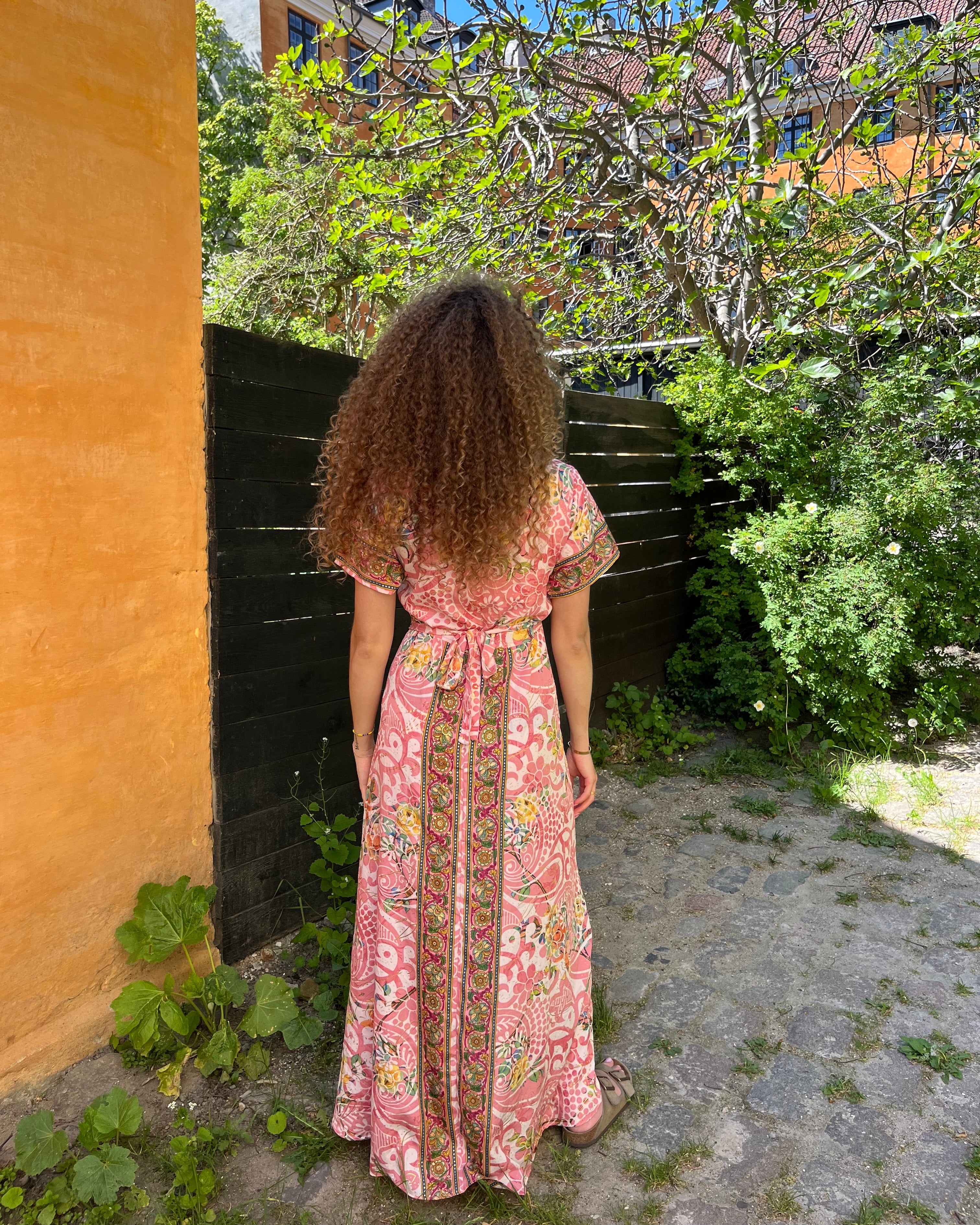 Long Rosy Wrap Dress (Gold Foil) - Pink
