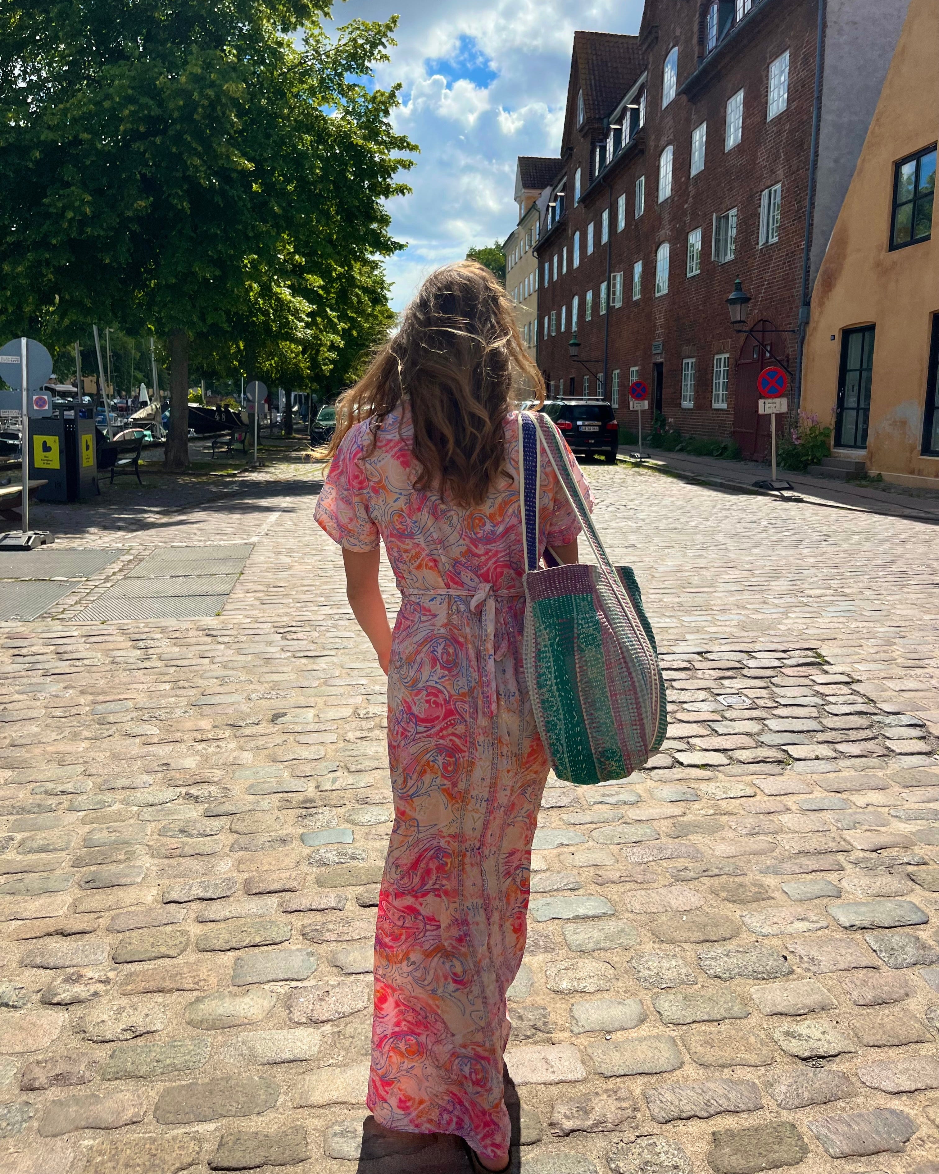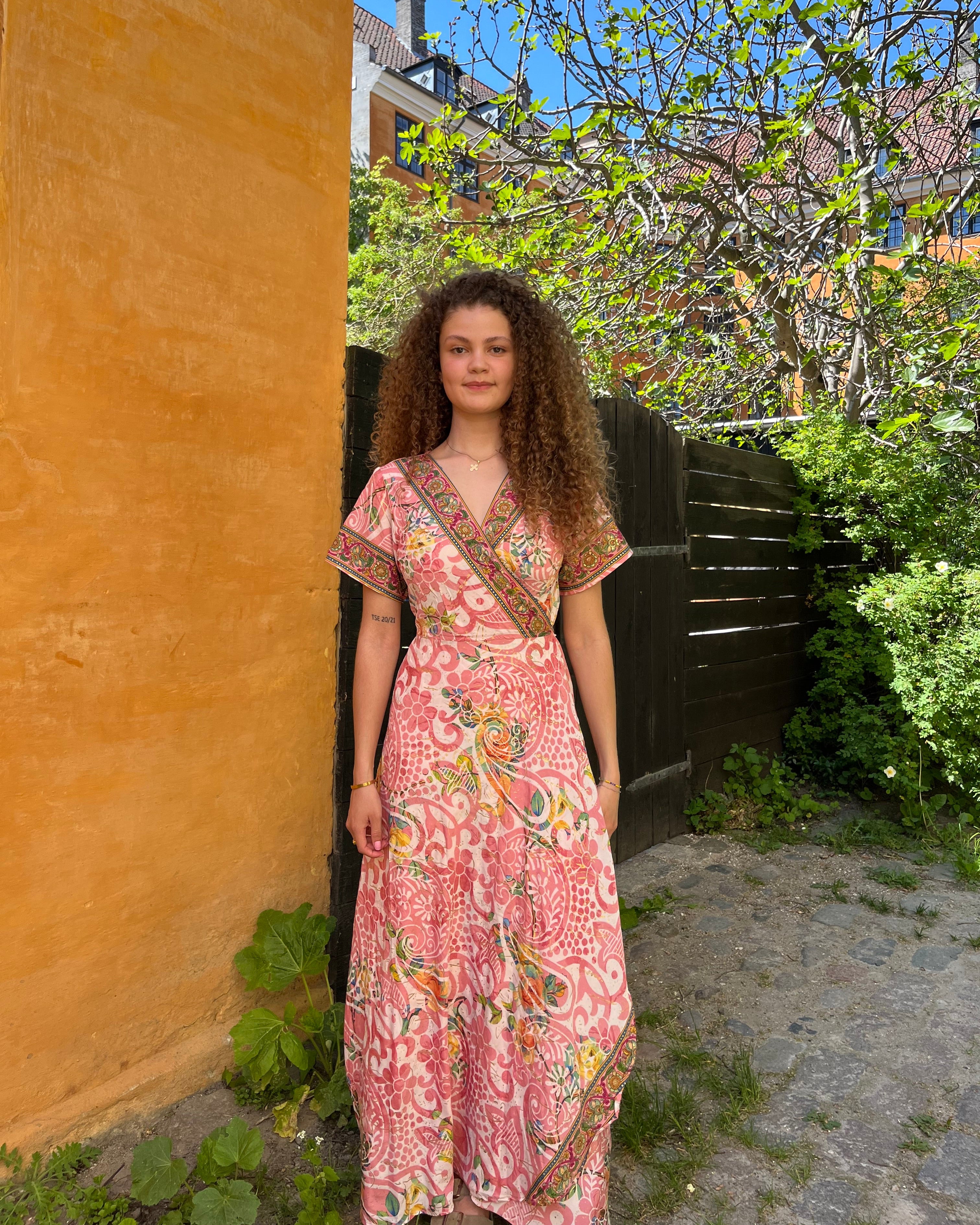Long Wrap Dress Lila (Gold Foil) - Light Pink