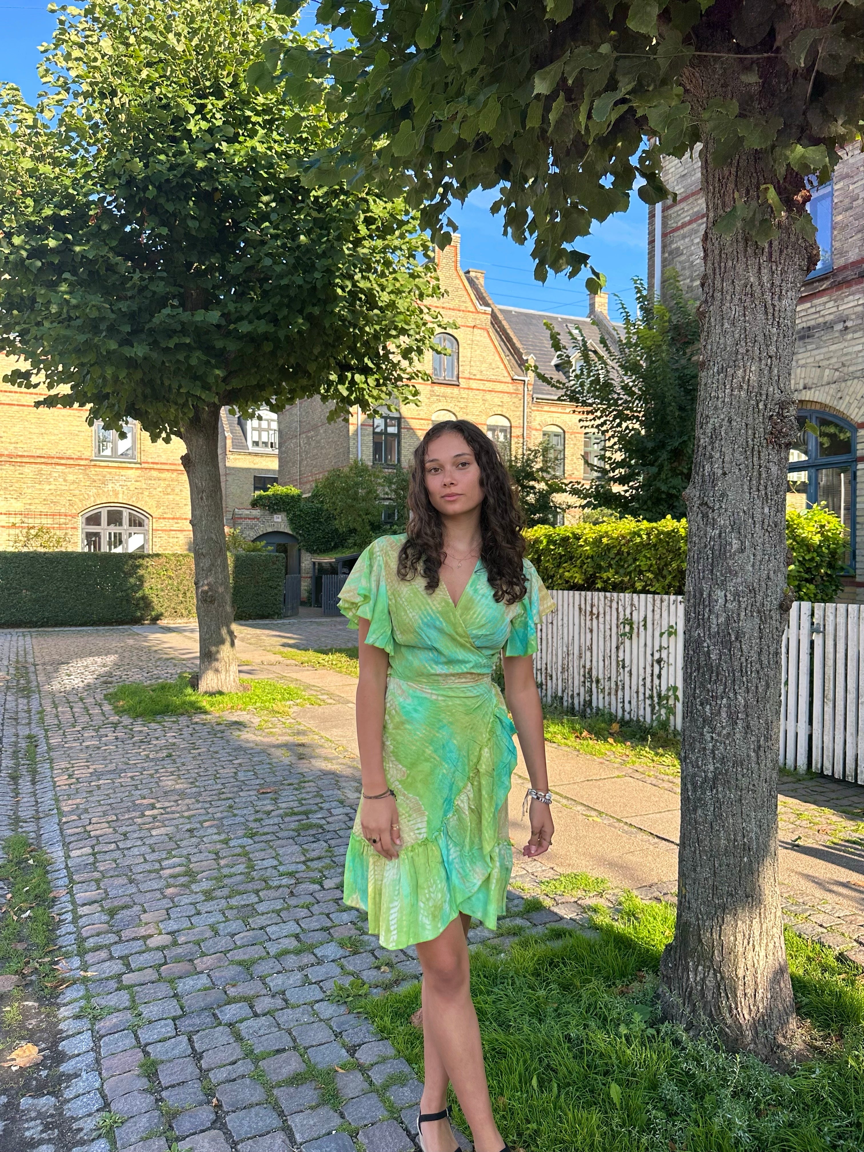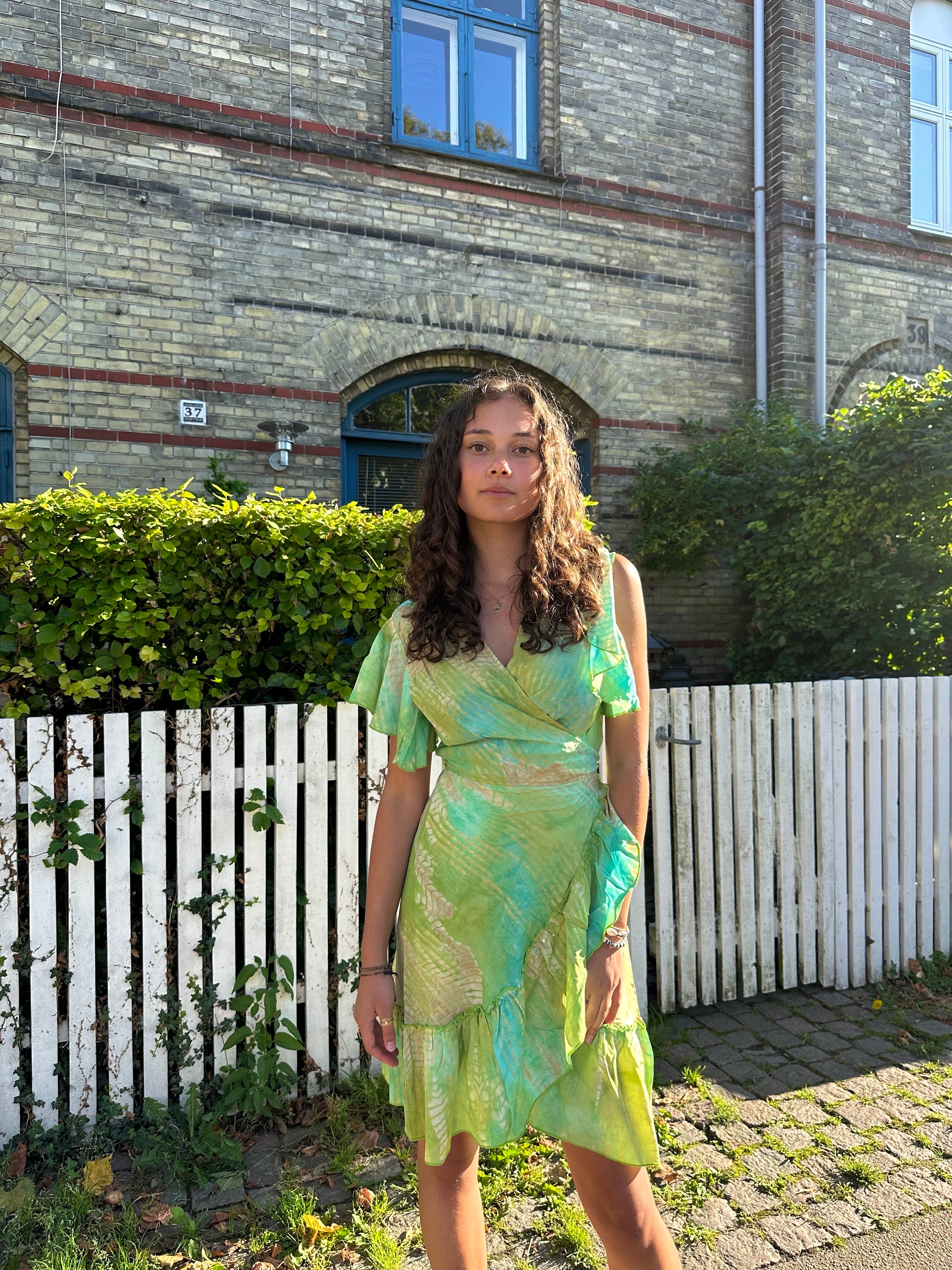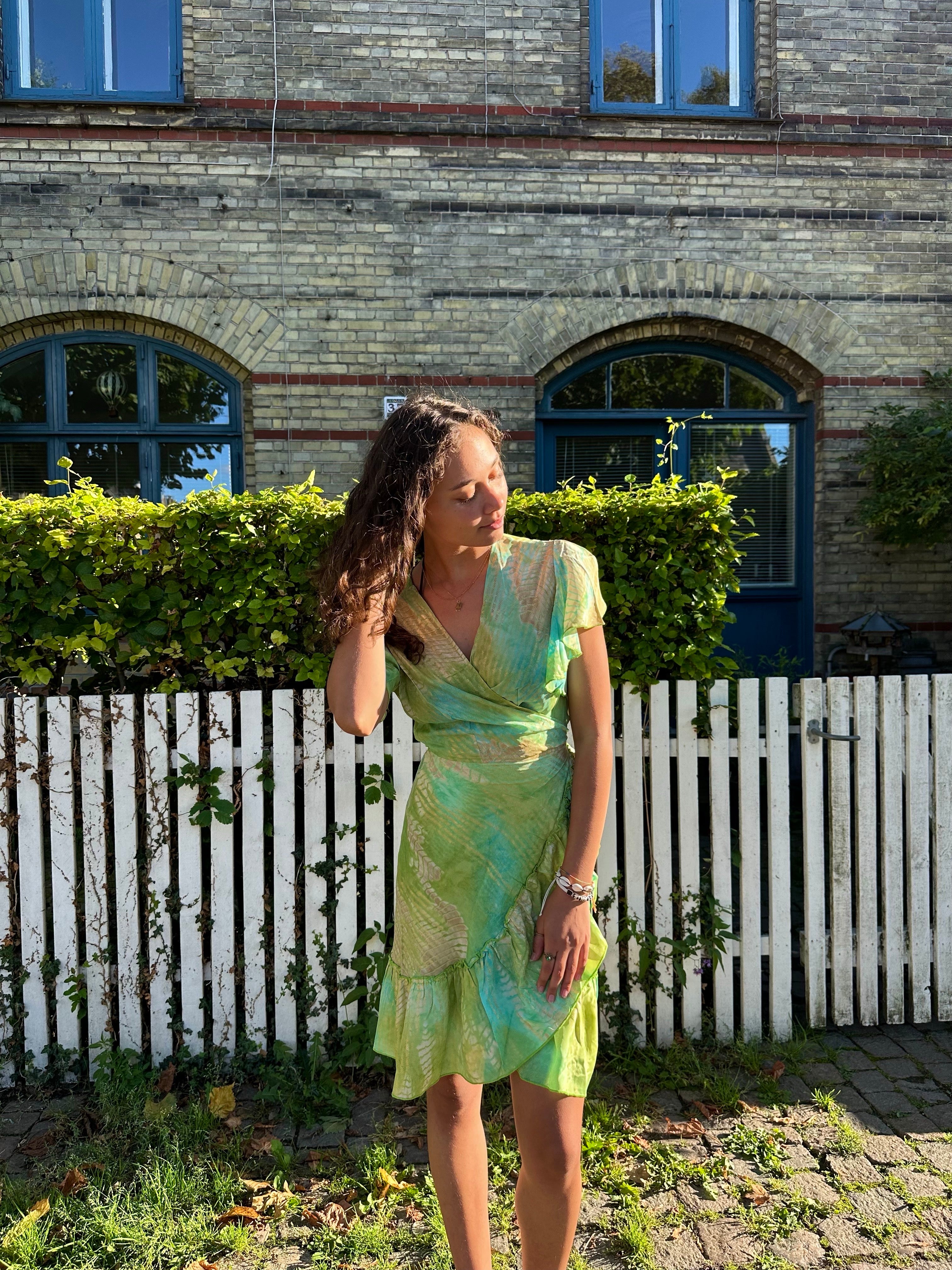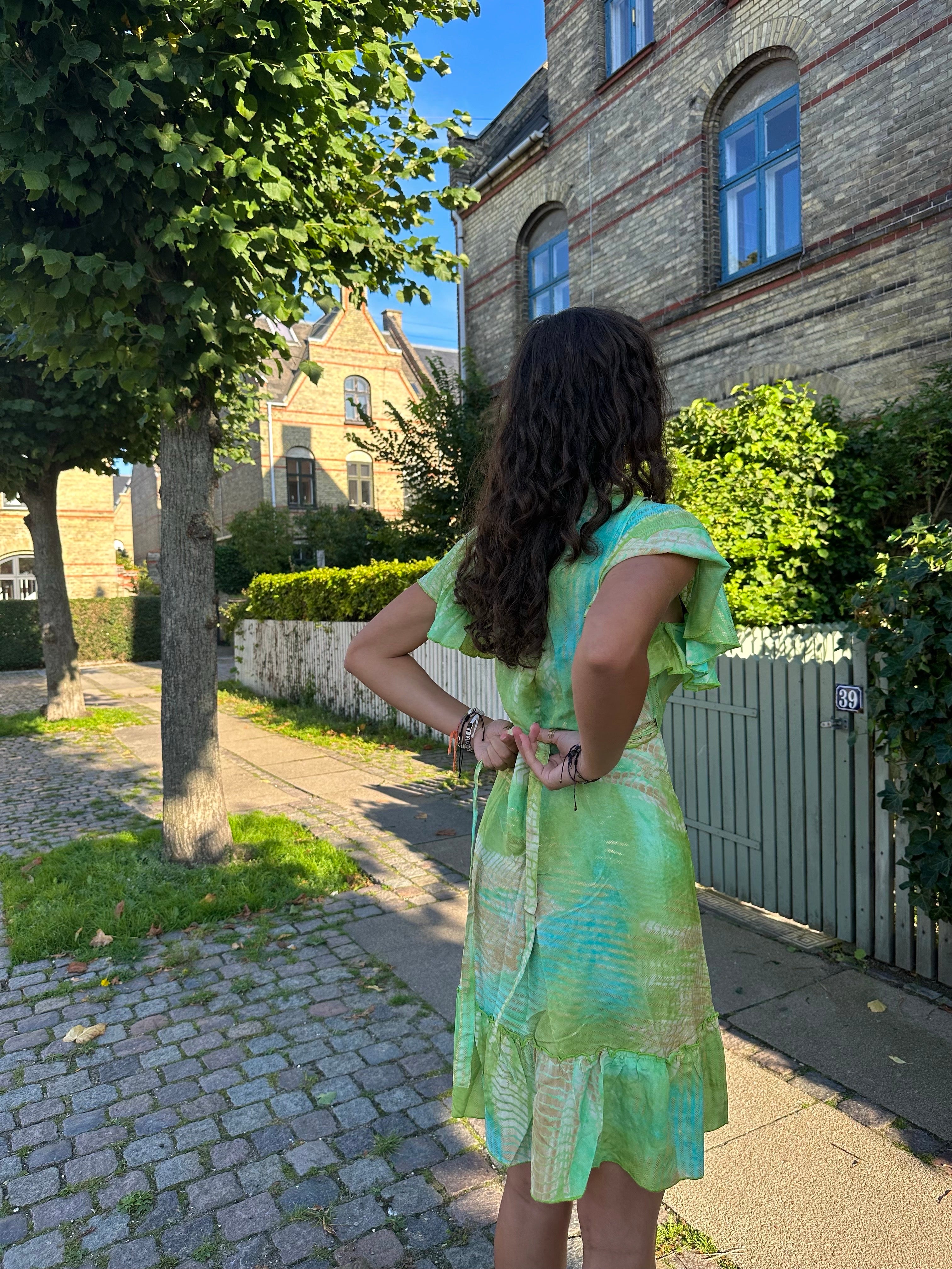 Short Wrap Dress Verde (Gold Foil) - Light Green