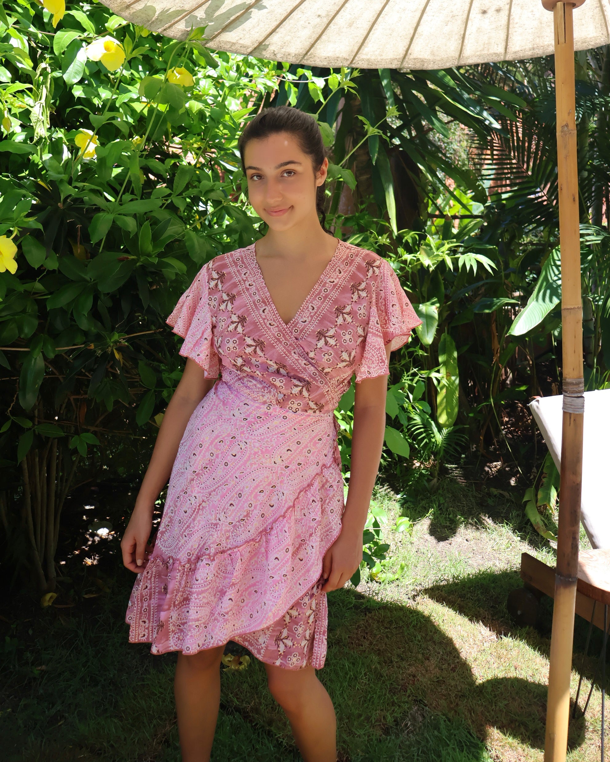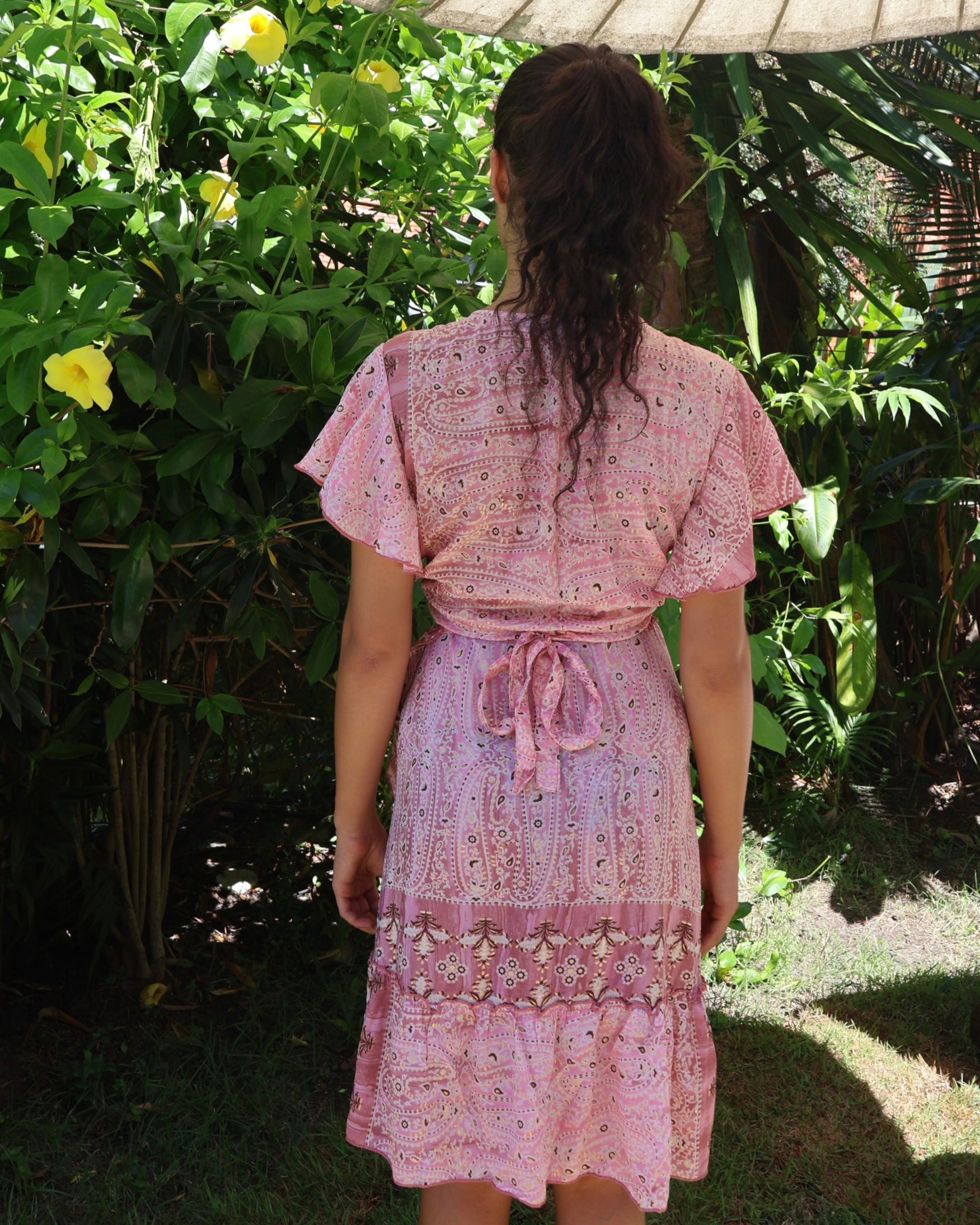 Short Rosy Wrap Dress (Gold Foil) - Pink
