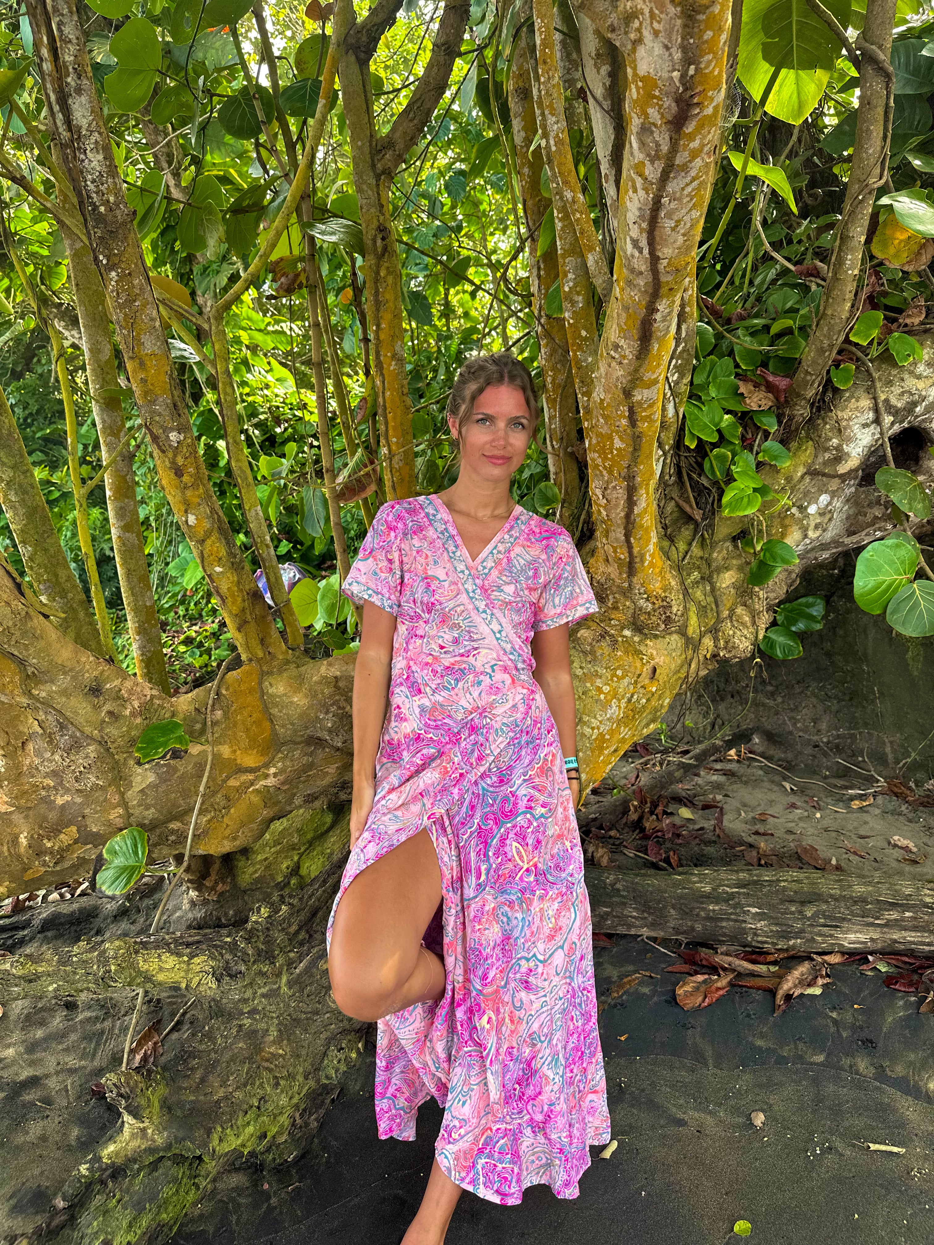 Long Kayla Wrap Dress (With Gold Foil) - Pink