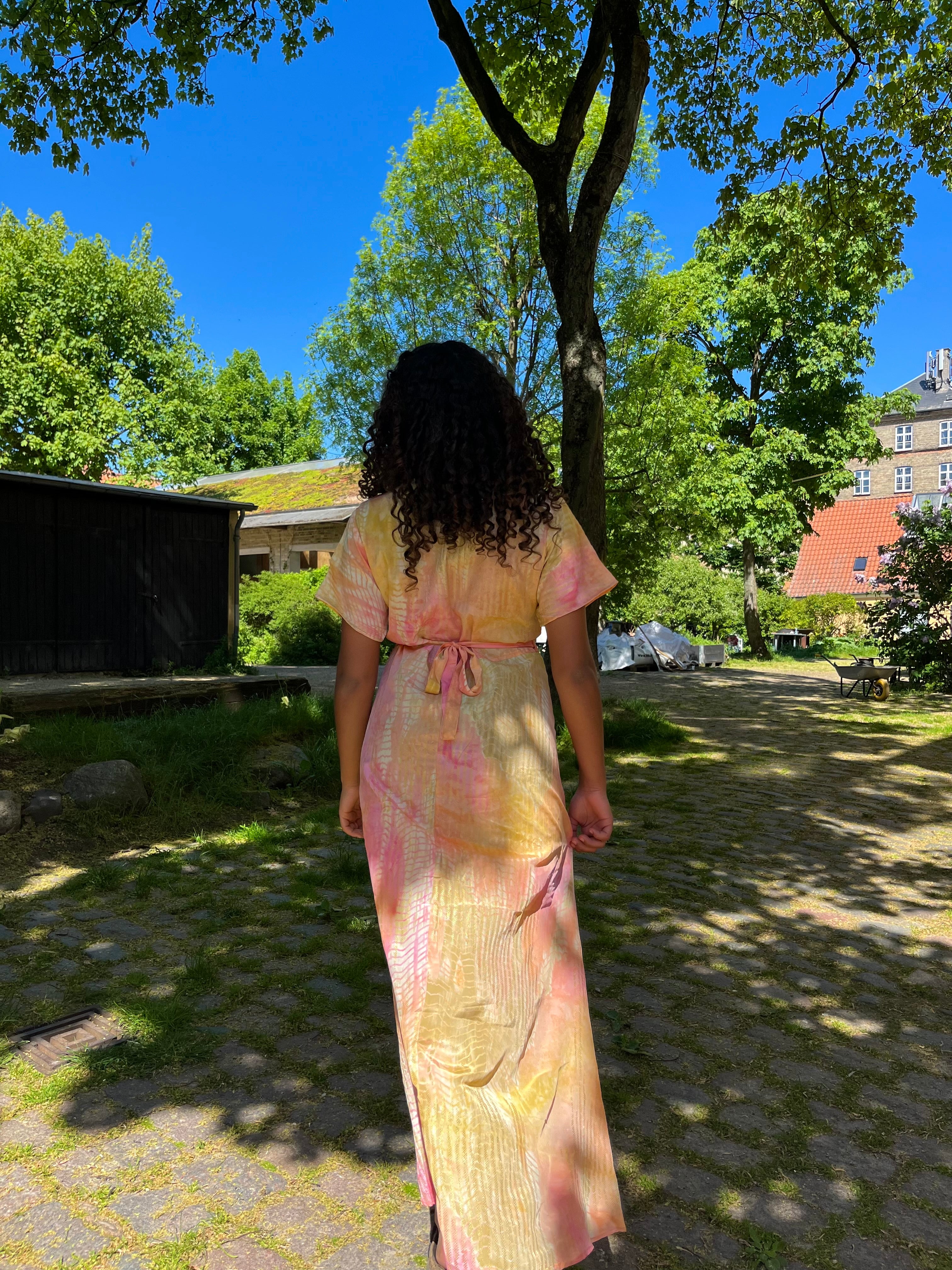Long Wrap Dress (With Gold Foil) - Light Pink + Yellow