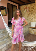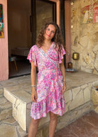 Short Rosy Wrap Dress (Gold Foil) - Pink