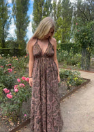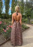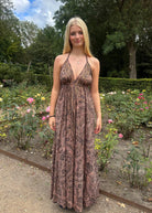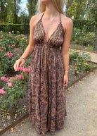 The Long Ibiza dress, is super comfortable and adjustable, it has an open back and is attached with a few strings around the neck and back. The material is made of 70% silk and 30% viscose making it super soft and with a beautiful fall.