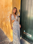 The Mid-Cut dress is a patterned one-size garment that features an open-back design and adjustable strings for a perfect fit. This onesize dress is suitable for everyone between sizes 34-40, making it an ideal choice for women of different body types. The dress is crafted from a soft blend of 100% viscose, which lends it a luxurious texture and an elegant drape. The Mid-Cut dress is the perfect choice for any occasion, whether it's a casual outing or a formal event.