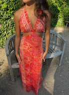 Mid-Cut Sari Dress - (with gold foil)- Orange