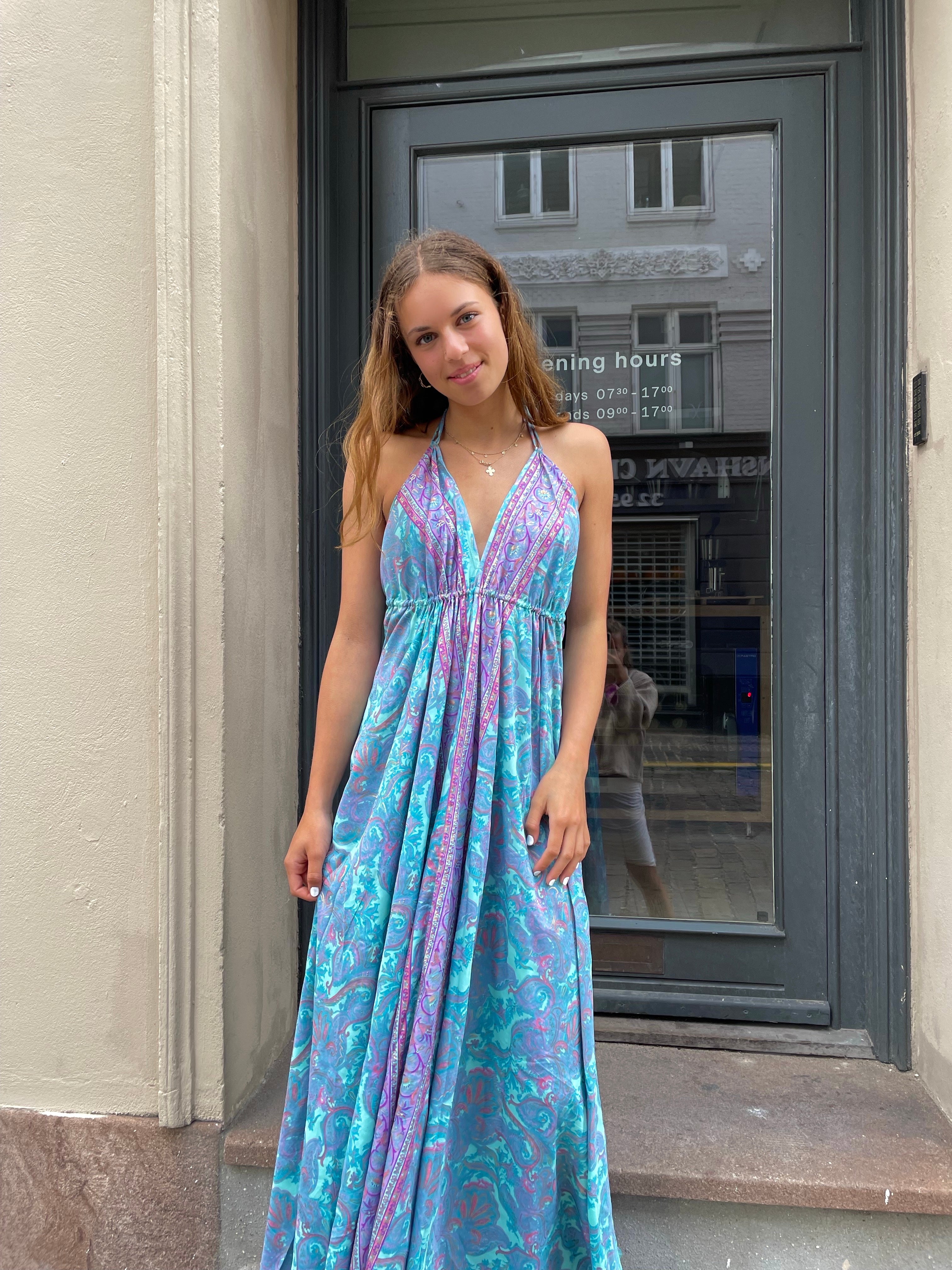 Long Gold Ibiza Dress Alma - Turquoise