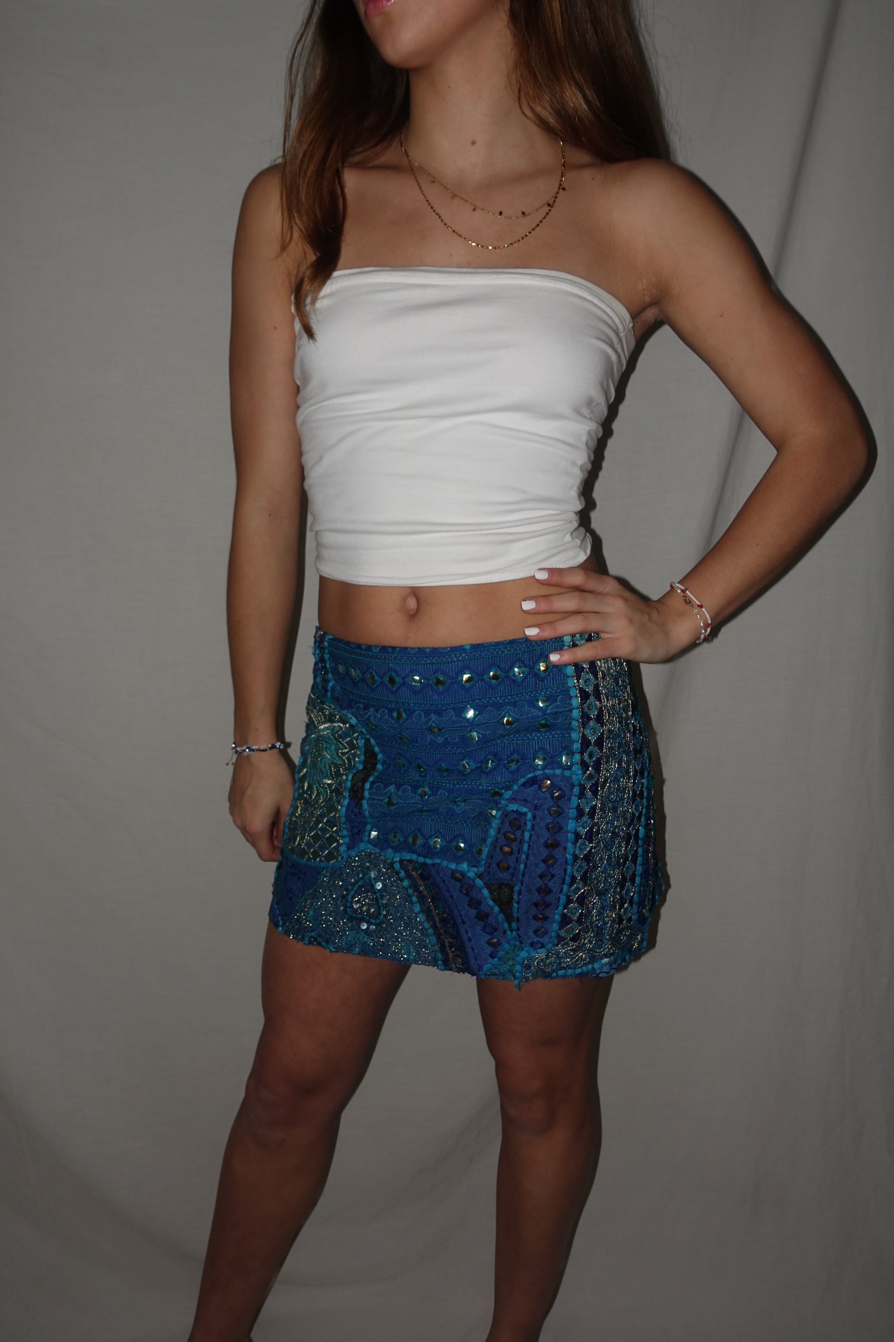 Vintage Sari Beaded Patchwork Bohemian Skirt - Blue (XS-S)